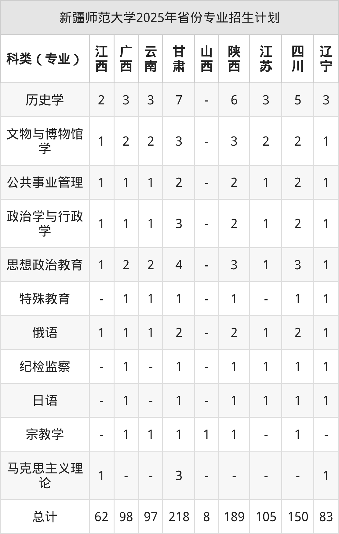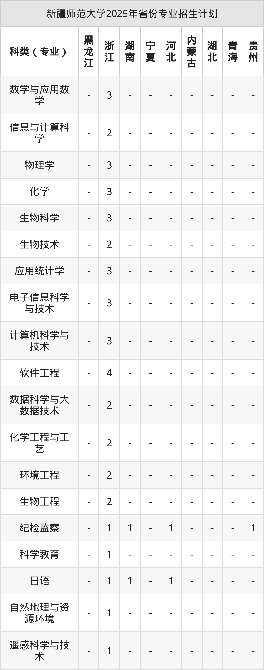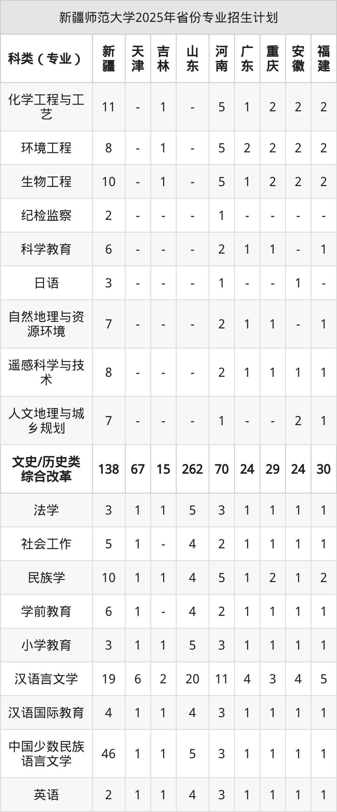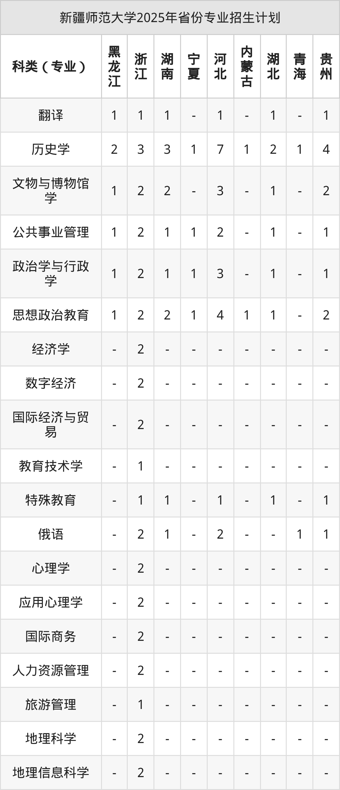 而各省份的招生计划数为宁夏30人,河北217人,内蒙古6人,贵州113人,新疆462人等。