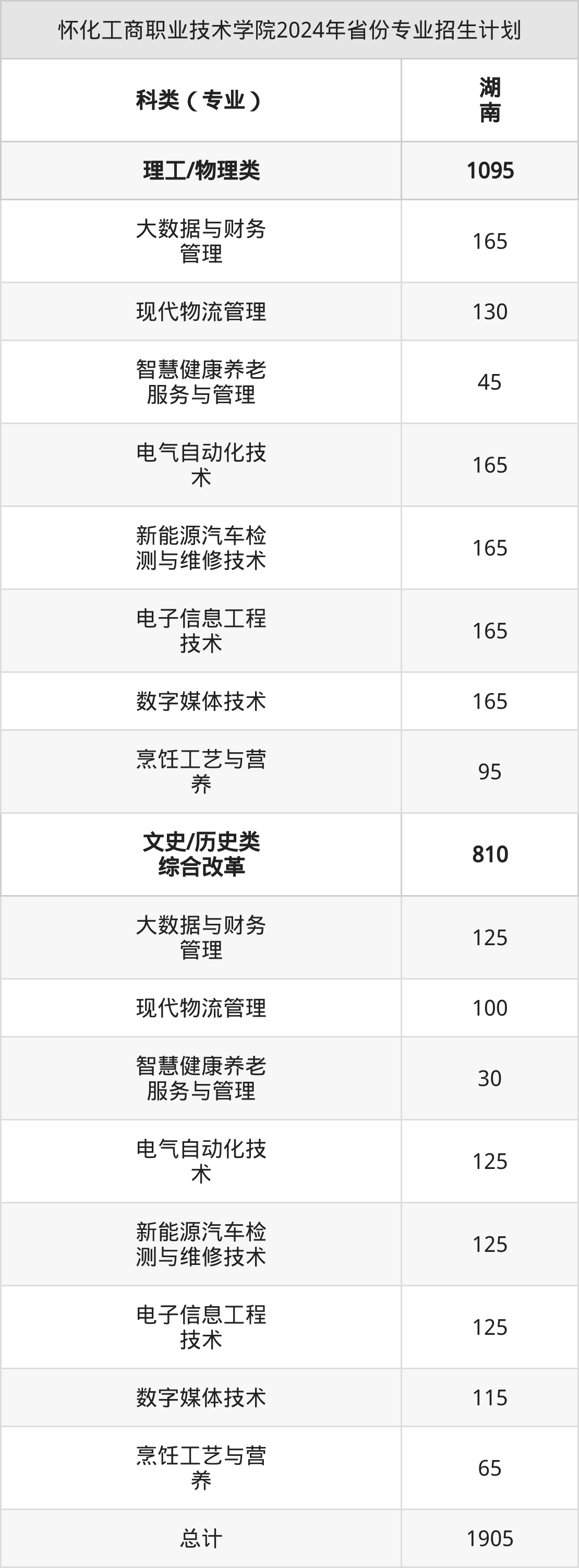 2025年怀化工商职业技术学院专科招生计划待公布,下面附上2024年数据,暂供参考: