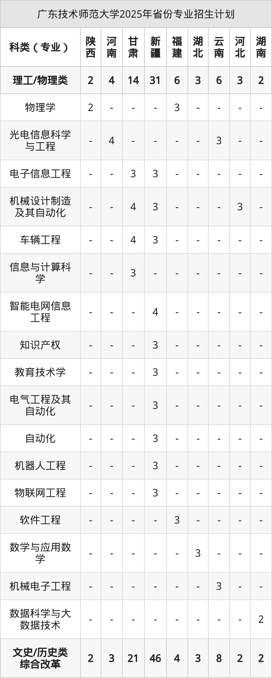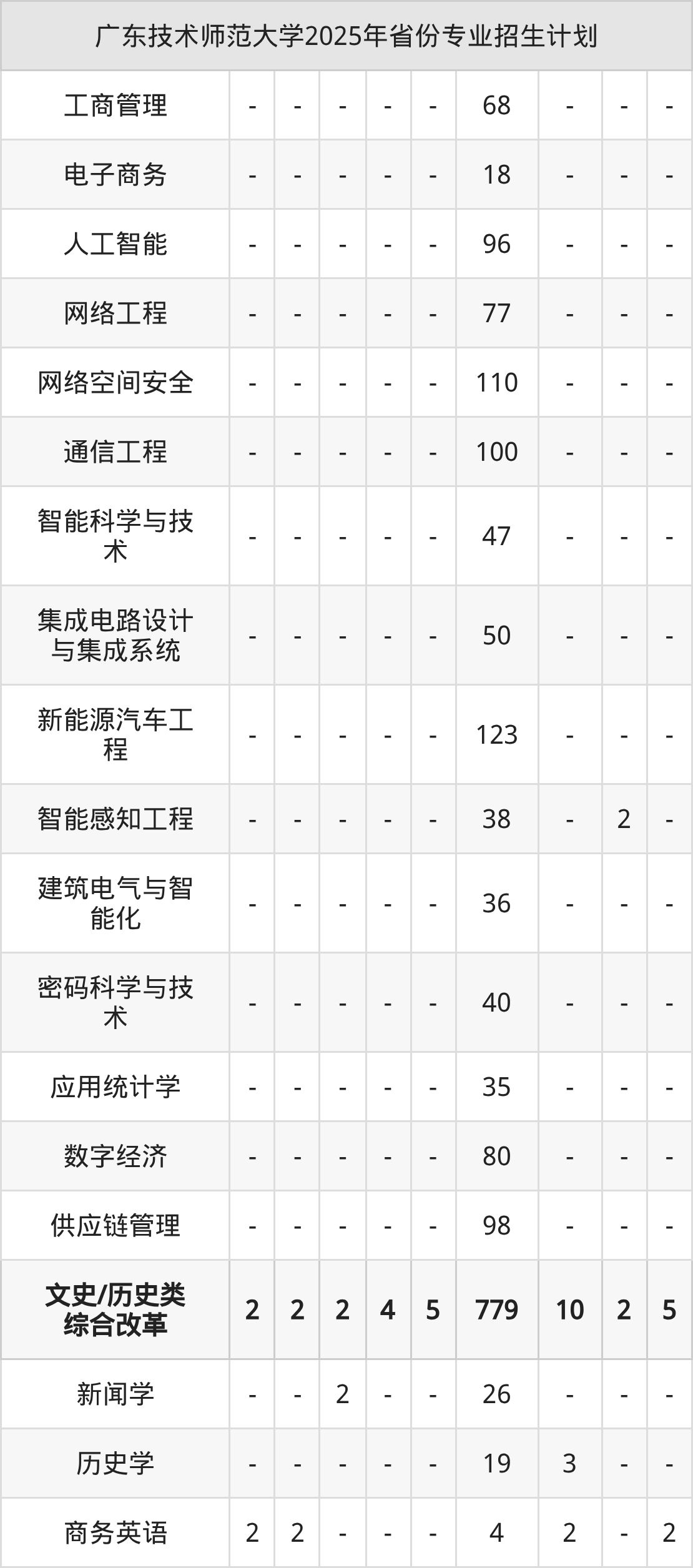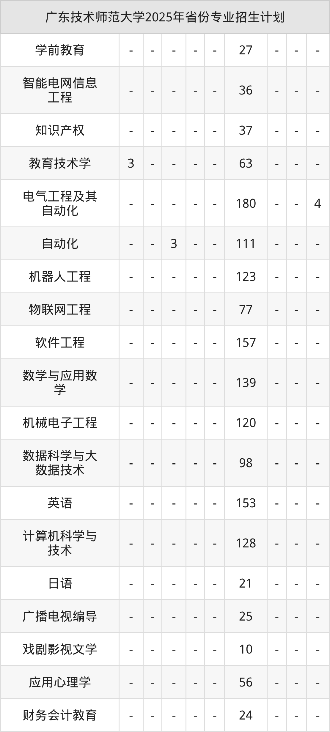 2026年广东技术师范大学本科招生计划待公布,下面附上2025年数据,暂供参考: