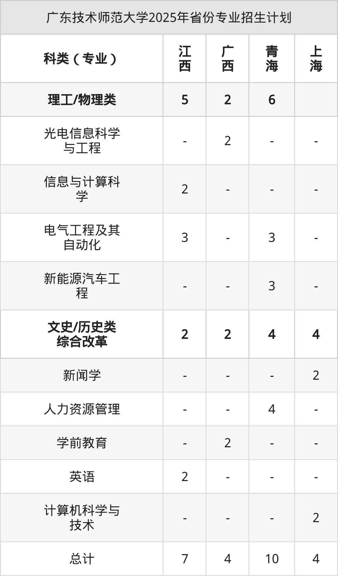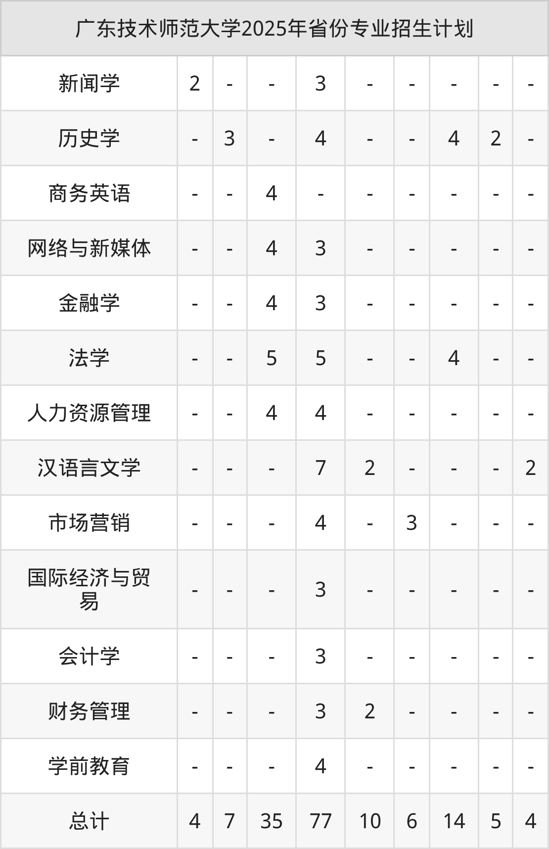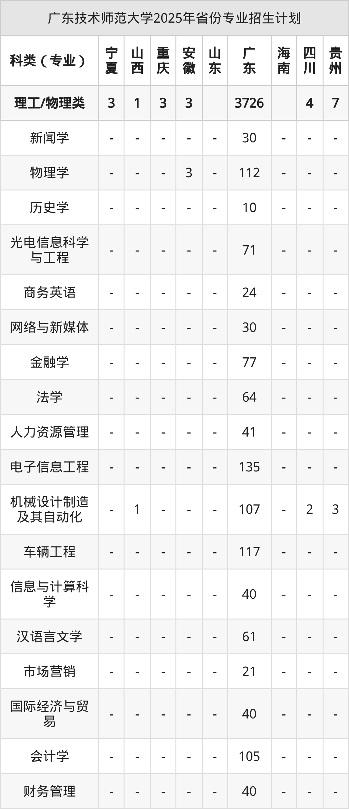 2026年广东技术师范大学本科招生计划待公布,下面附上2025年数据,暂供参考: