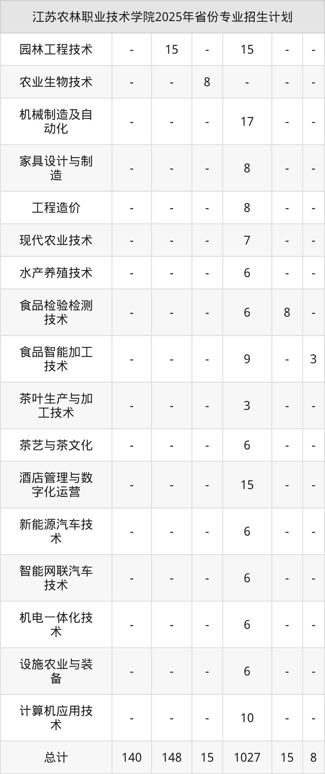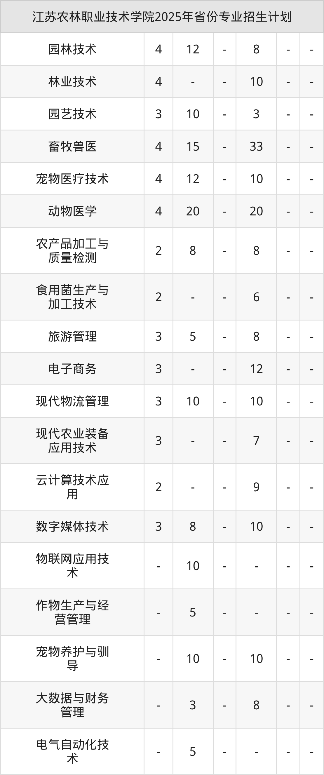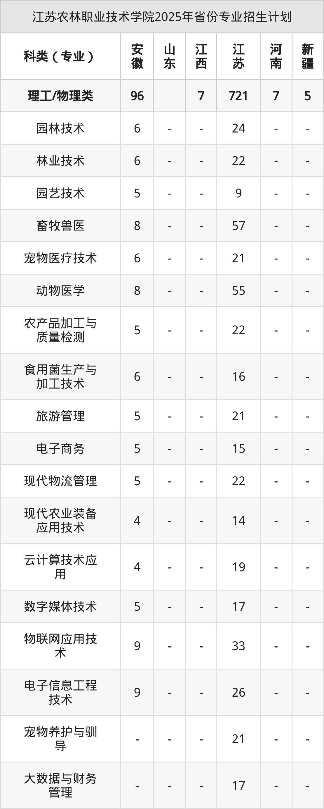 2026年江苏农林职业技术学院专科招生计划待公布,下面附上2025年数据,暂供参考: