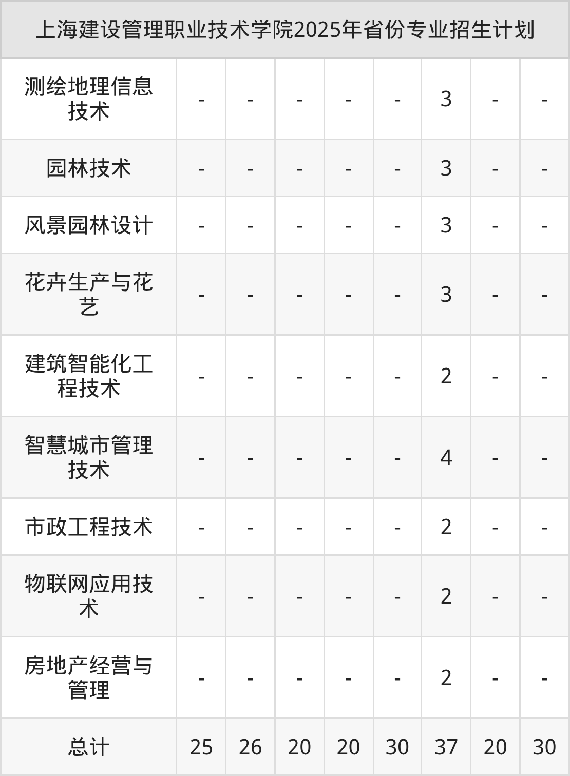 2026年上海建设管理职业技术学院专科招生计划待公布,下面附上2025年数据,暂供参考: