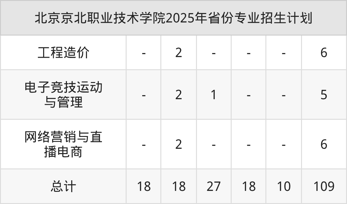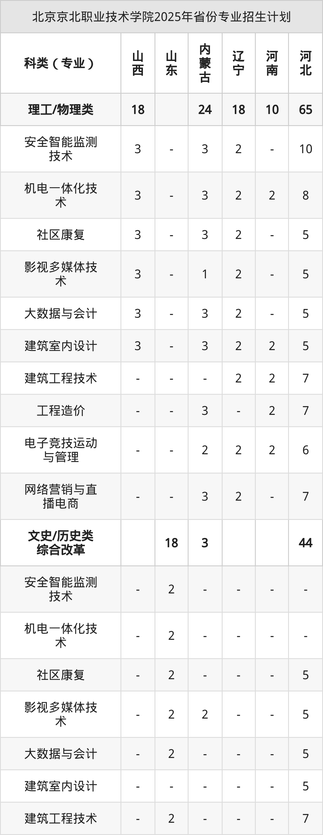 2026年北京京北职业技术学院专科招生计划待公布,下面附上2025年数据,暂供参考: