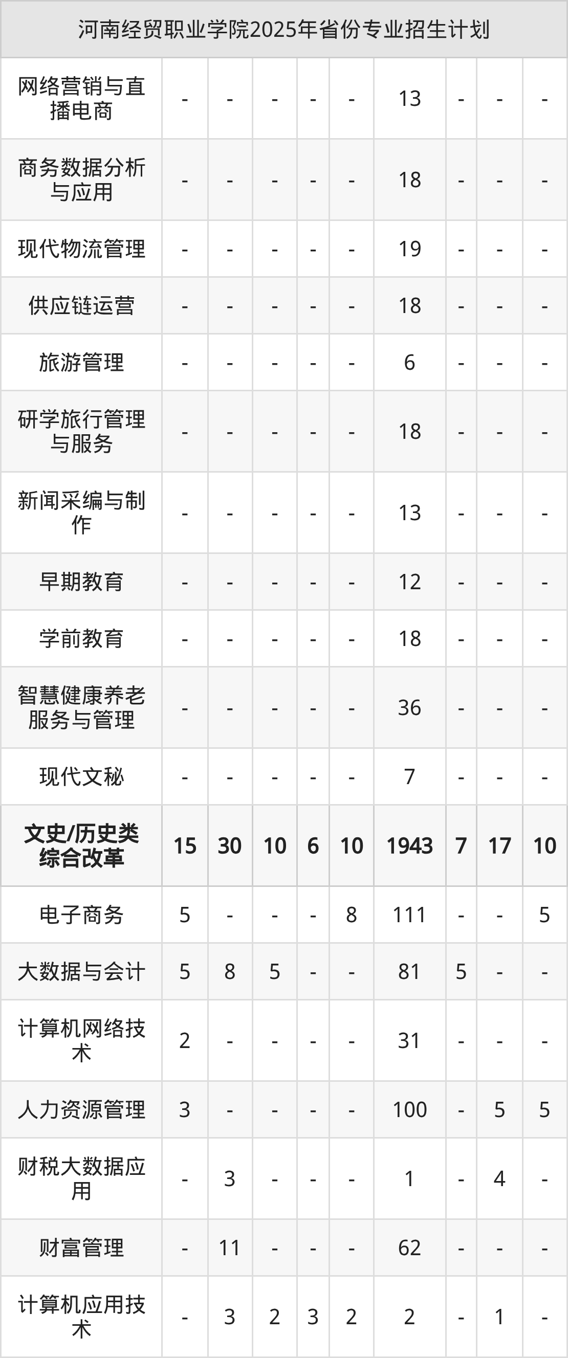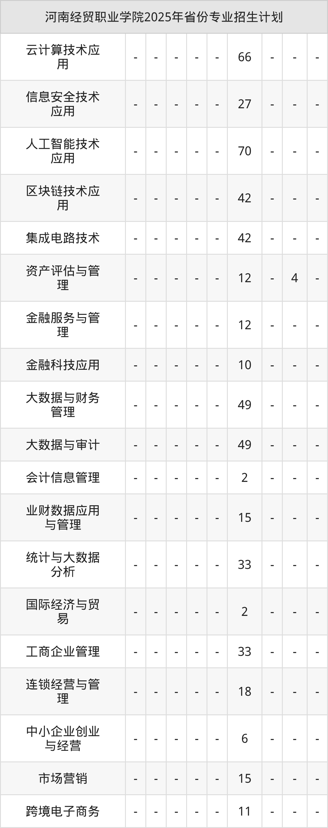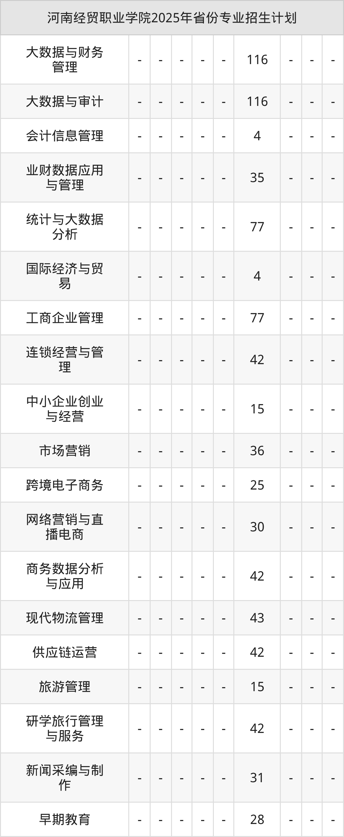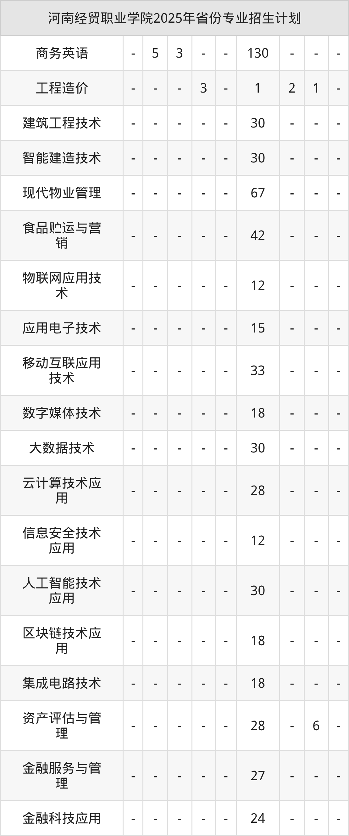 2026年河南经贸职业学院专科招生计划待公布,下面附上2025年数据,暂供参考: