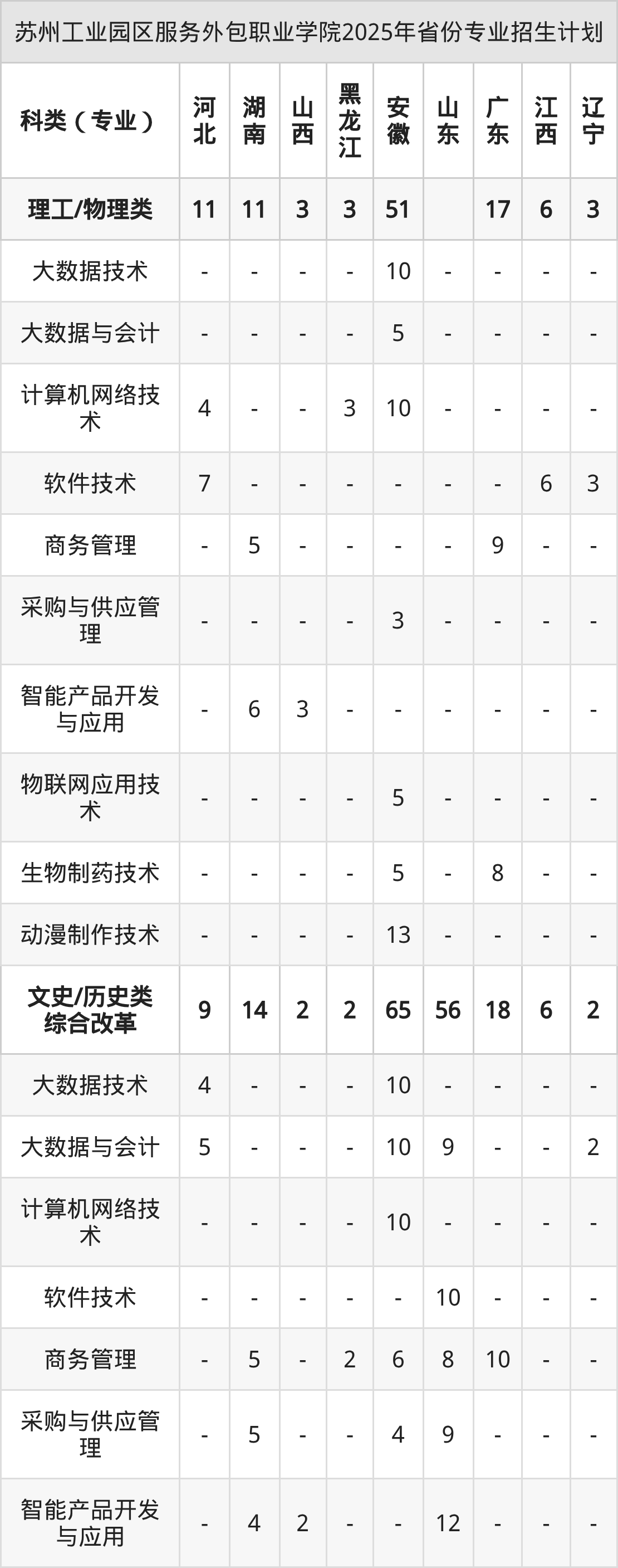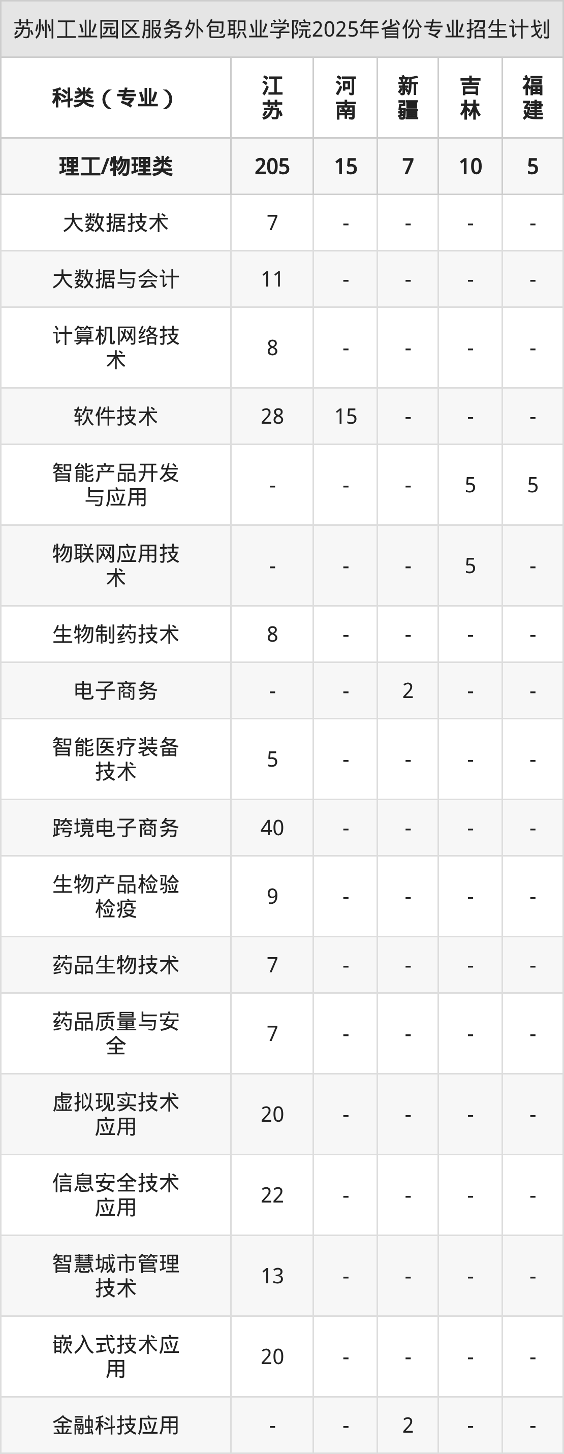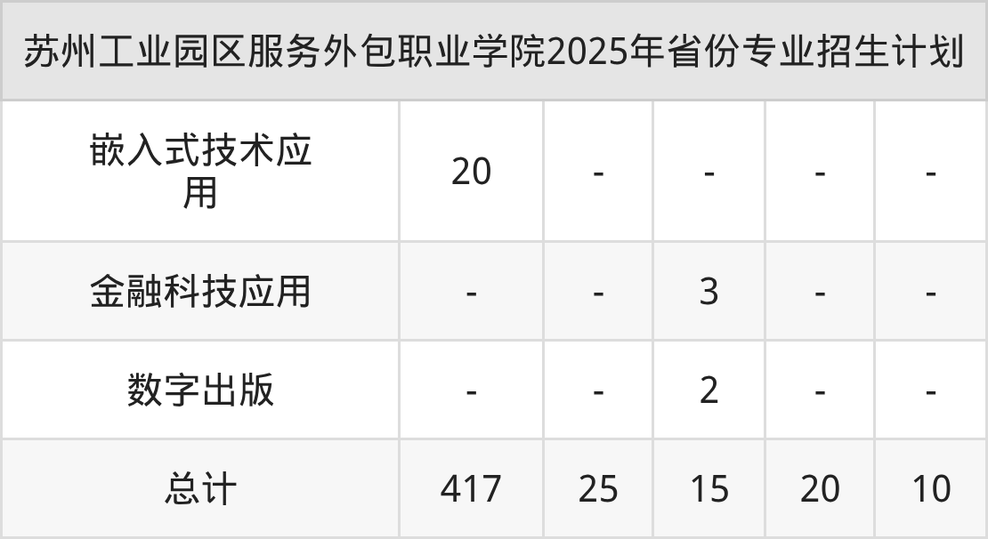 2026年苏州工业园区服务外包职业学院专科招生计划待公布,下面附上2025年数据,暂供参考: