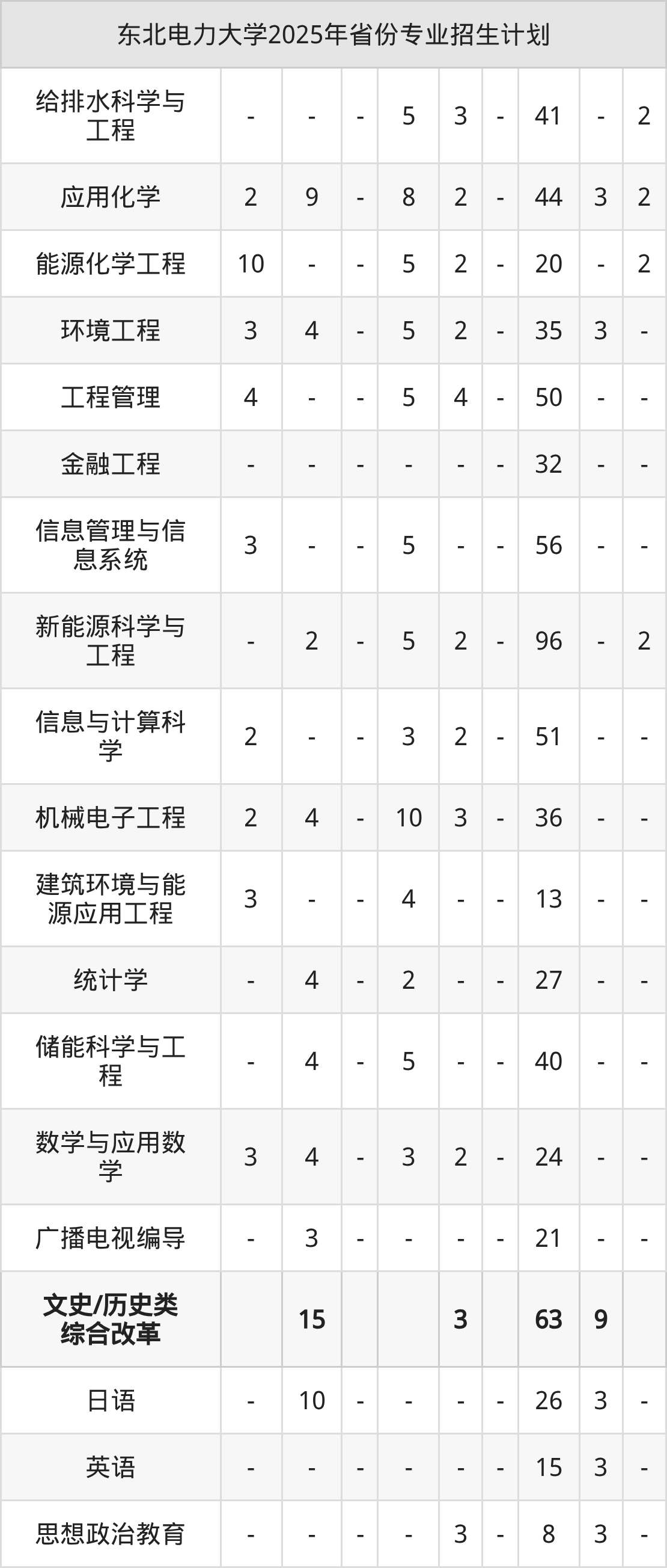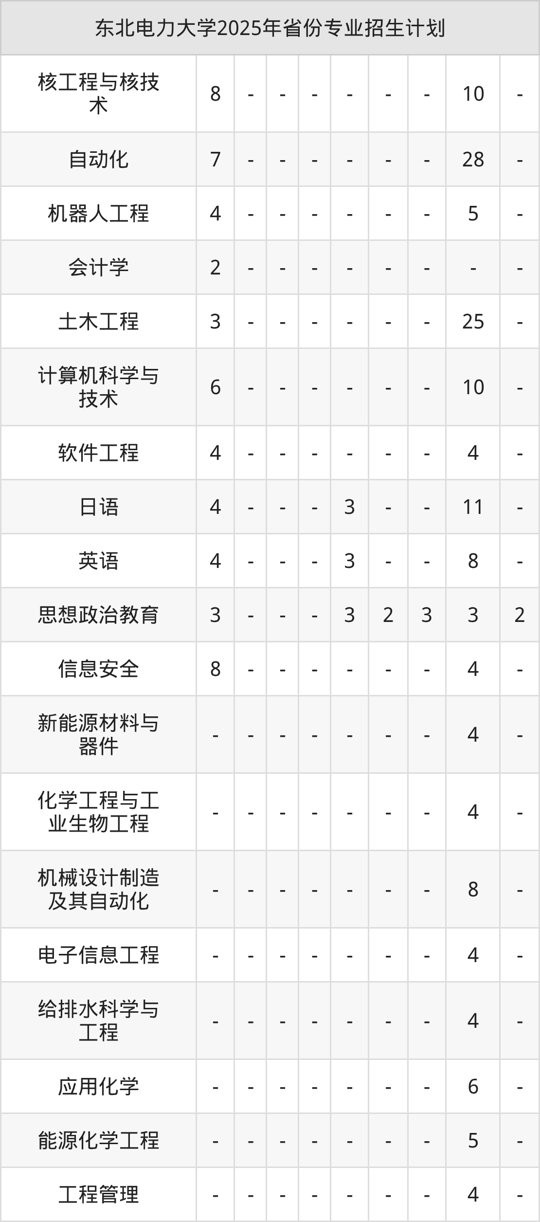 | 东北电力大学本科招生专业 | |
