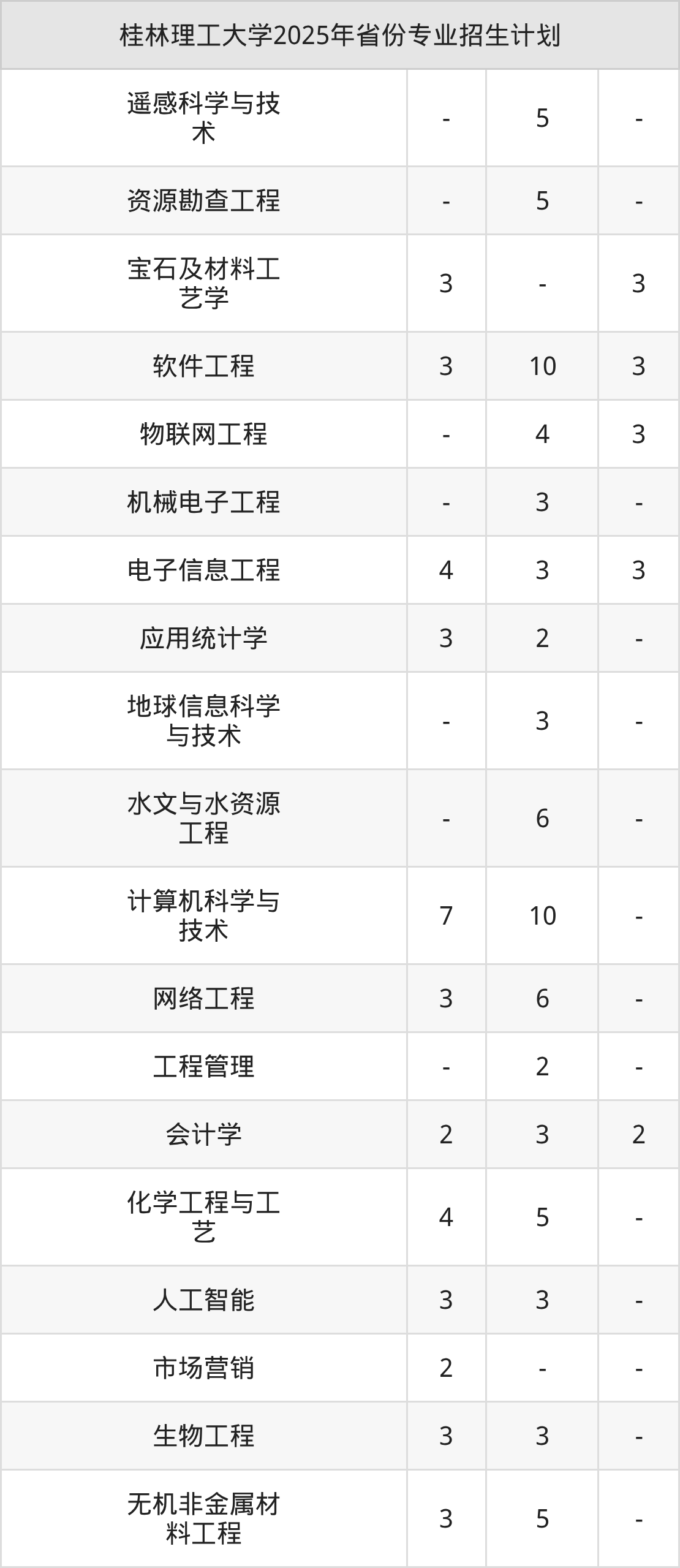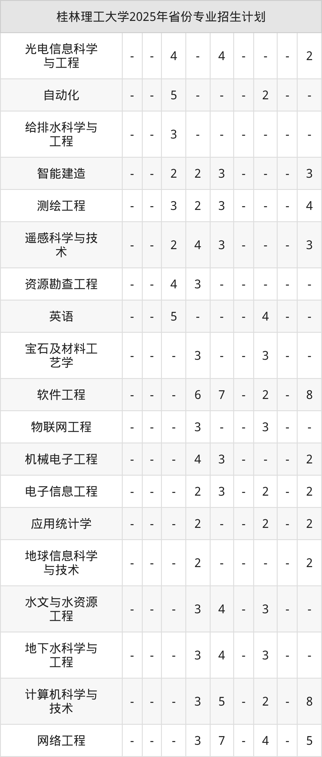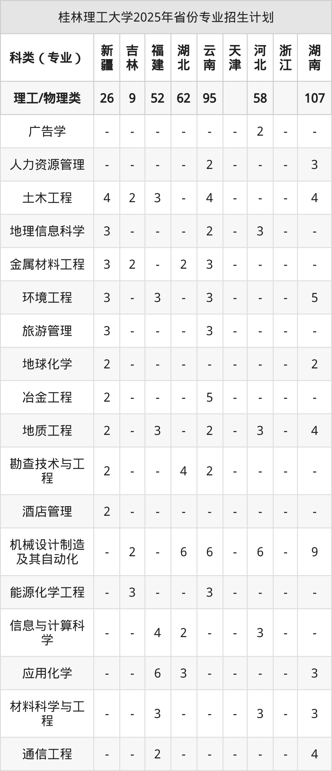 2026年桂林理工大学本科招生计划待公布,下面附上2025年数据,暂供参考: