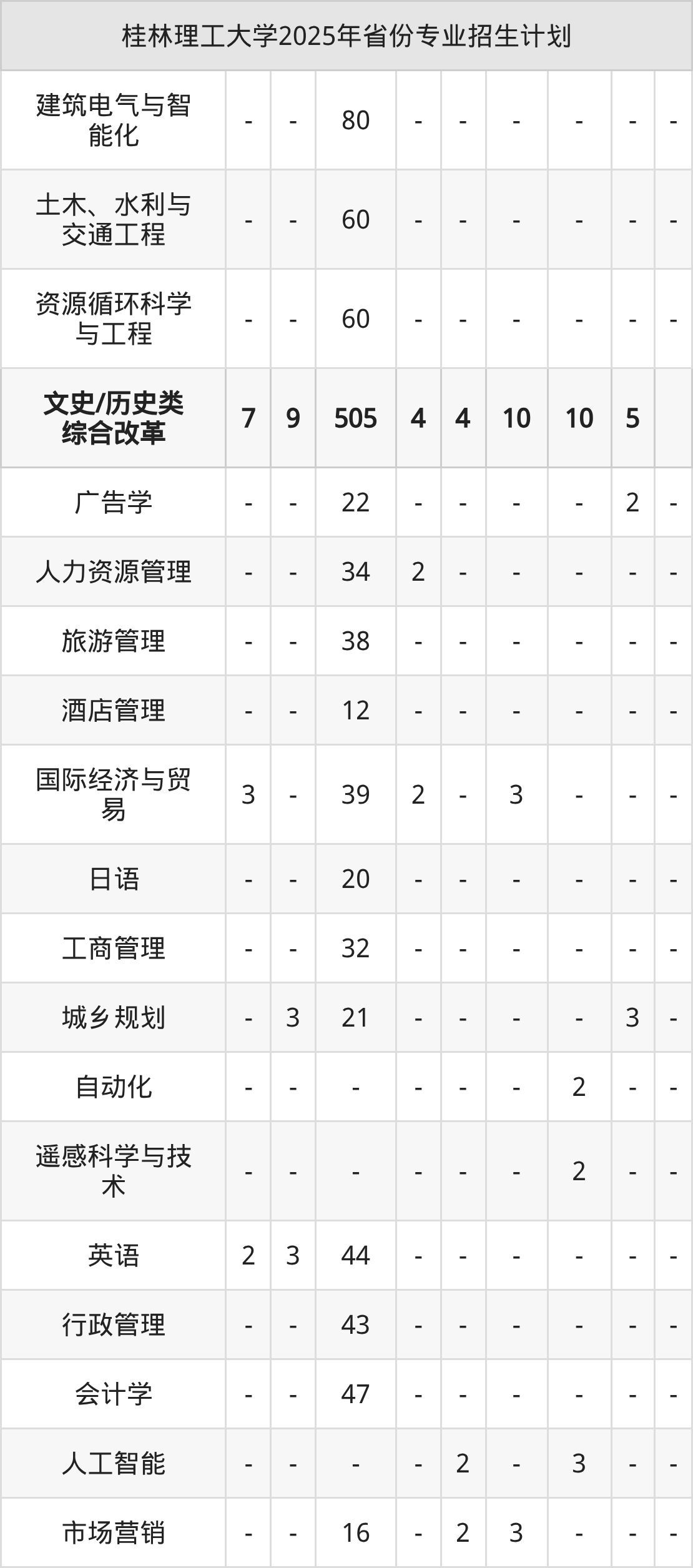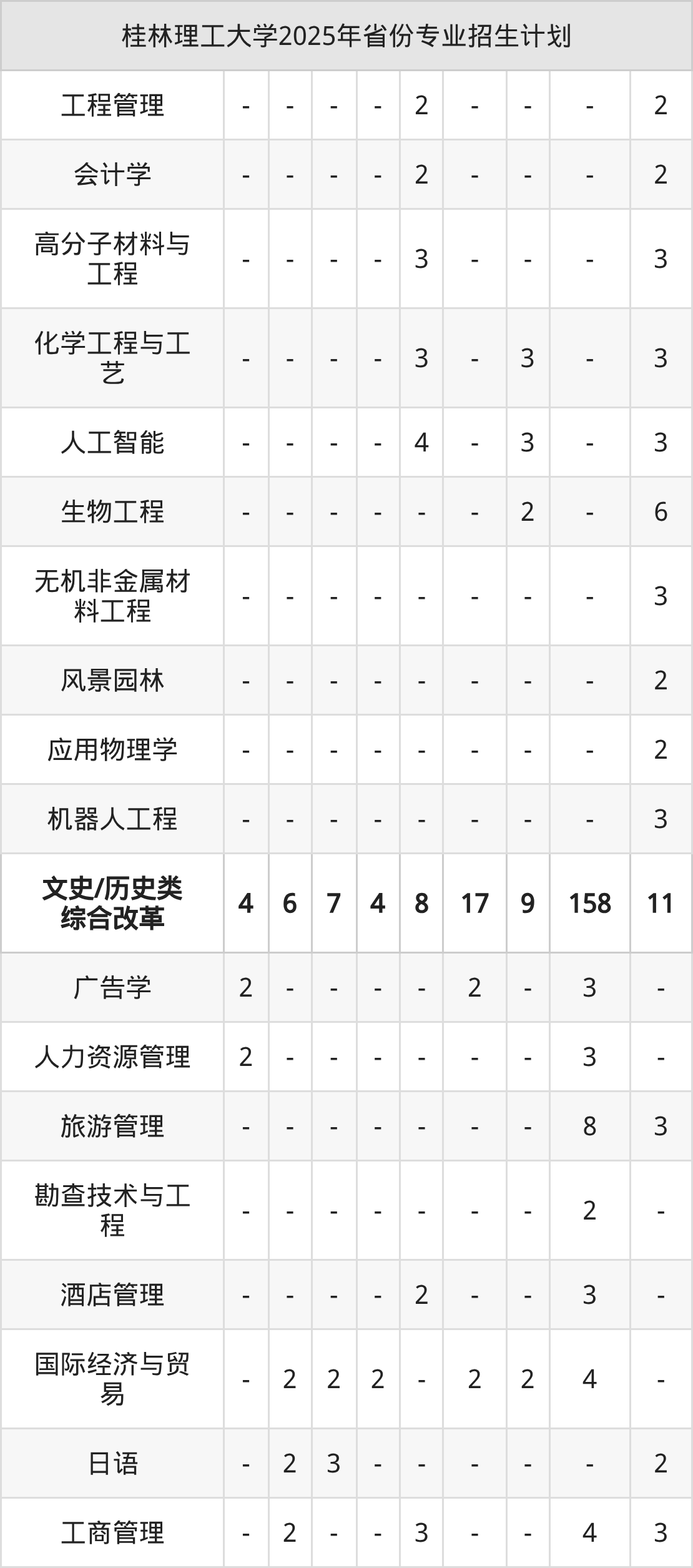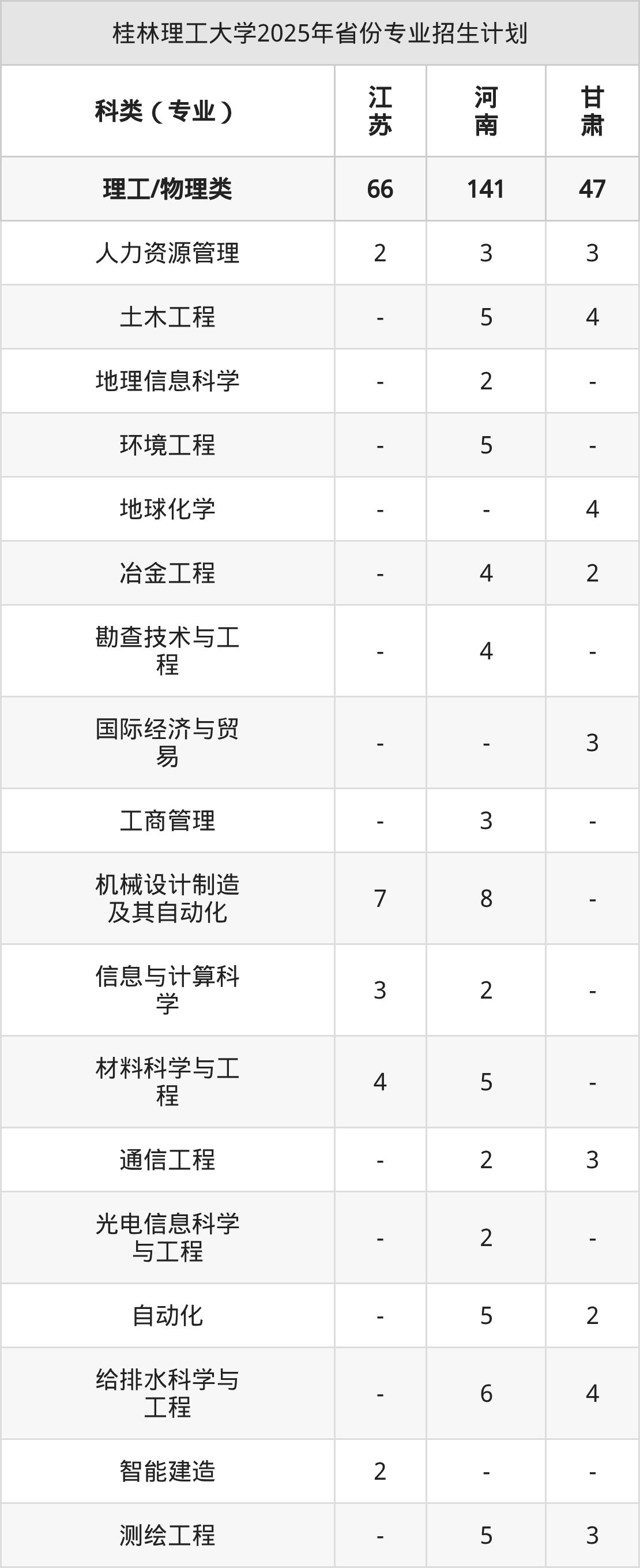 2026年桂林理工大学本科招生计划待公布,下面附上2025年数据,暂供参考: