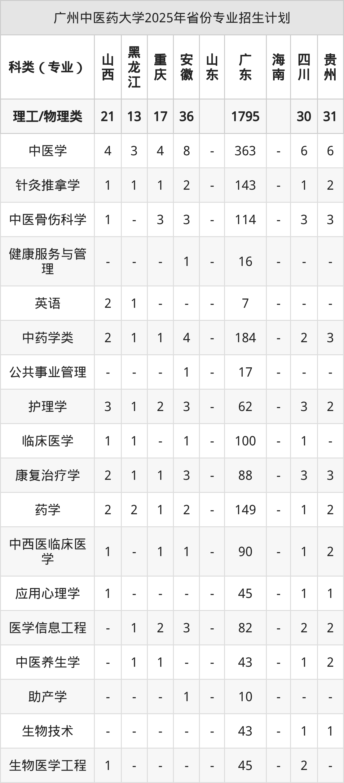2026年广州中医药大学本科招生计划待公布,下面附上2025年数据,暂供参考: