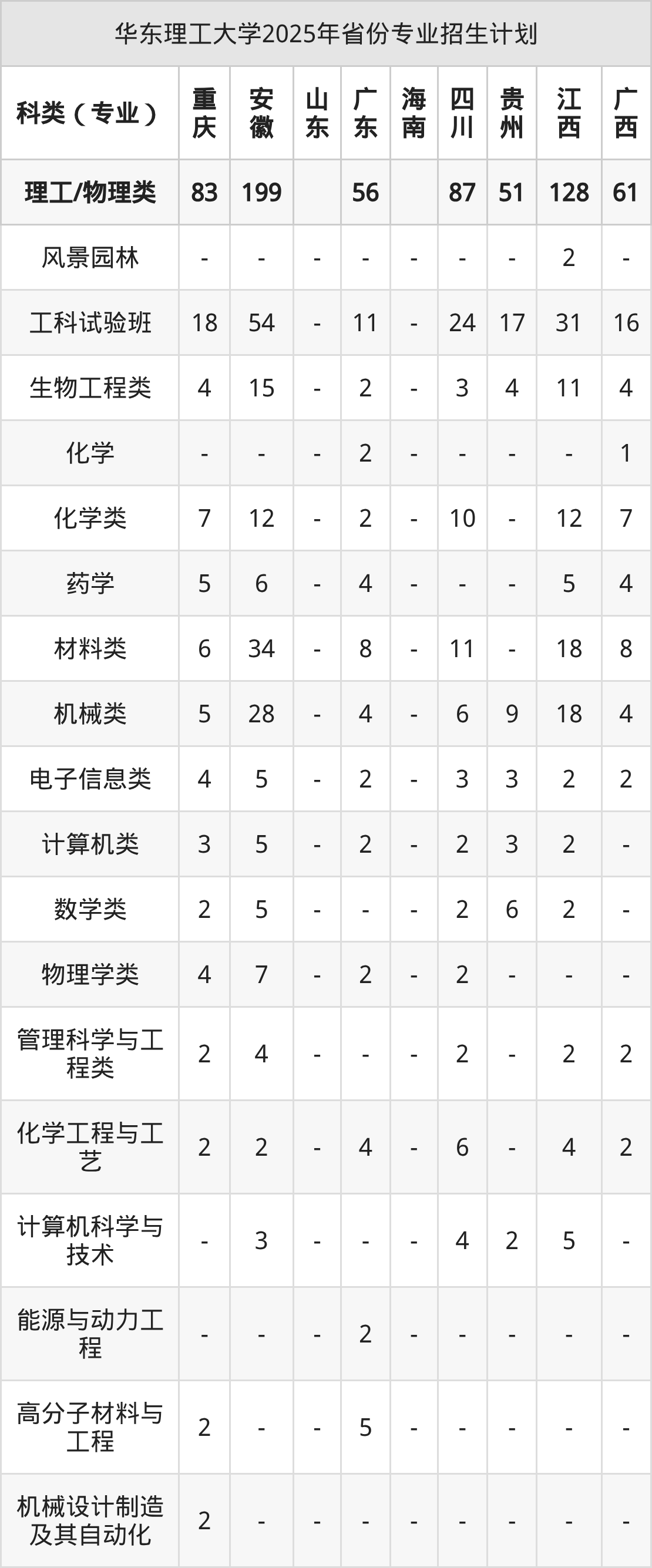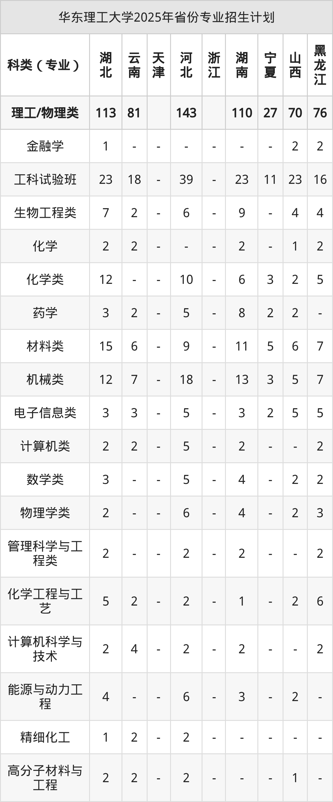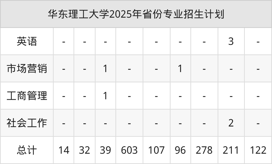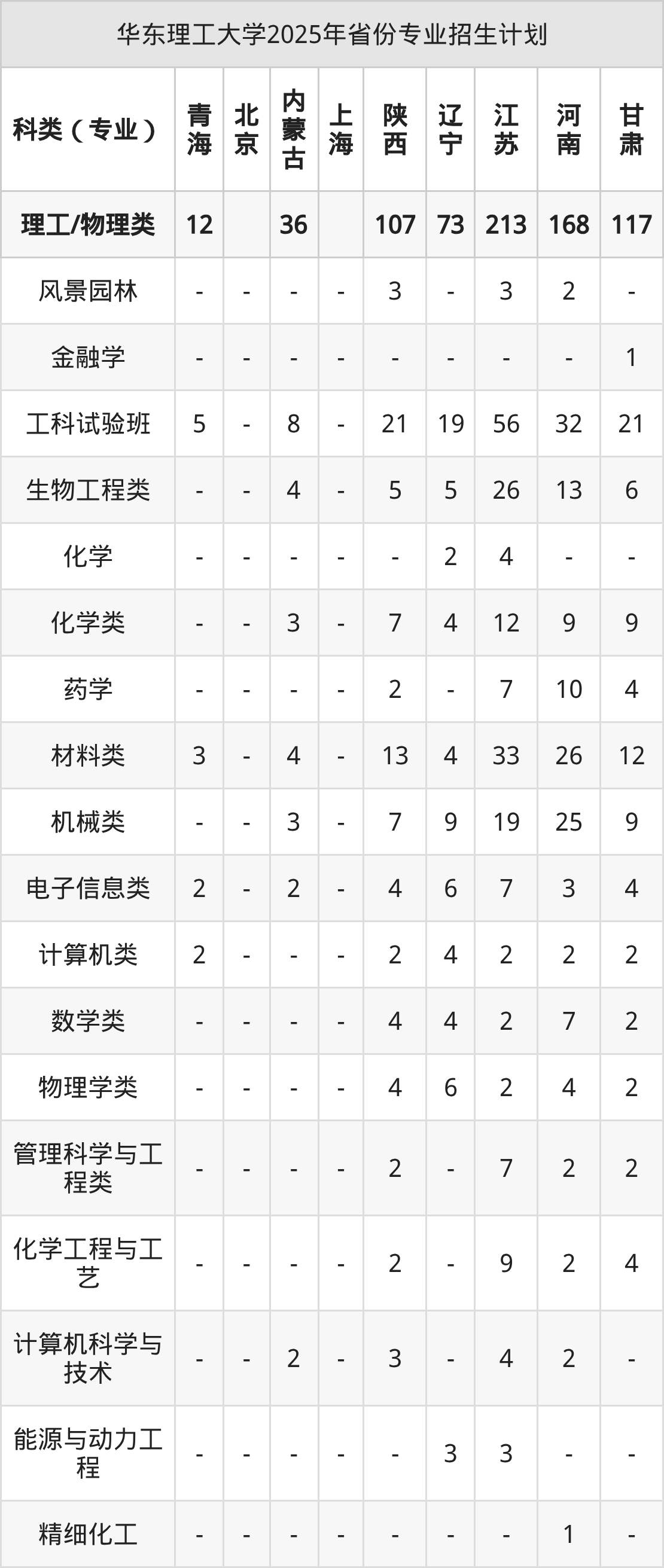 2026年华东理工大学本科招生计划待公布,下面附上2025年数据,暂供参考: