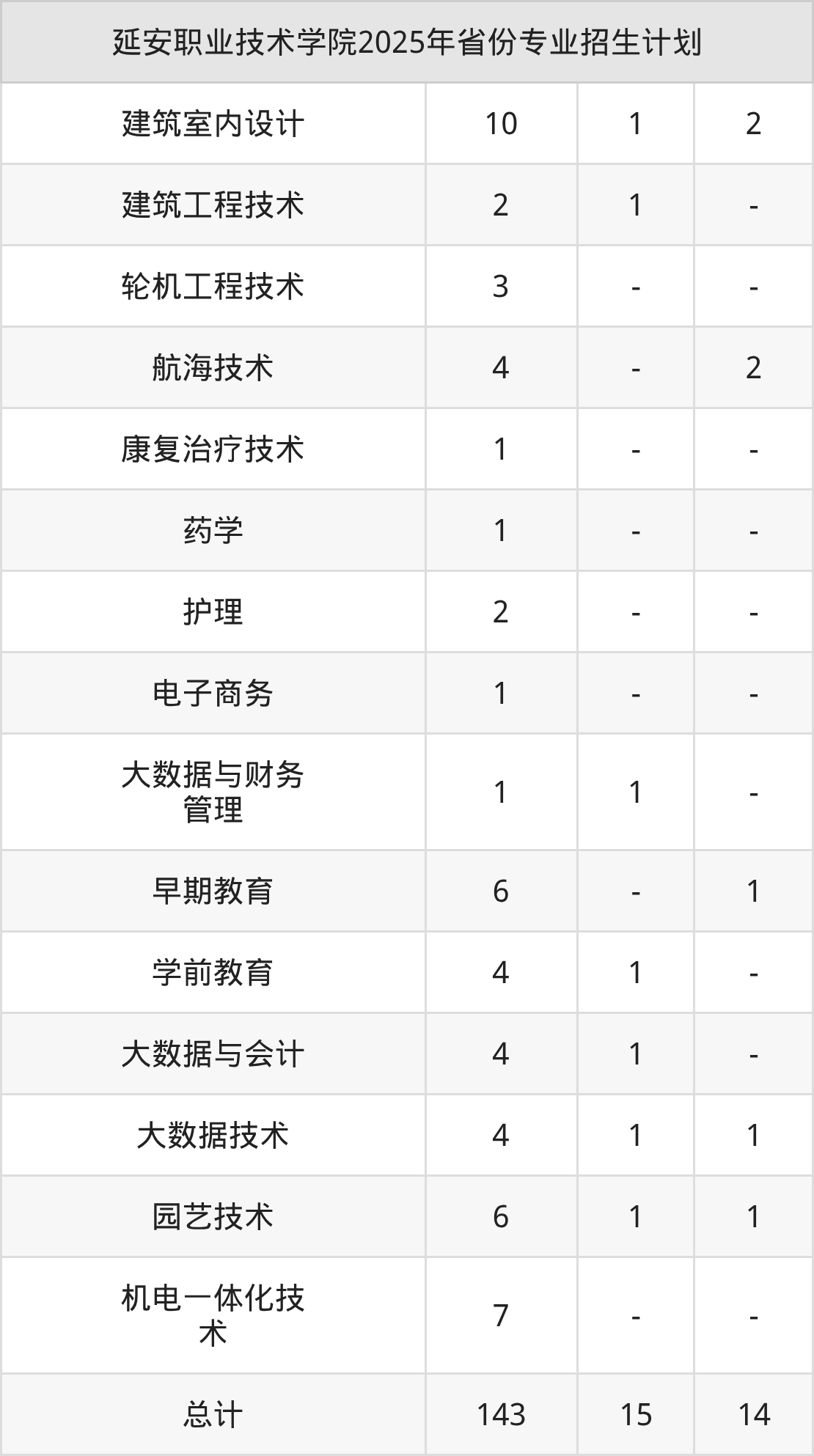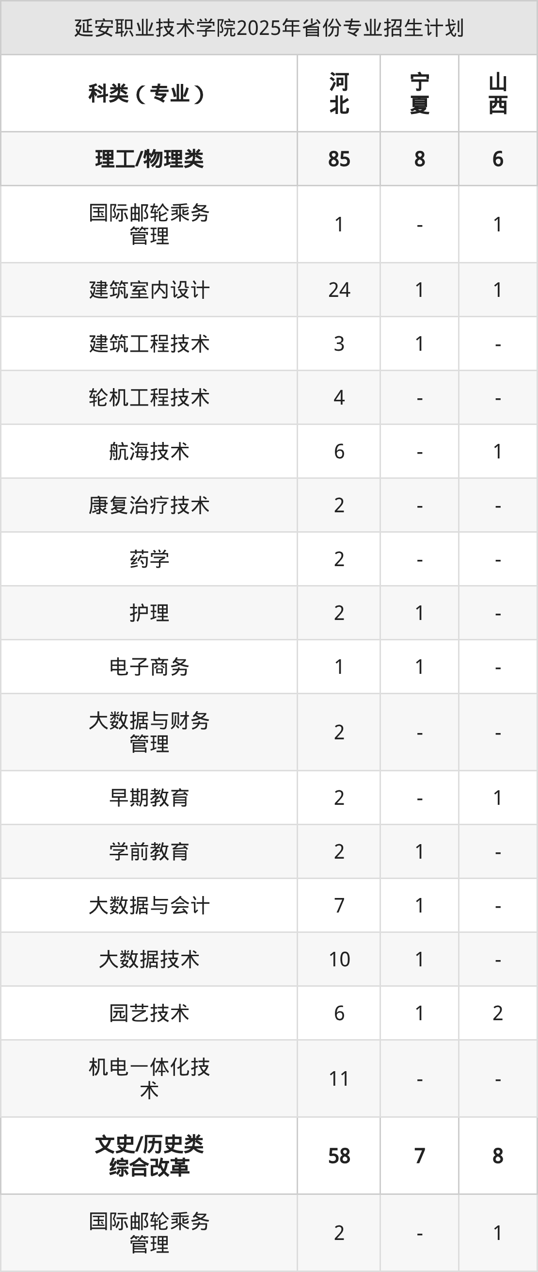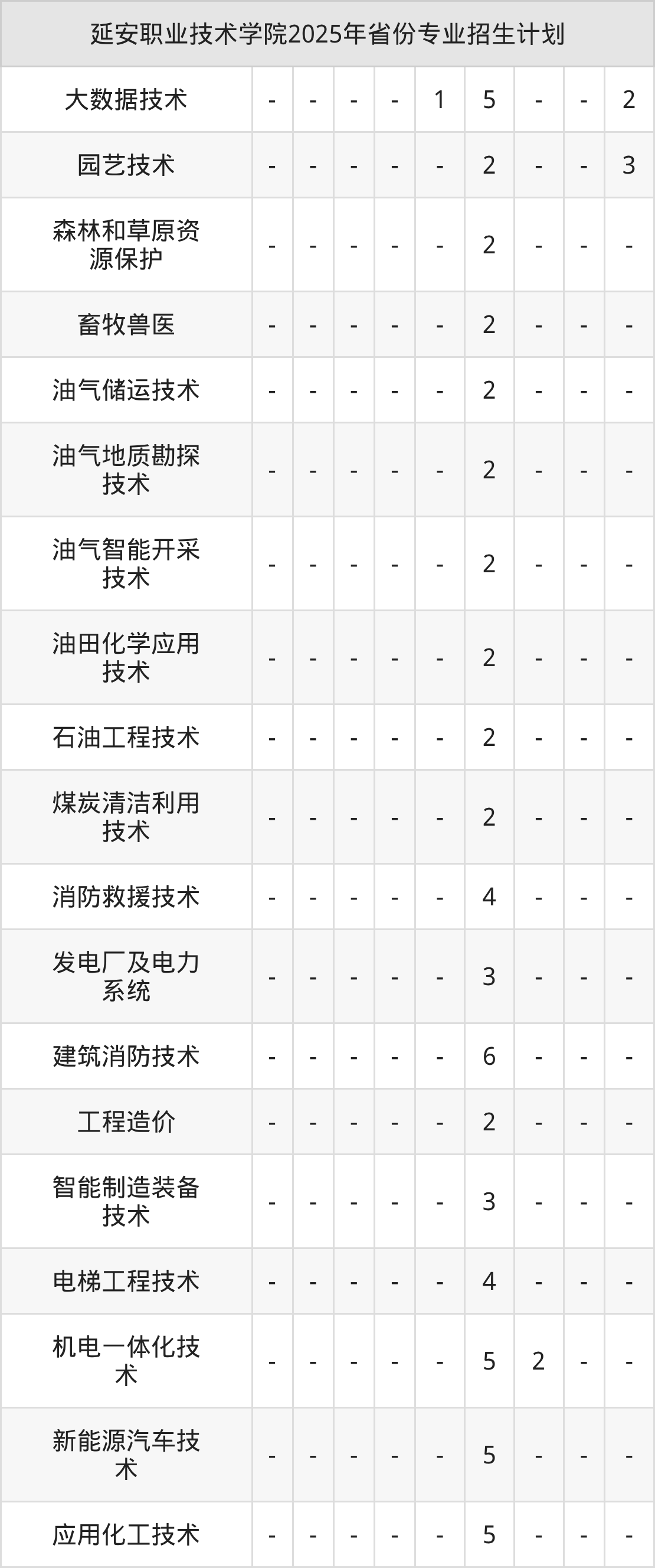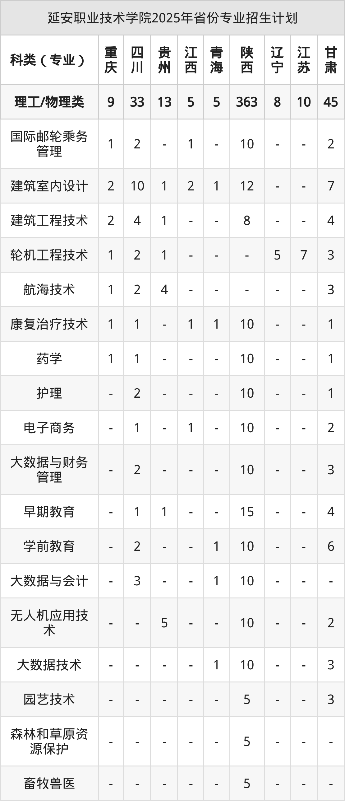 2026年延安职业技术学院专科招生计划待公布,下面附上2025年数据,暂供参考: