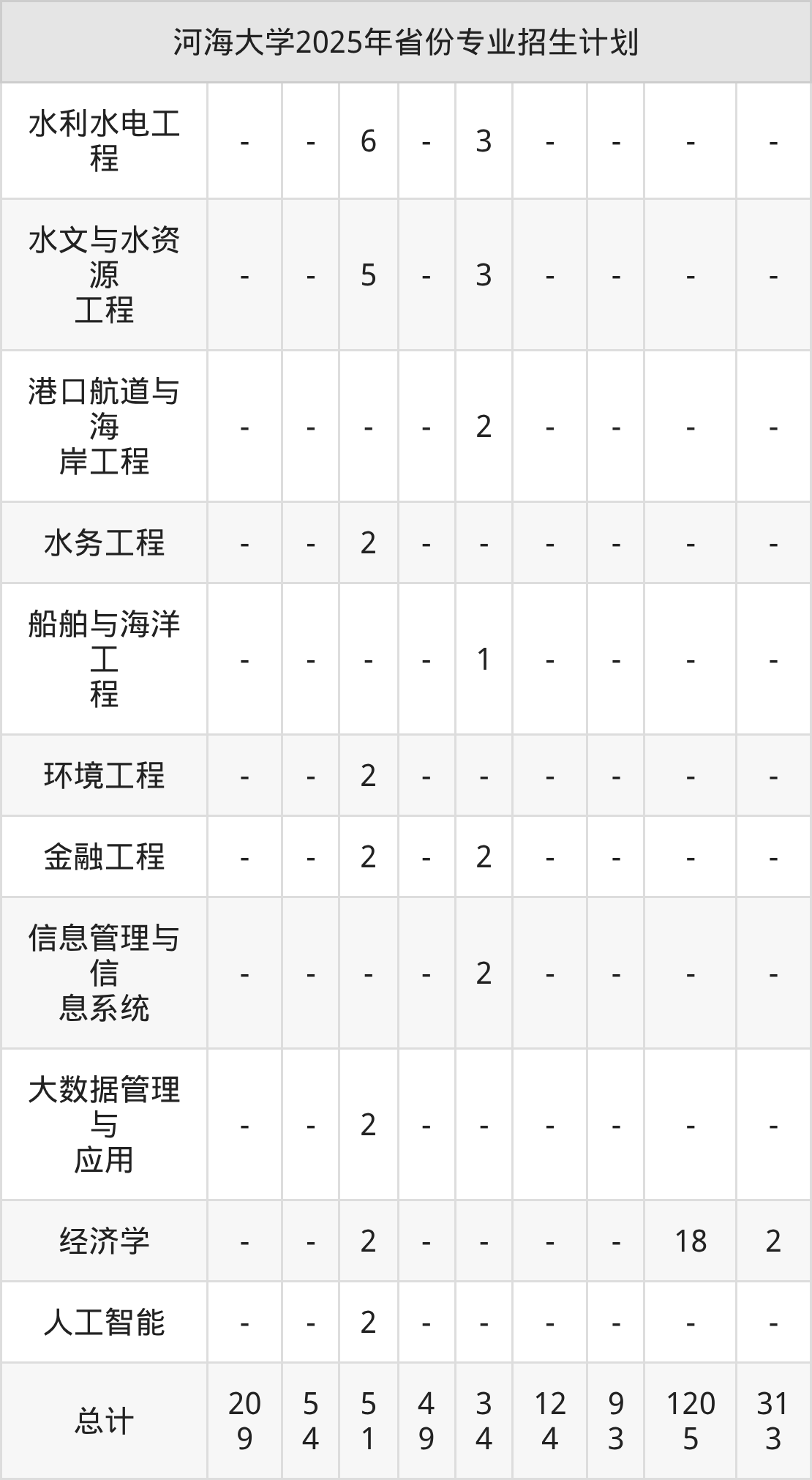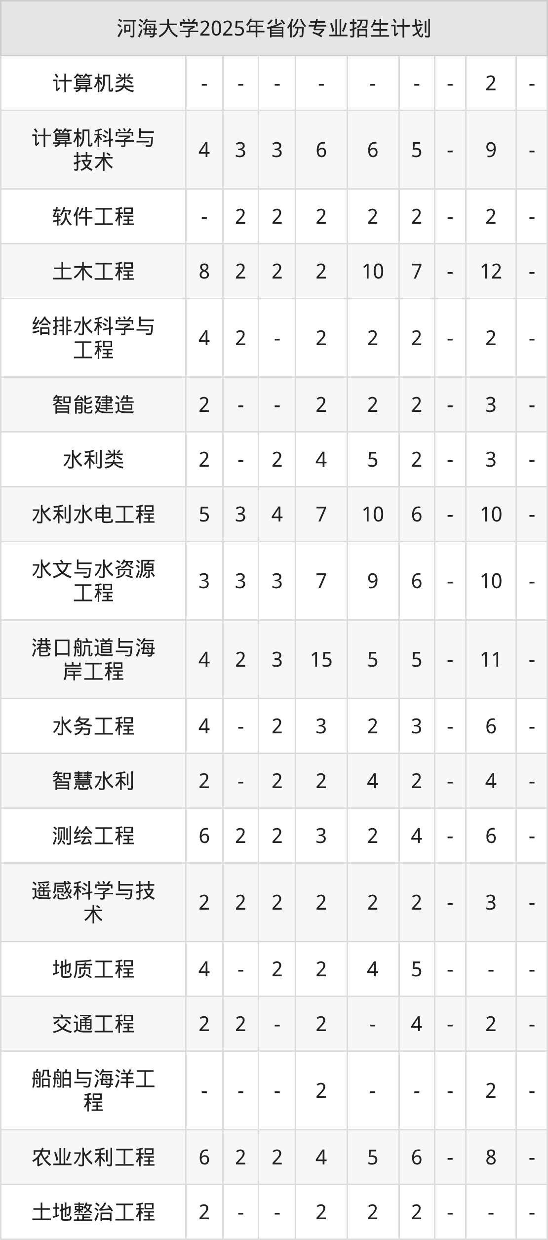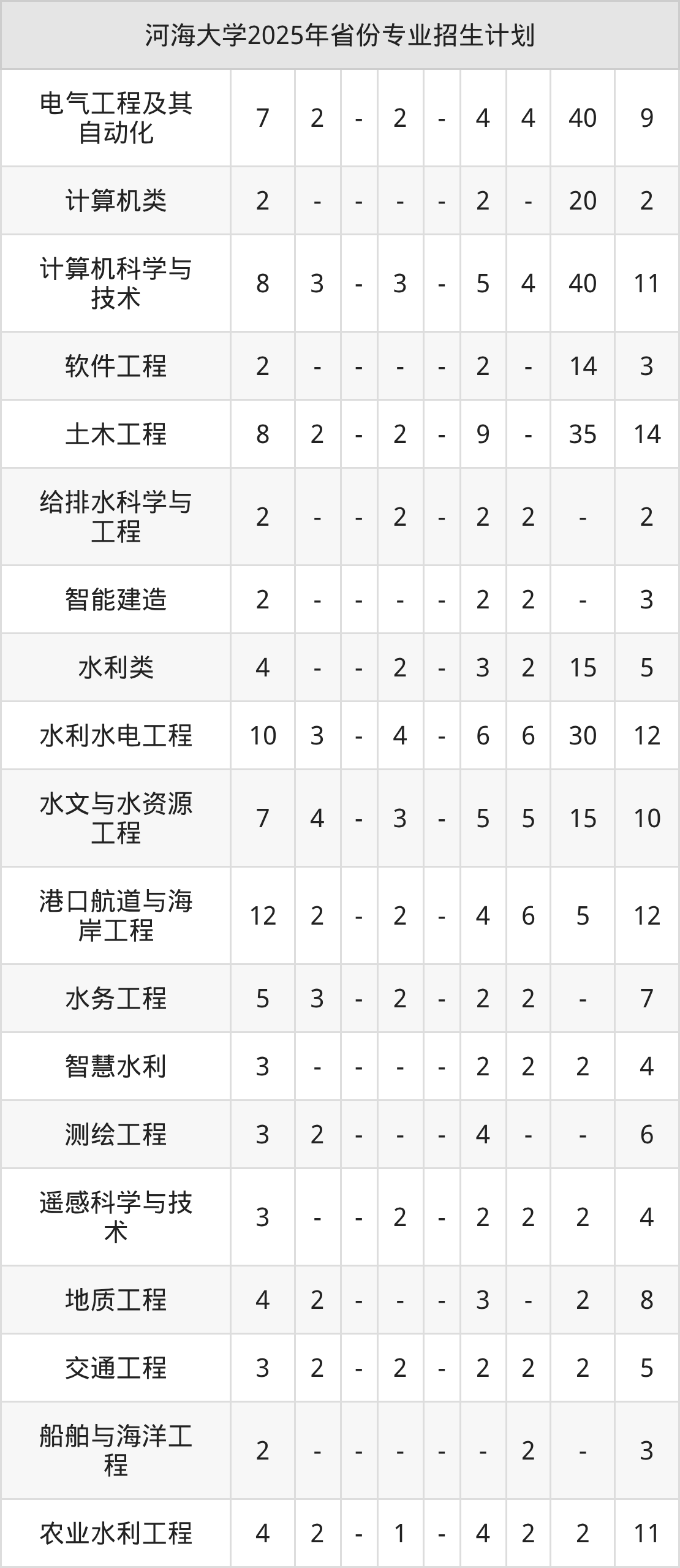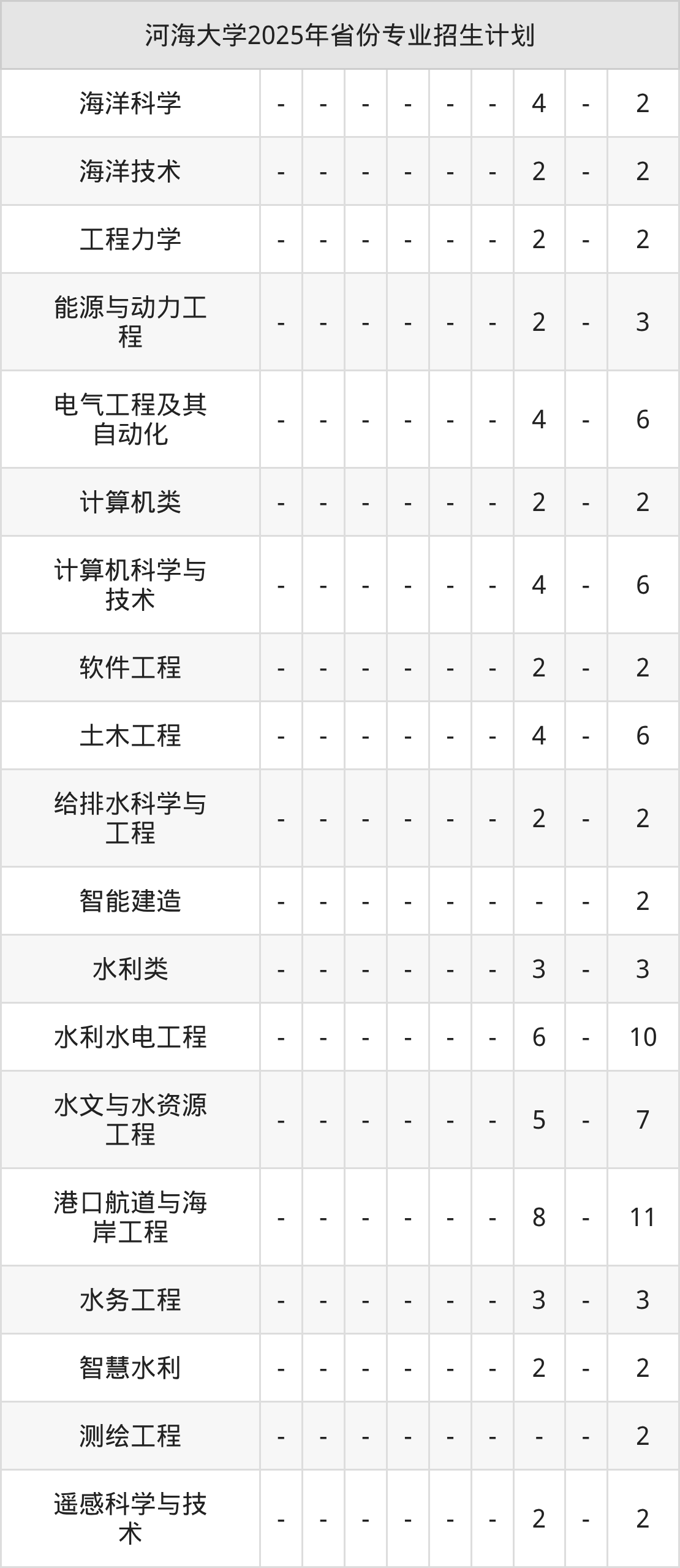 2026年河海大学本科招生计划待公布,下面附上2025年数据,暂供参考: