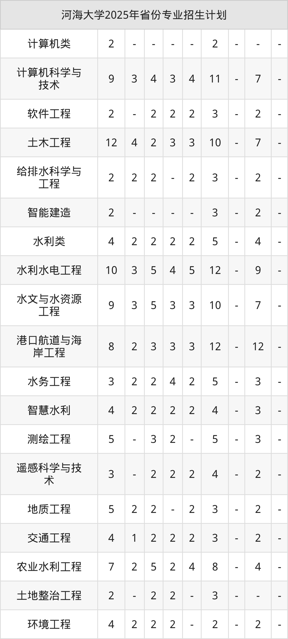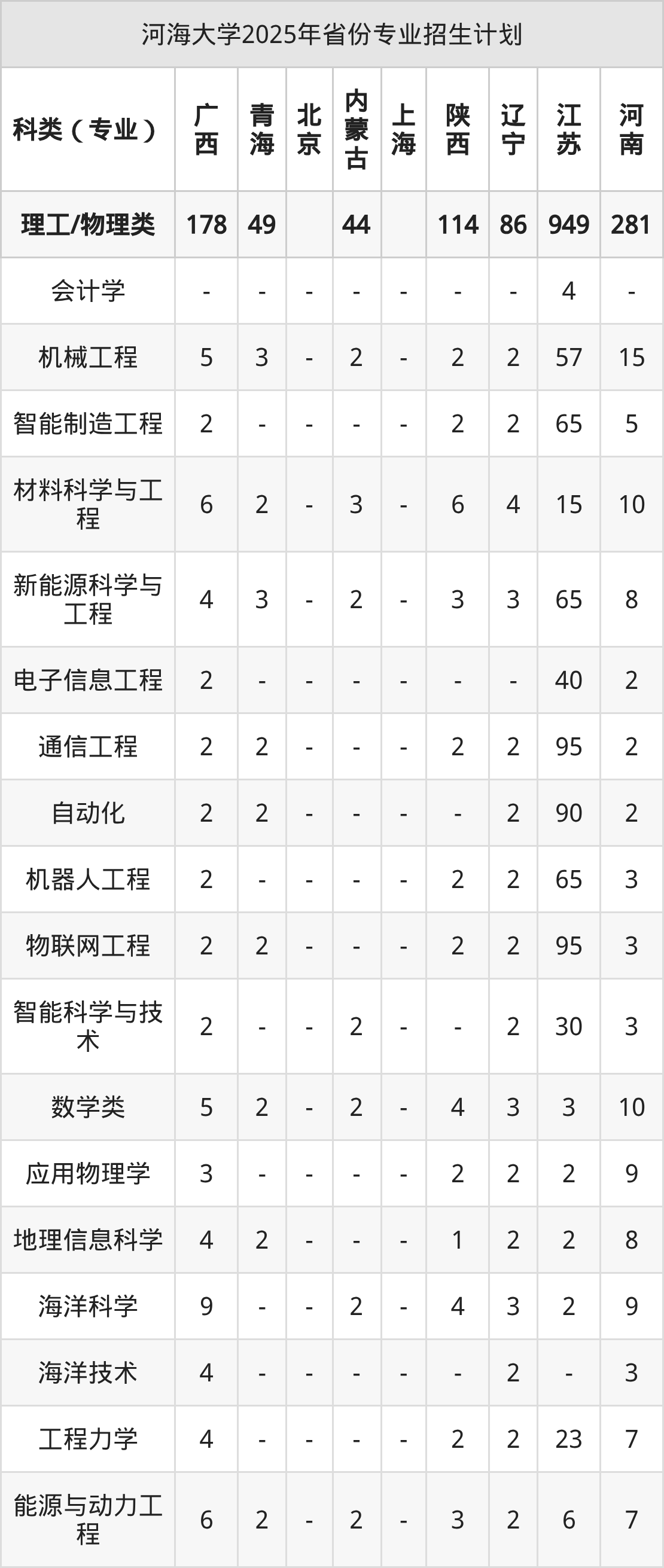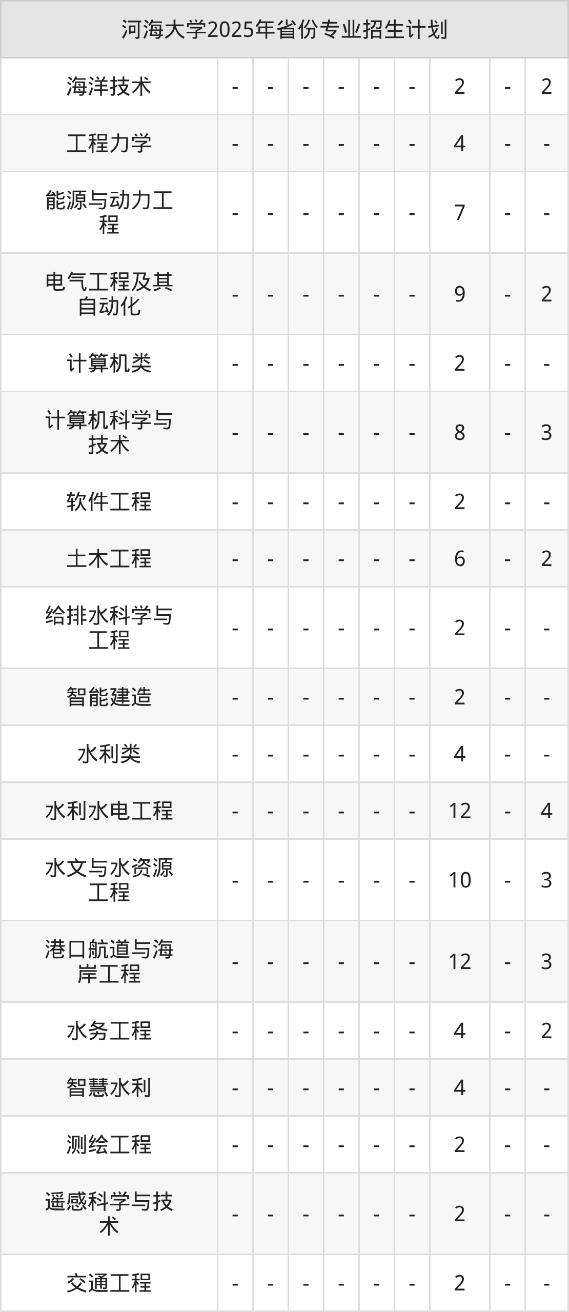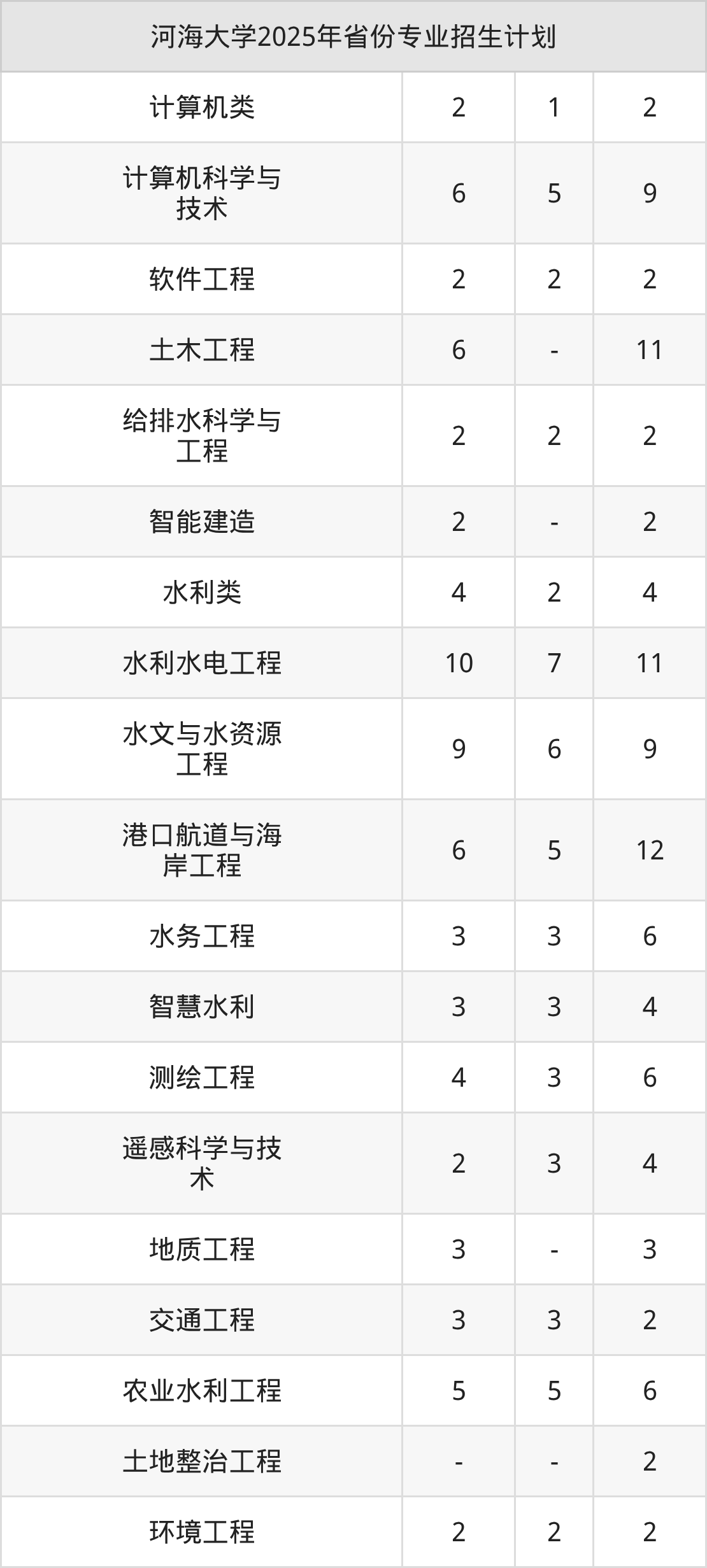 2026年河海大学本科招生计划待公布,下面附上2025年数据,暂供参考: