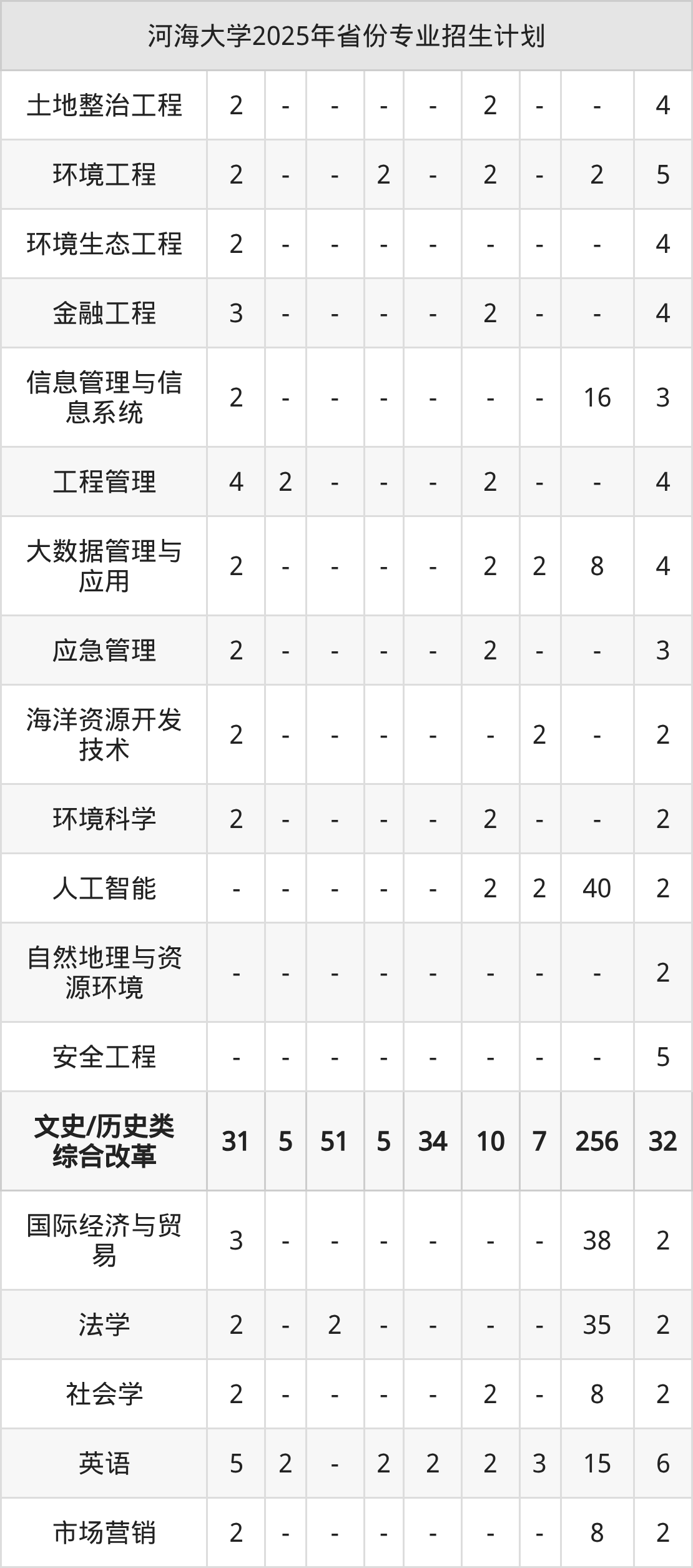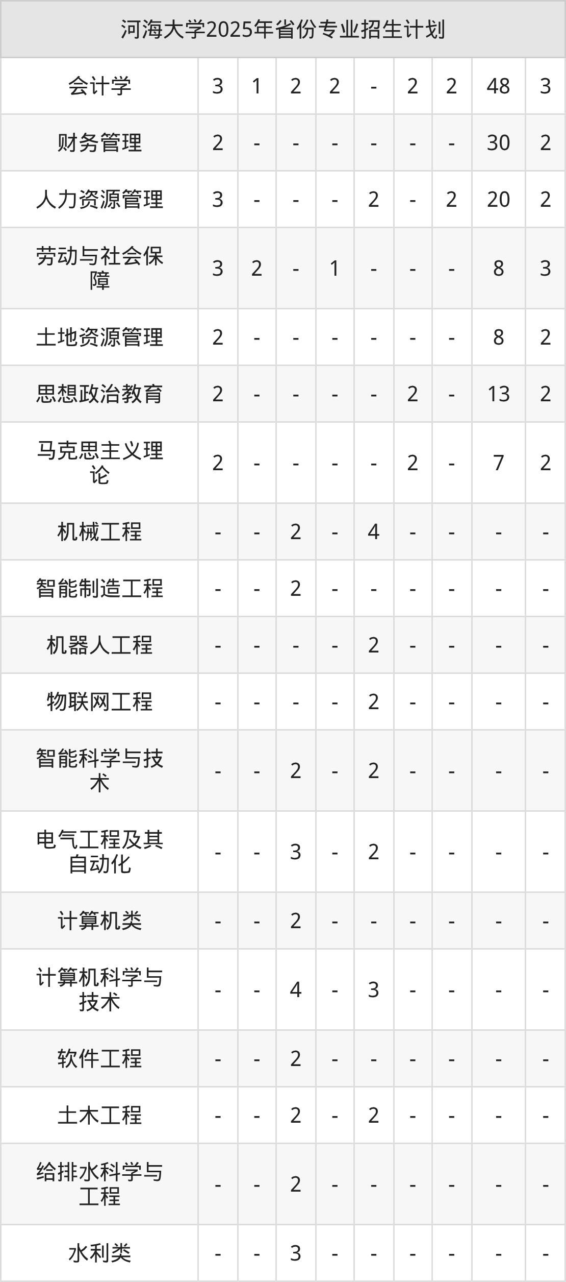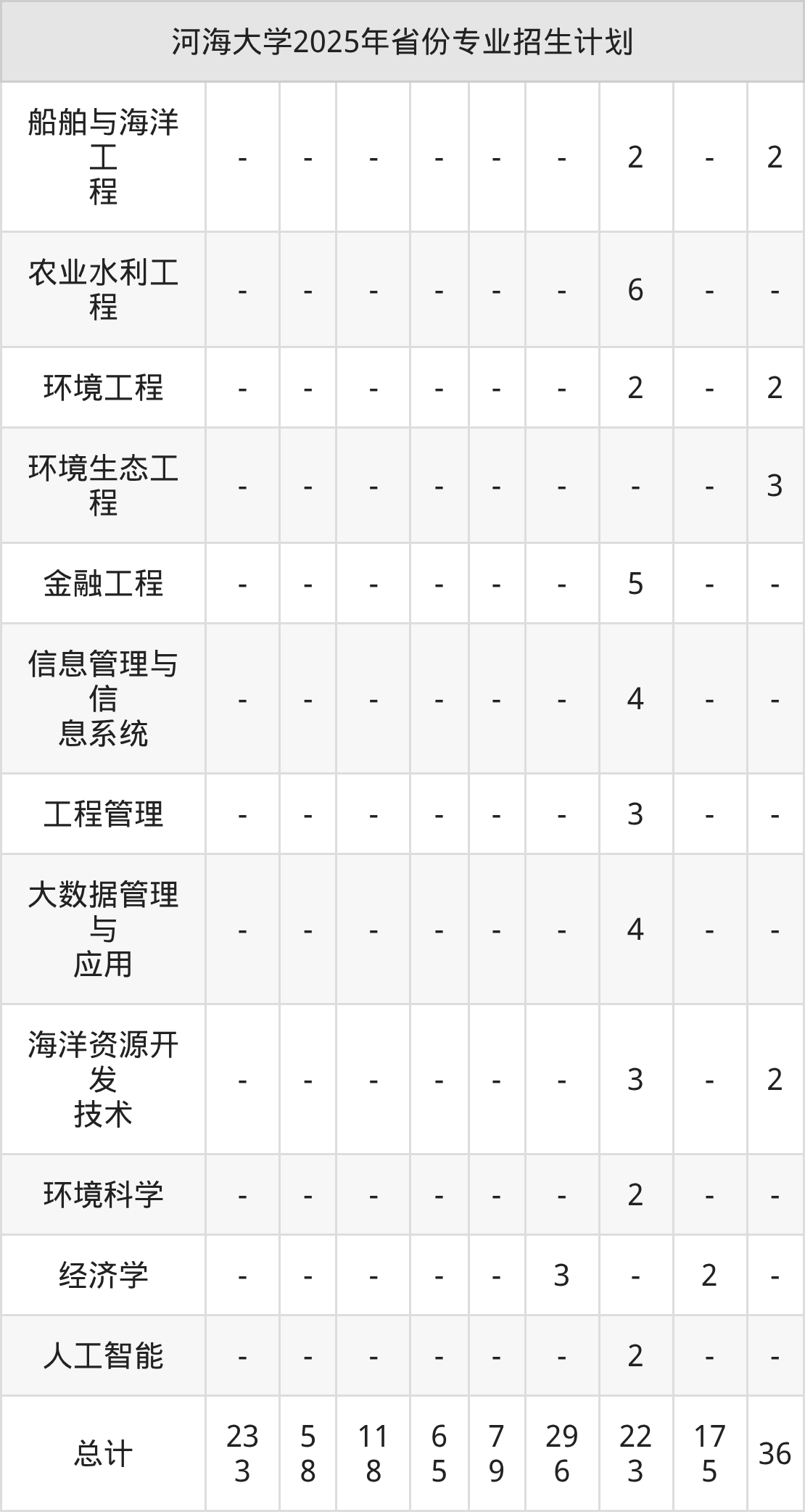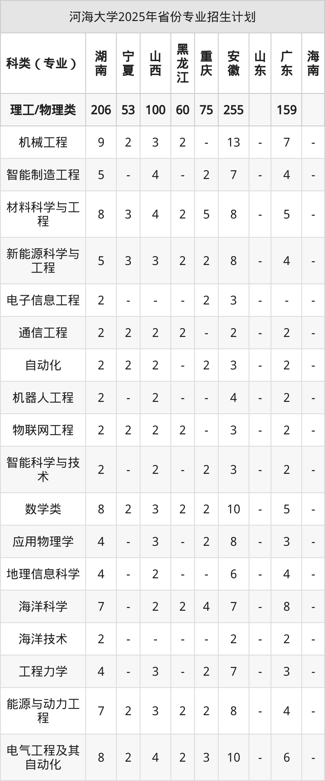 2026年河海大学本科招生计划待公布,下面附上2025年数据,暂供参考: