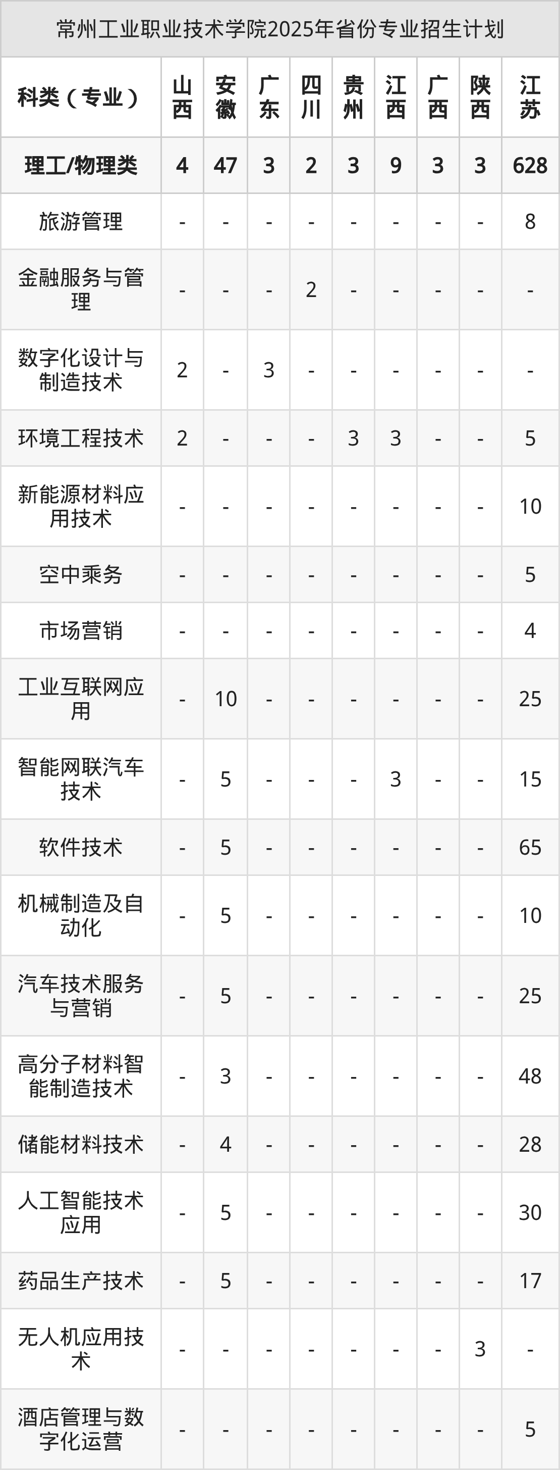 2026年常州工业职业技术学院专科招生计划待公布,下面附上2025年数据,暂供参考: