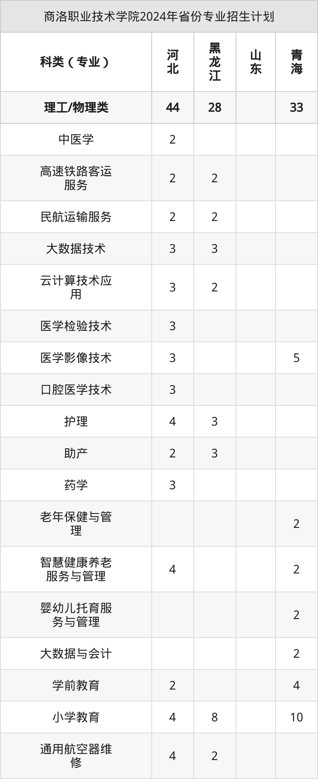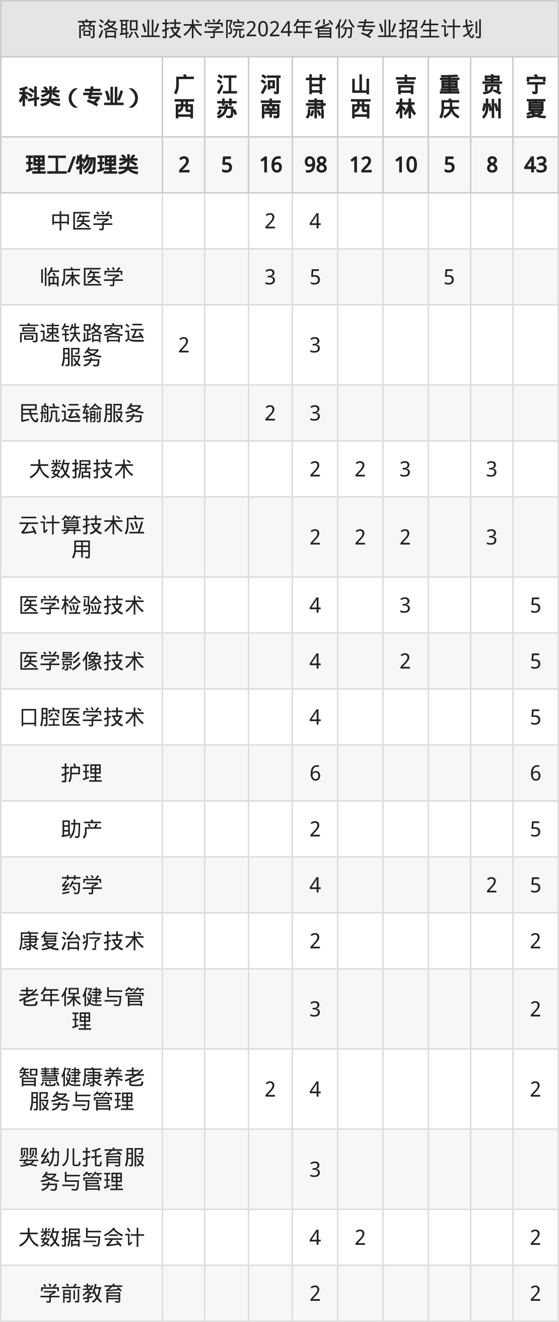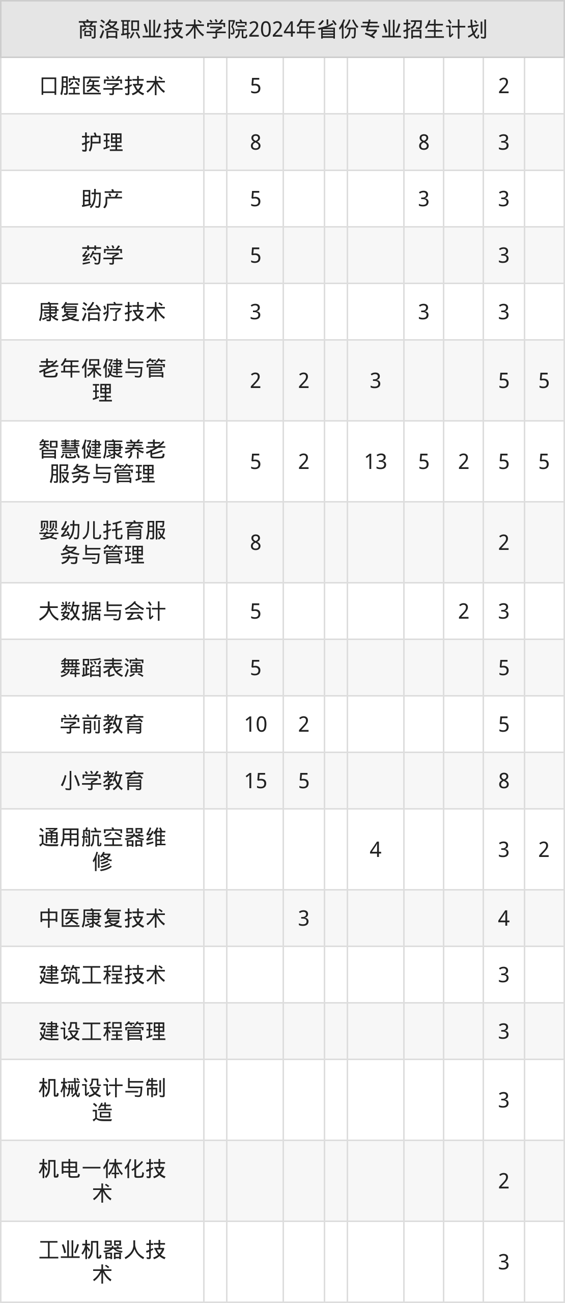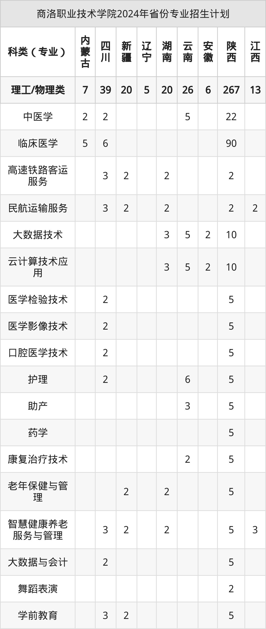 2025年商洛职业技术学院专科招生计划待公布,下面附上2024年数据,暂供参考: