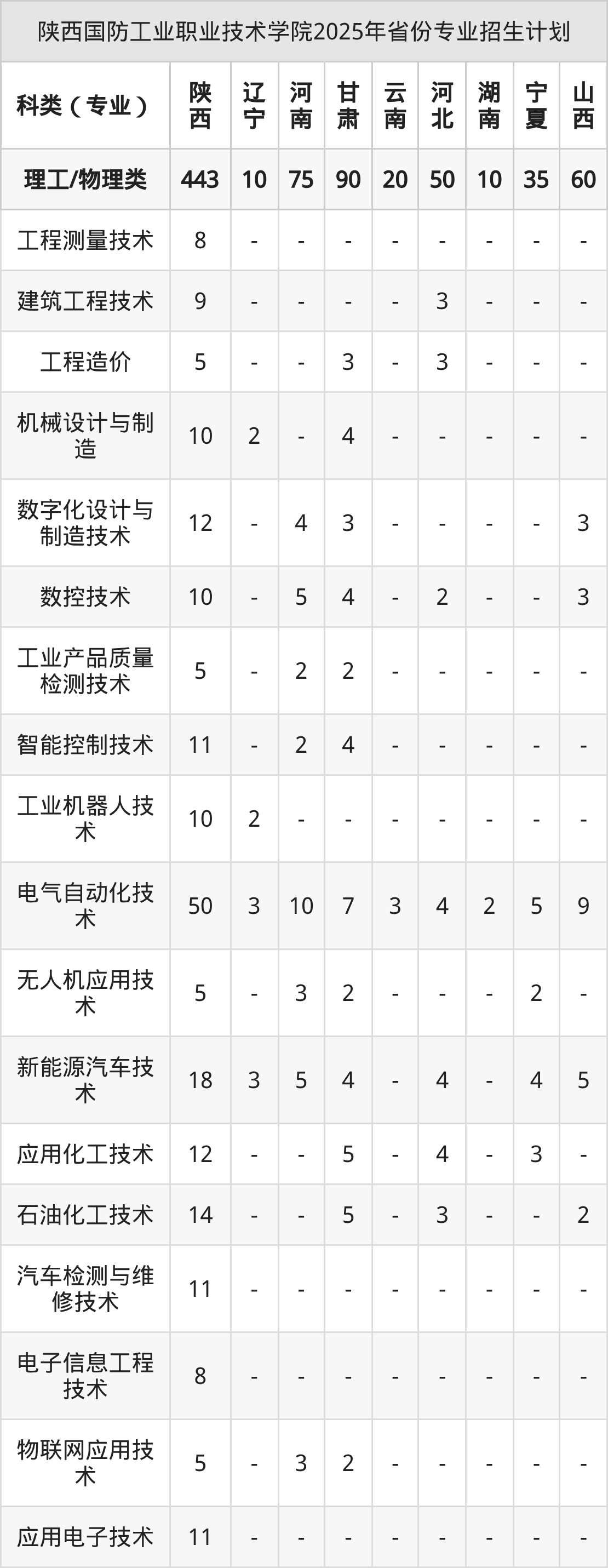 2026年陕西国防工业职业技术学院专科招生计划待公布,下面附上2025年数据,暂供参考: