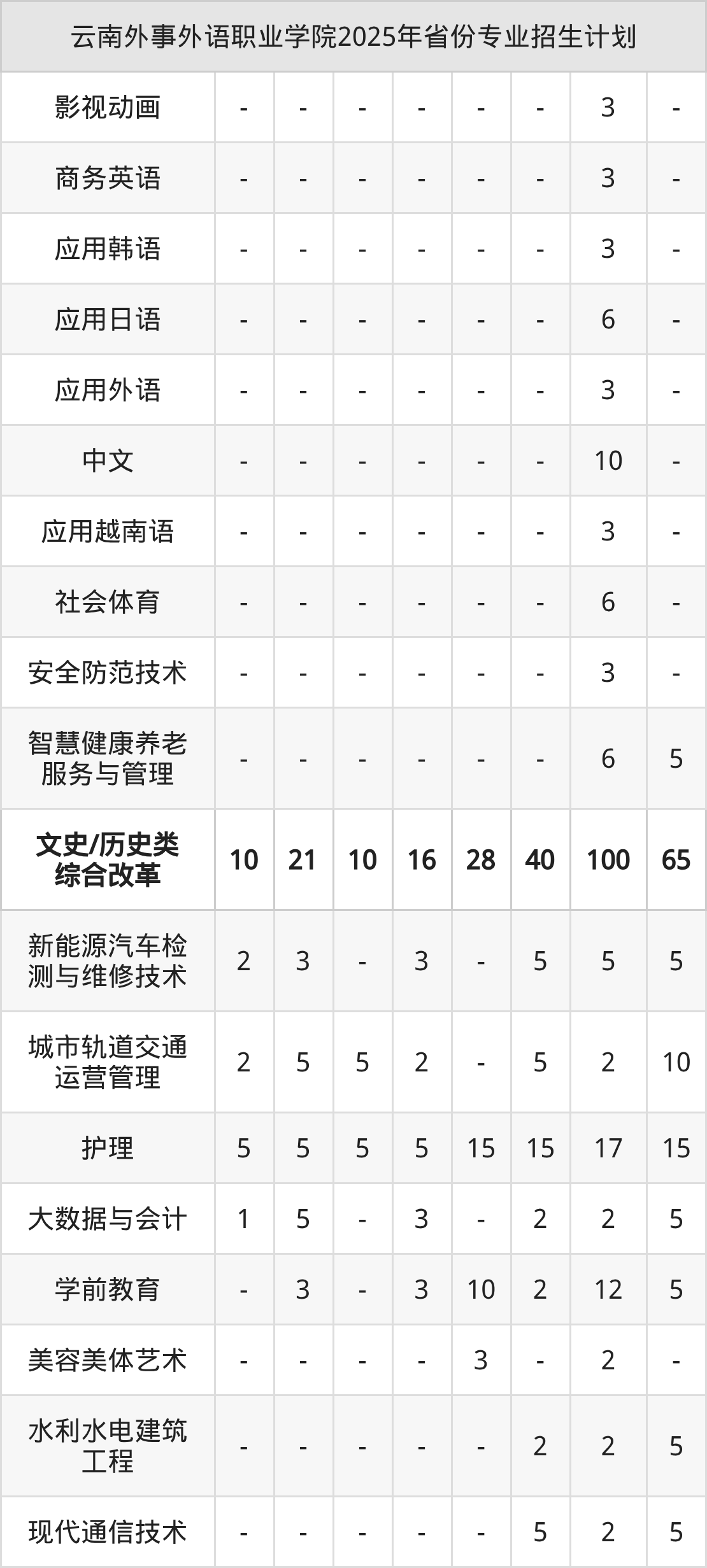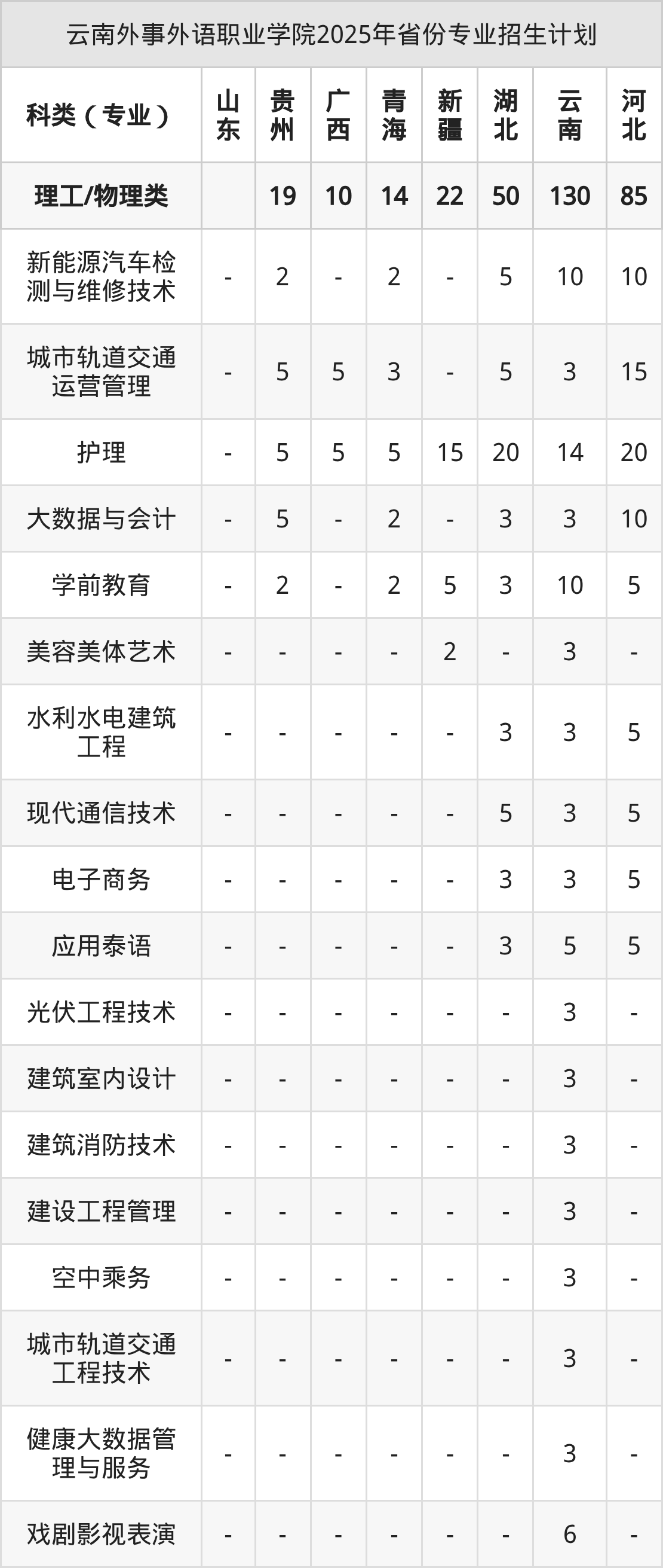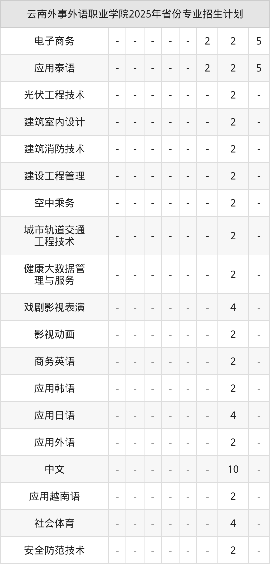 2026年云南外事外语职业学院专科招生计划待公布,下面附上2025年数据,暂供参考: