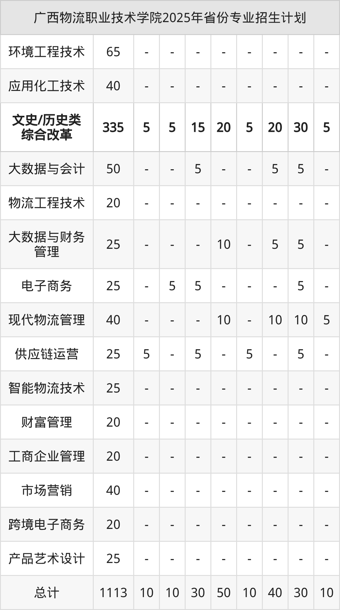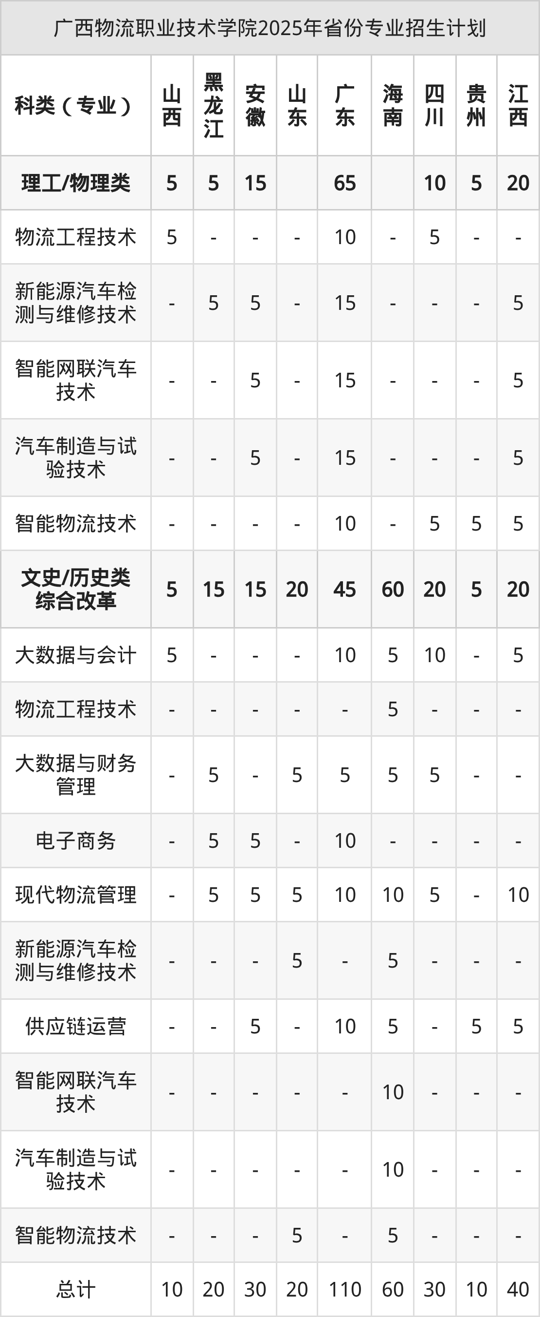 2026年广西物流职业技术学院专科招生计划待公布,下面附上2025年数据,暂供参考: