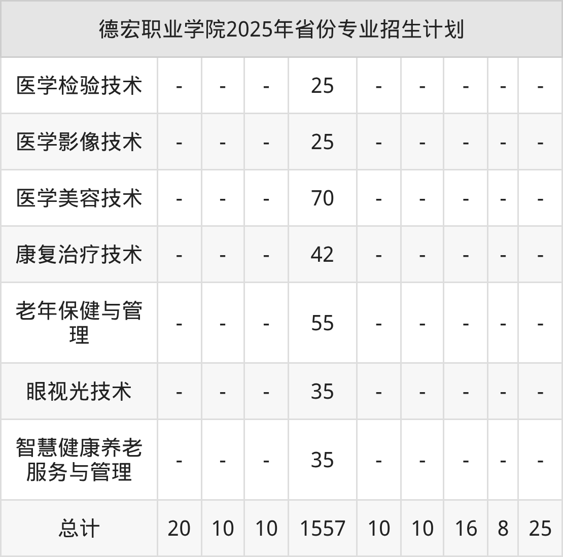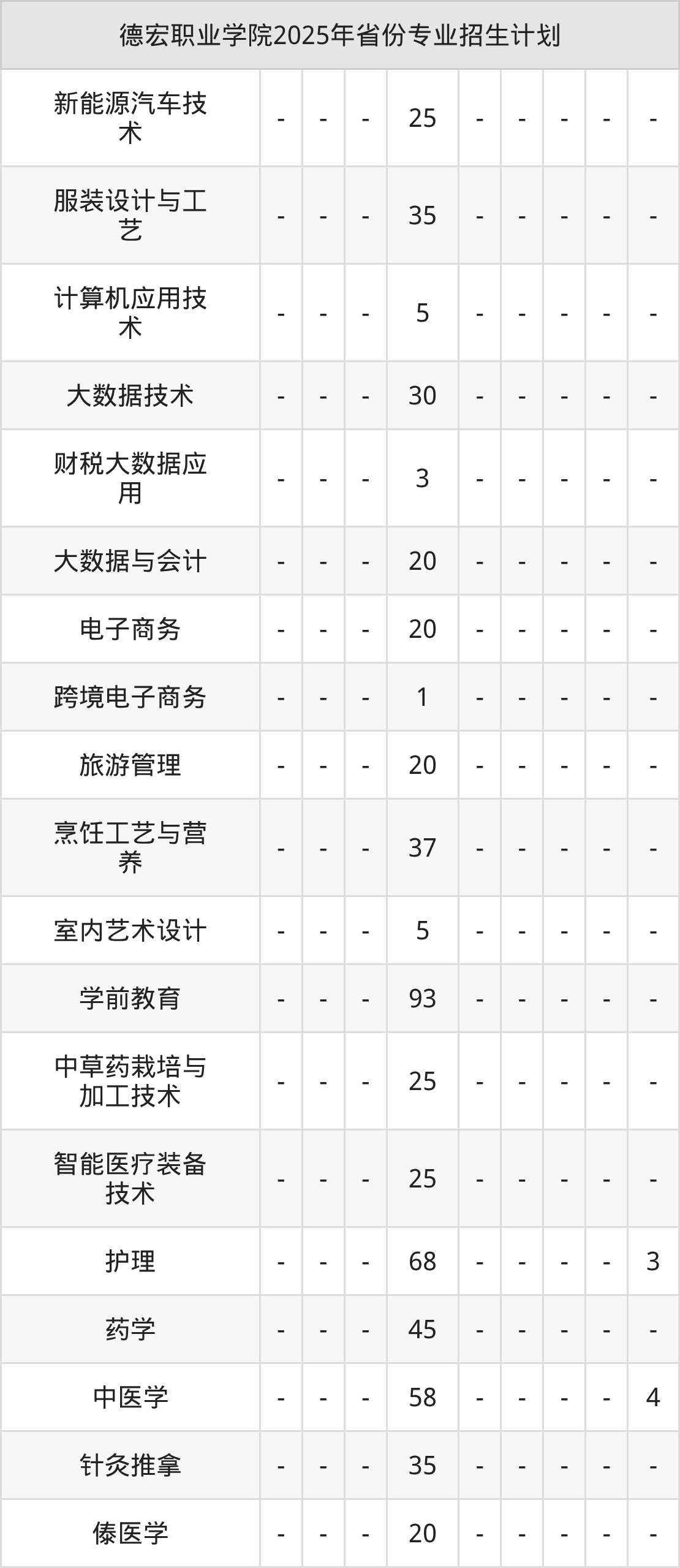 2026年德宏职业学院专科招生计划待公布,下面附上2025年数据,暂供参考: