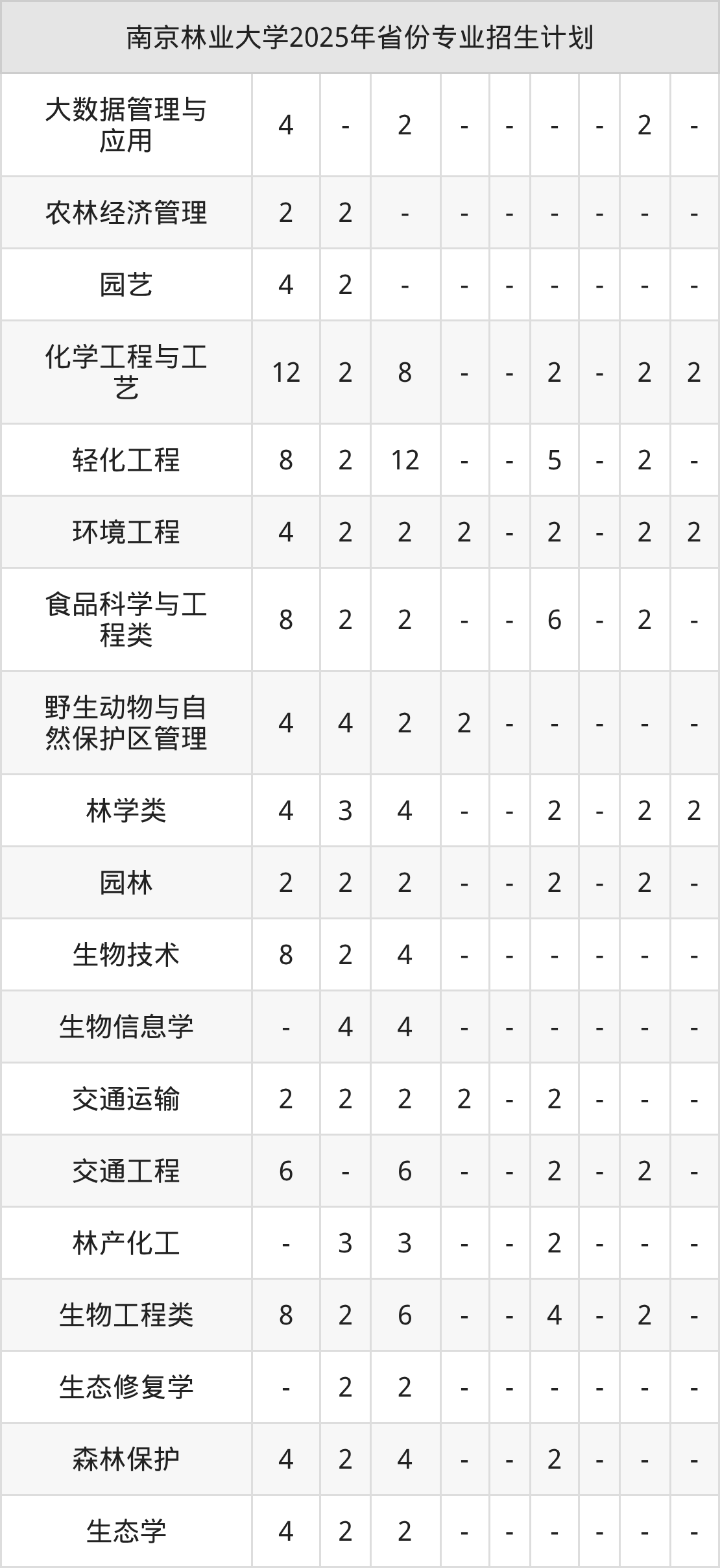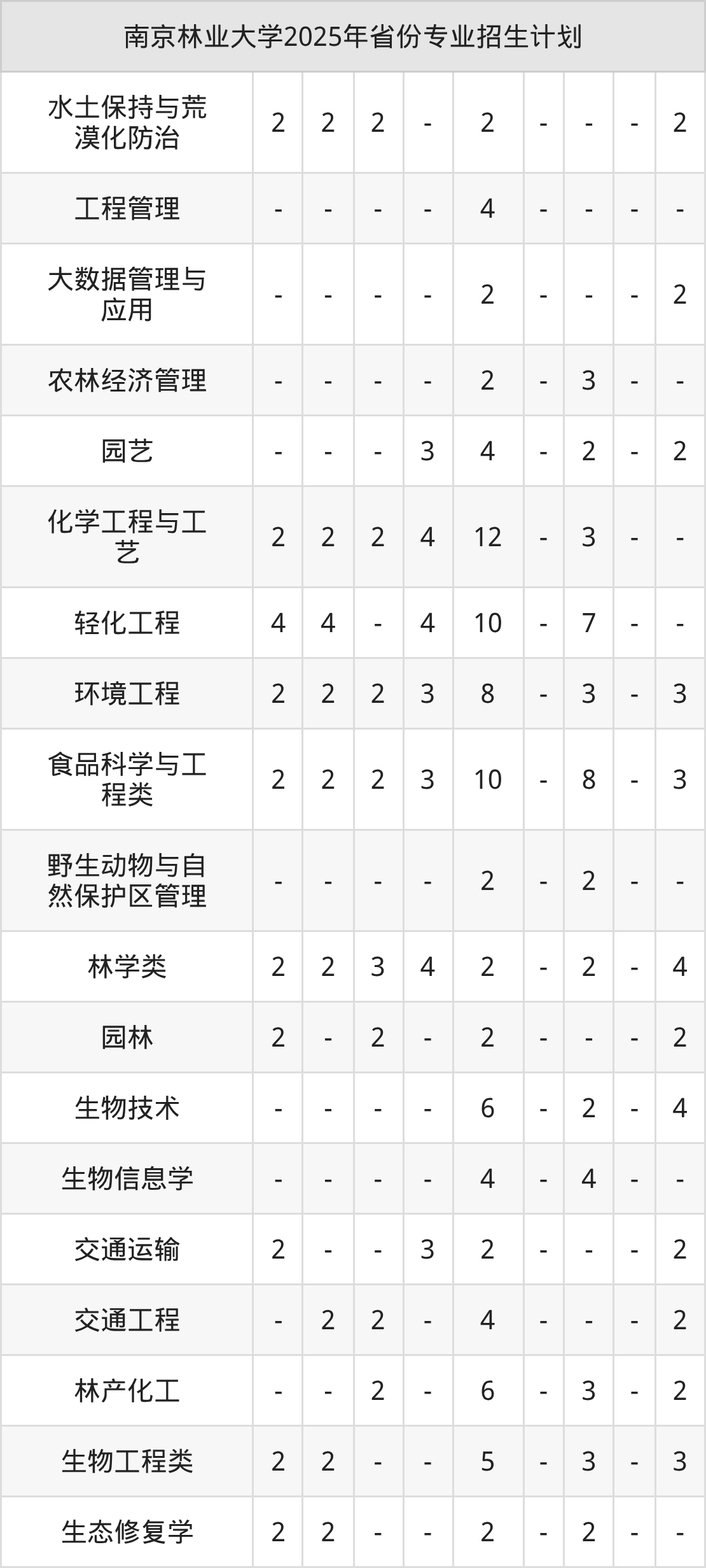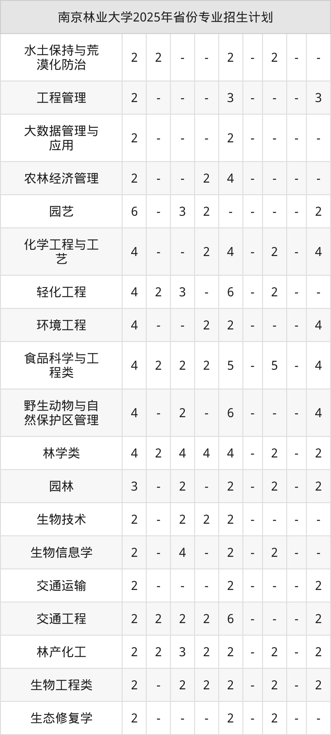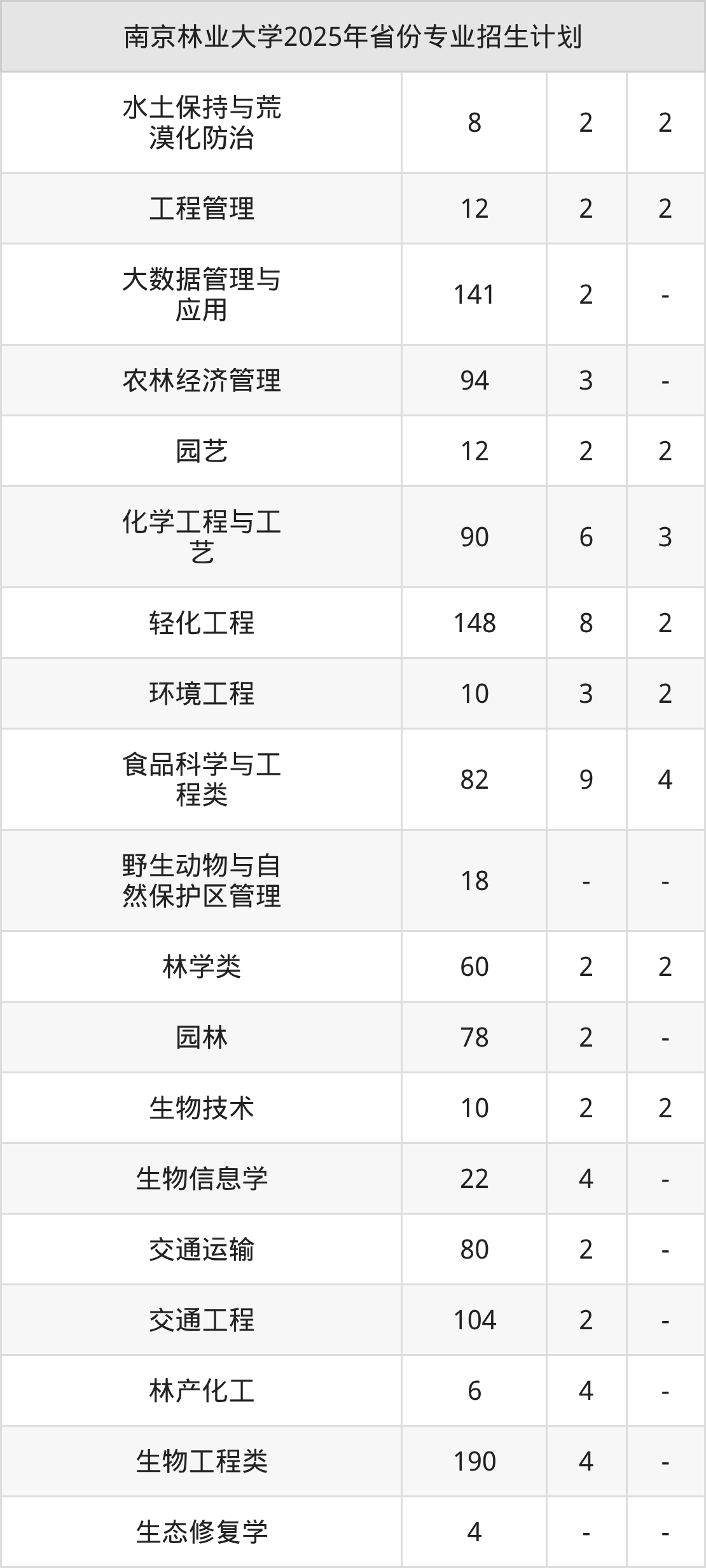 2026年南京林业大学本科招生计划待公布,下面附上2025年数据,暂供参考:
