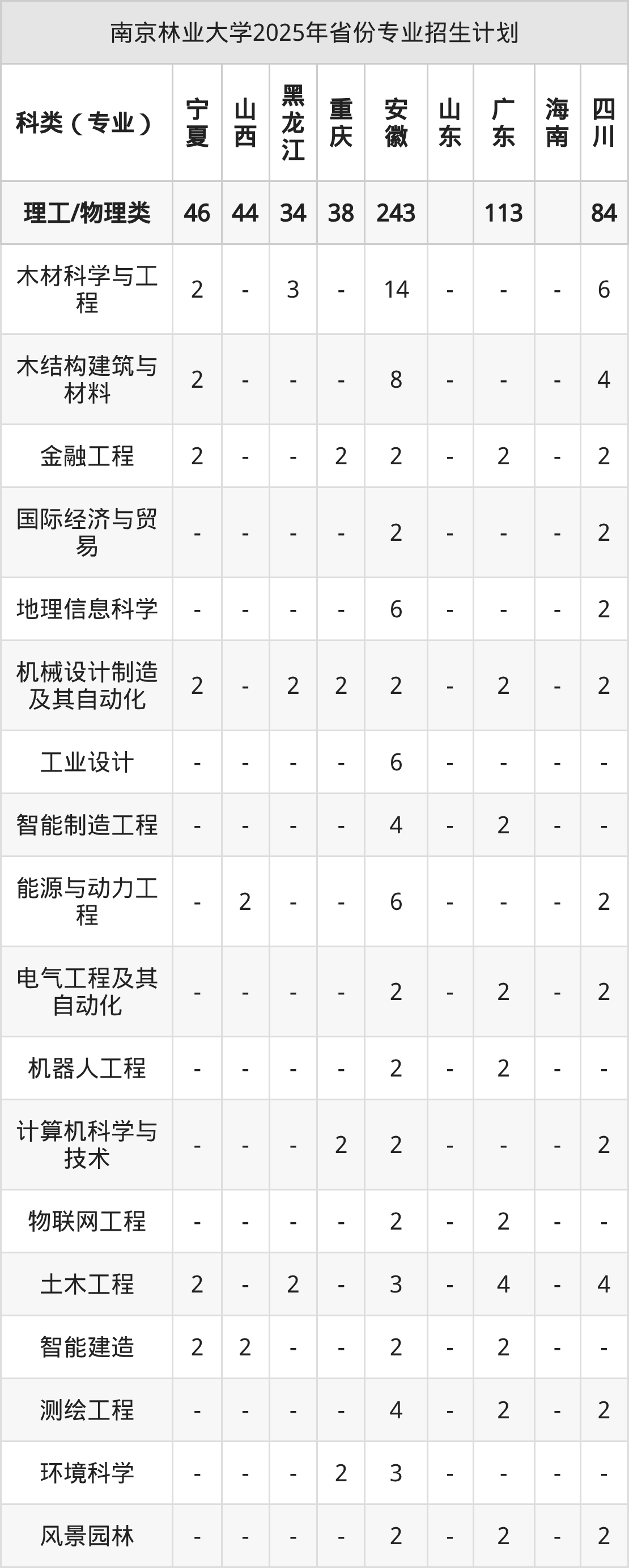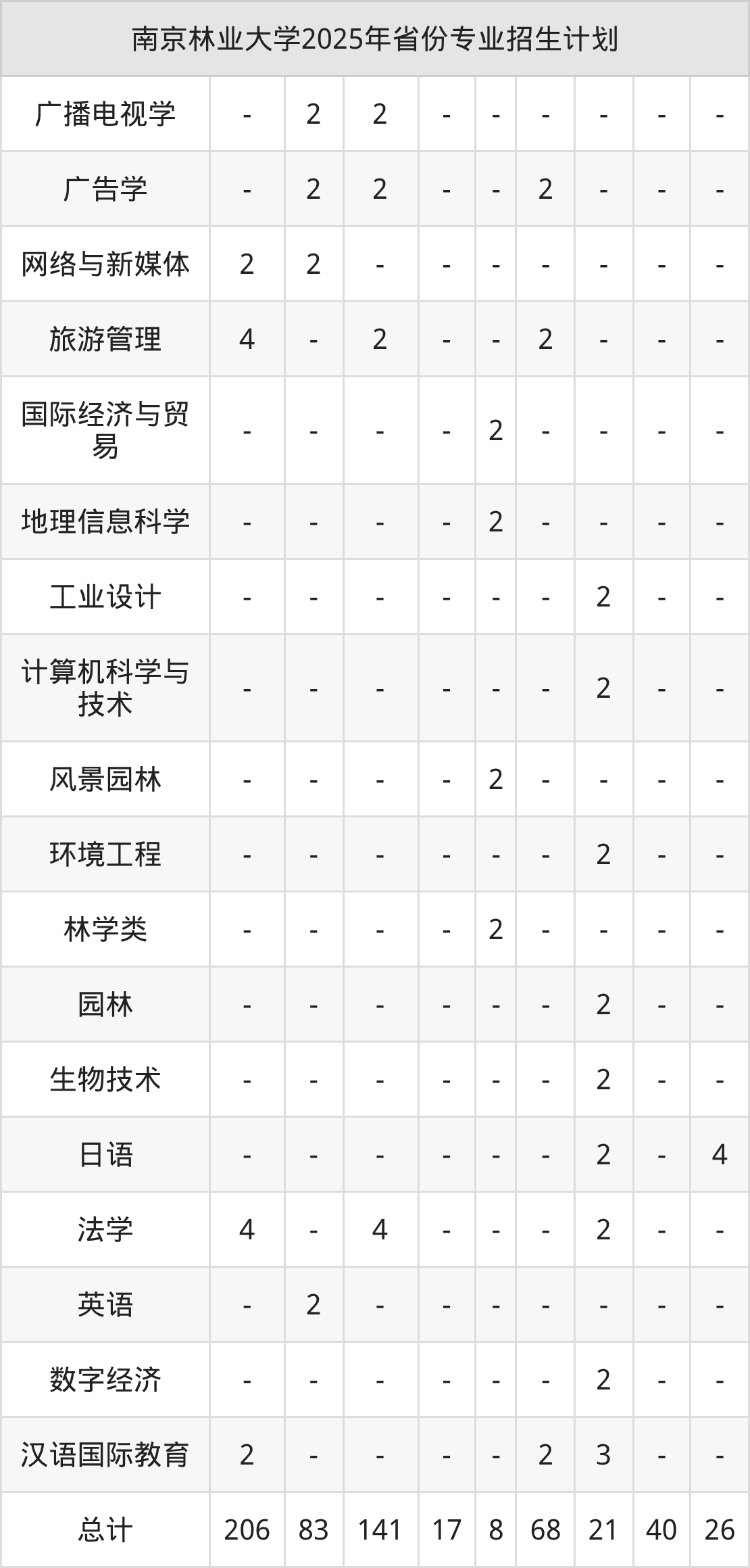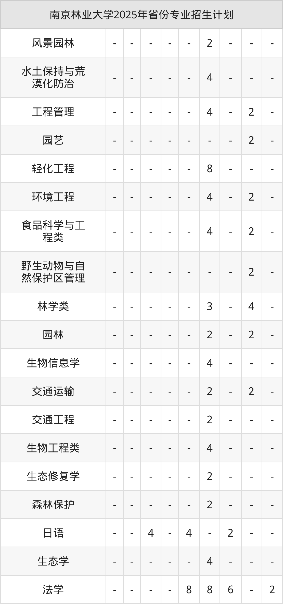 2026年南京林业大学本科招生计划待公布,下面附上2025年数据,暂供参考: