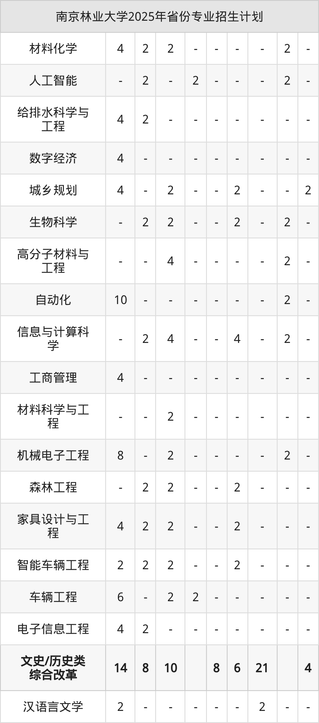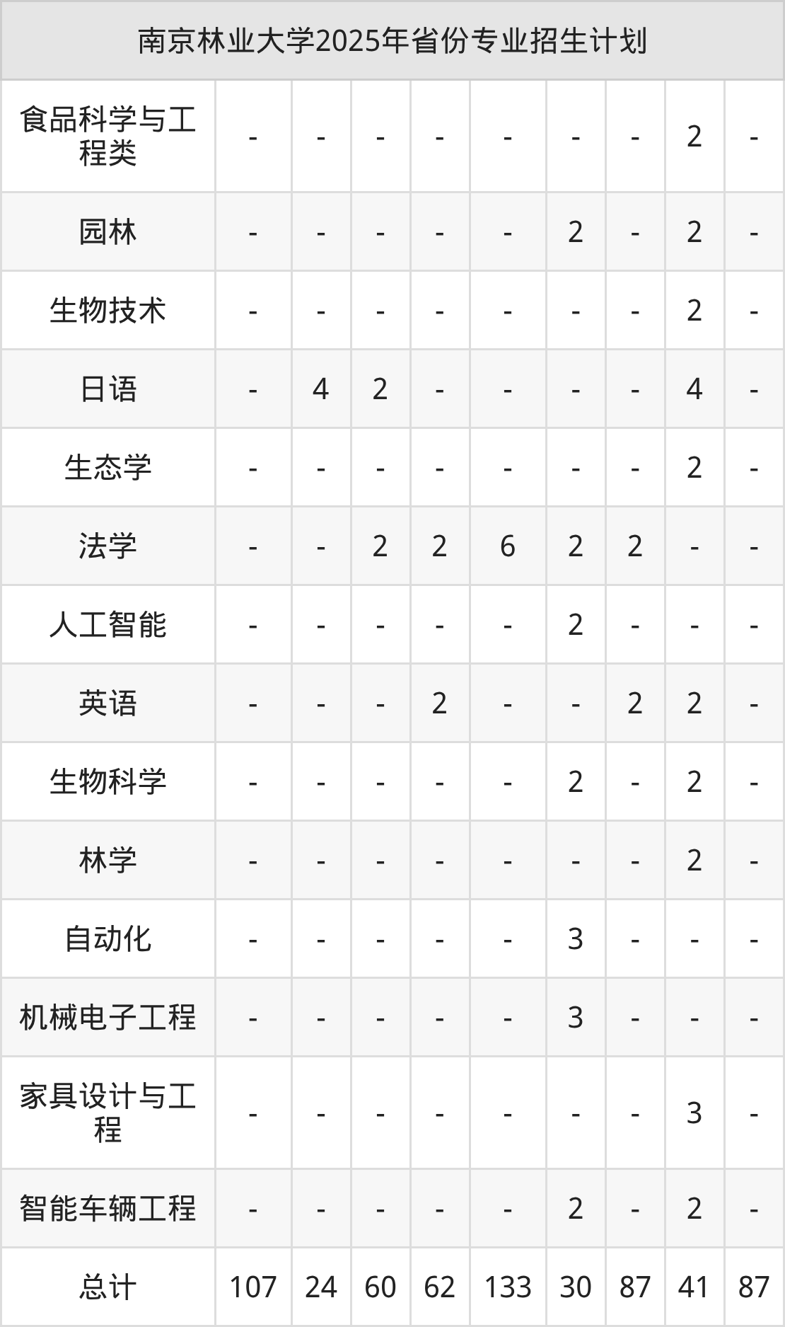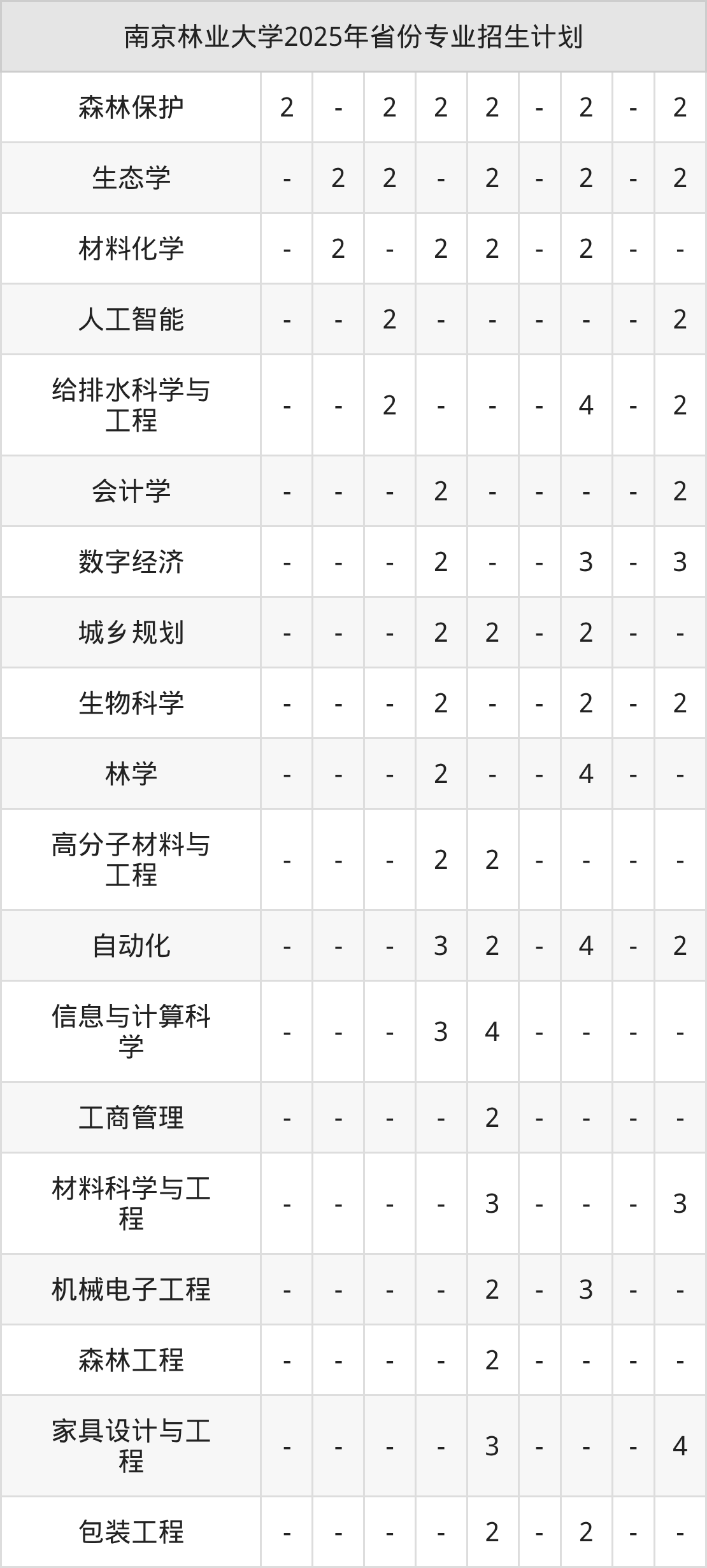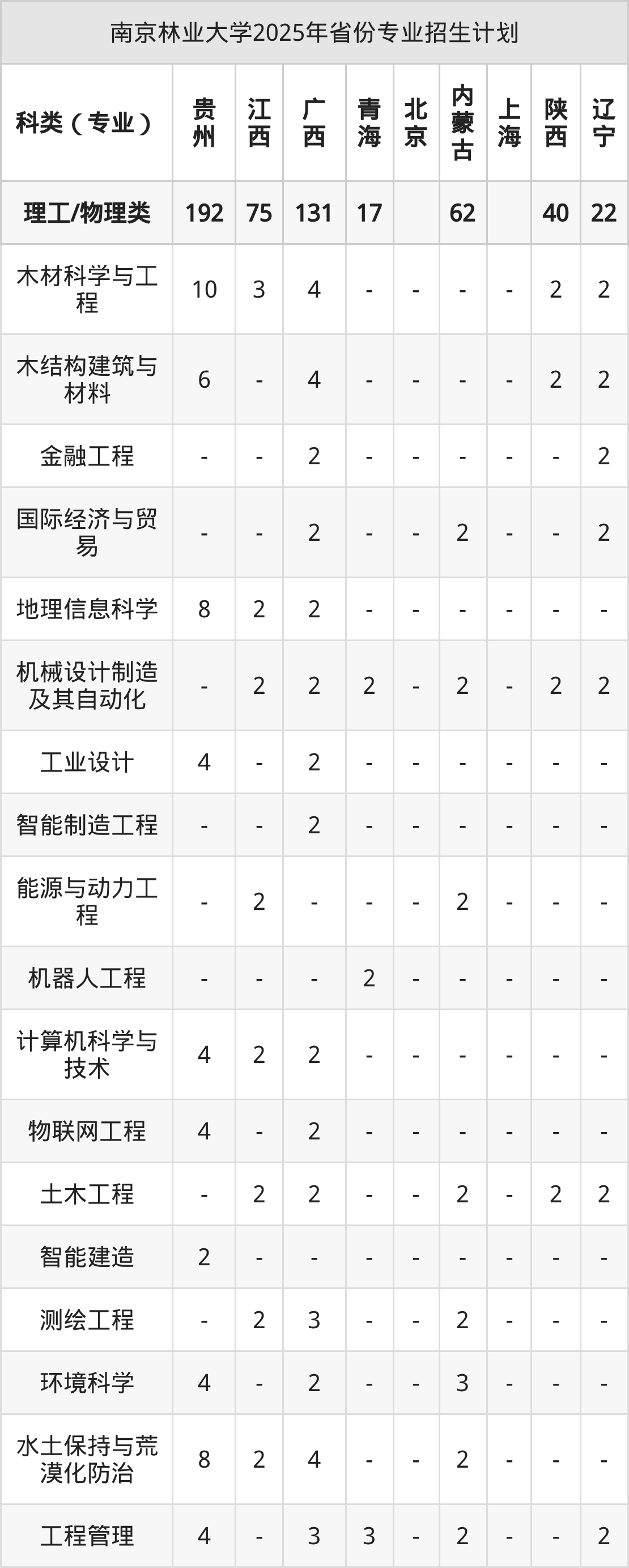2026年南京林业大学本科招生计划待公布,下面附上2025年数据,暂供参考: