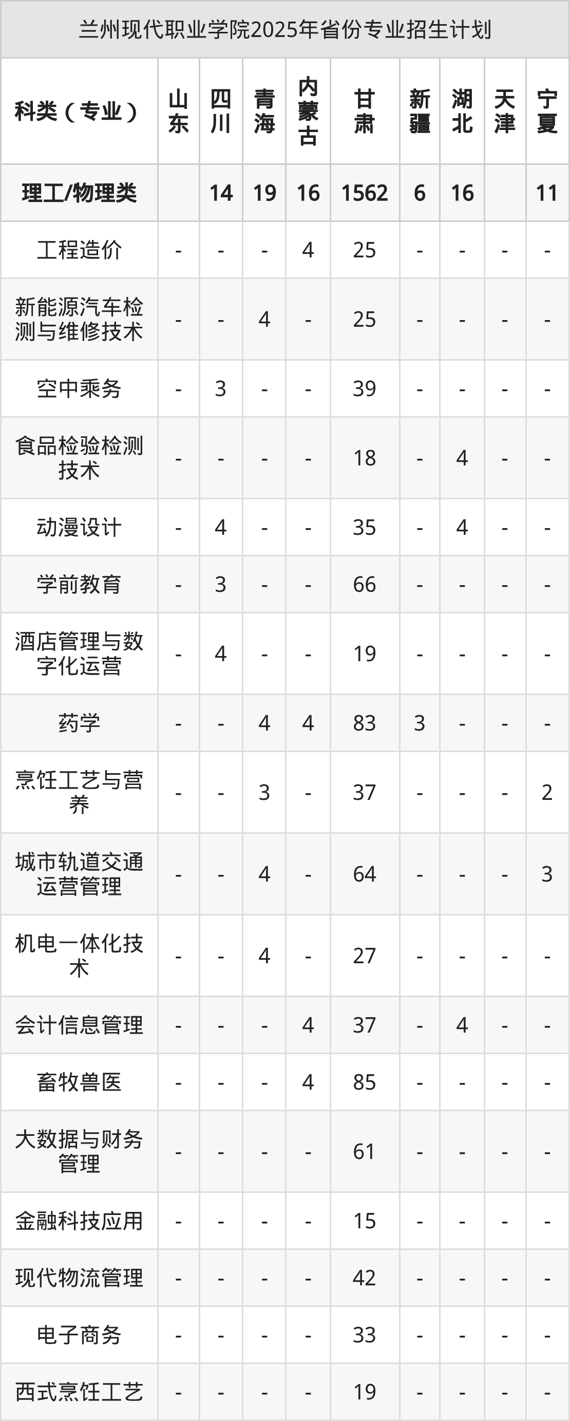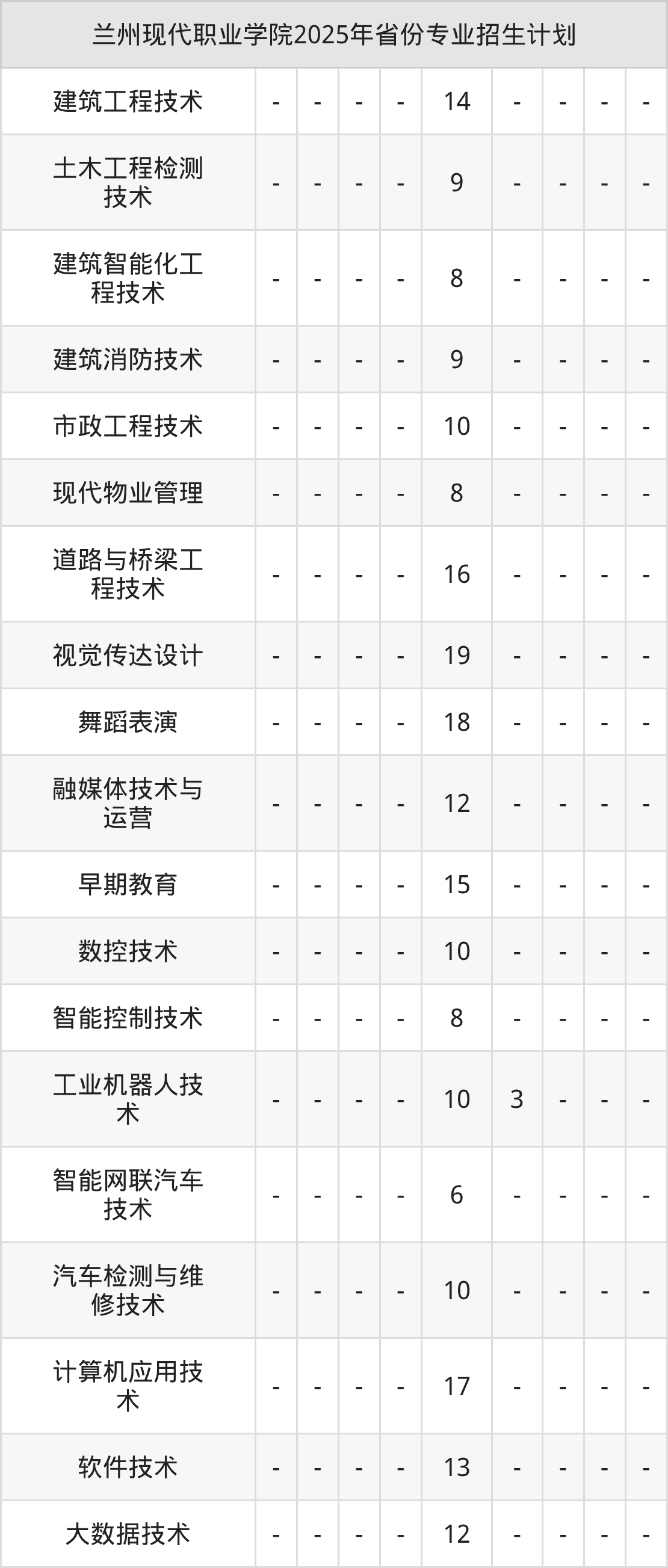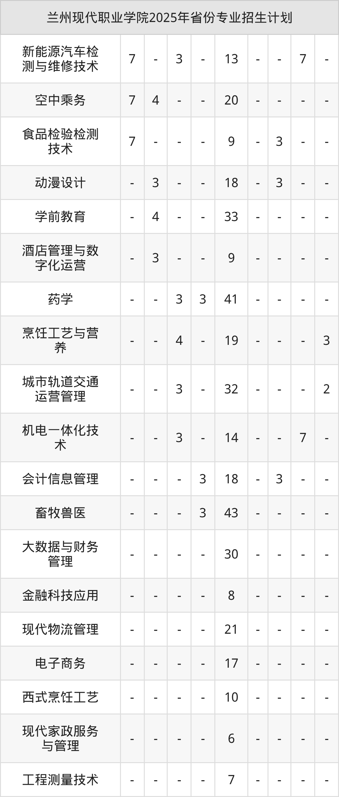 2026年兰州现代职业学院专科招生计划待公布,下面附上2025年数据,暂供参考: