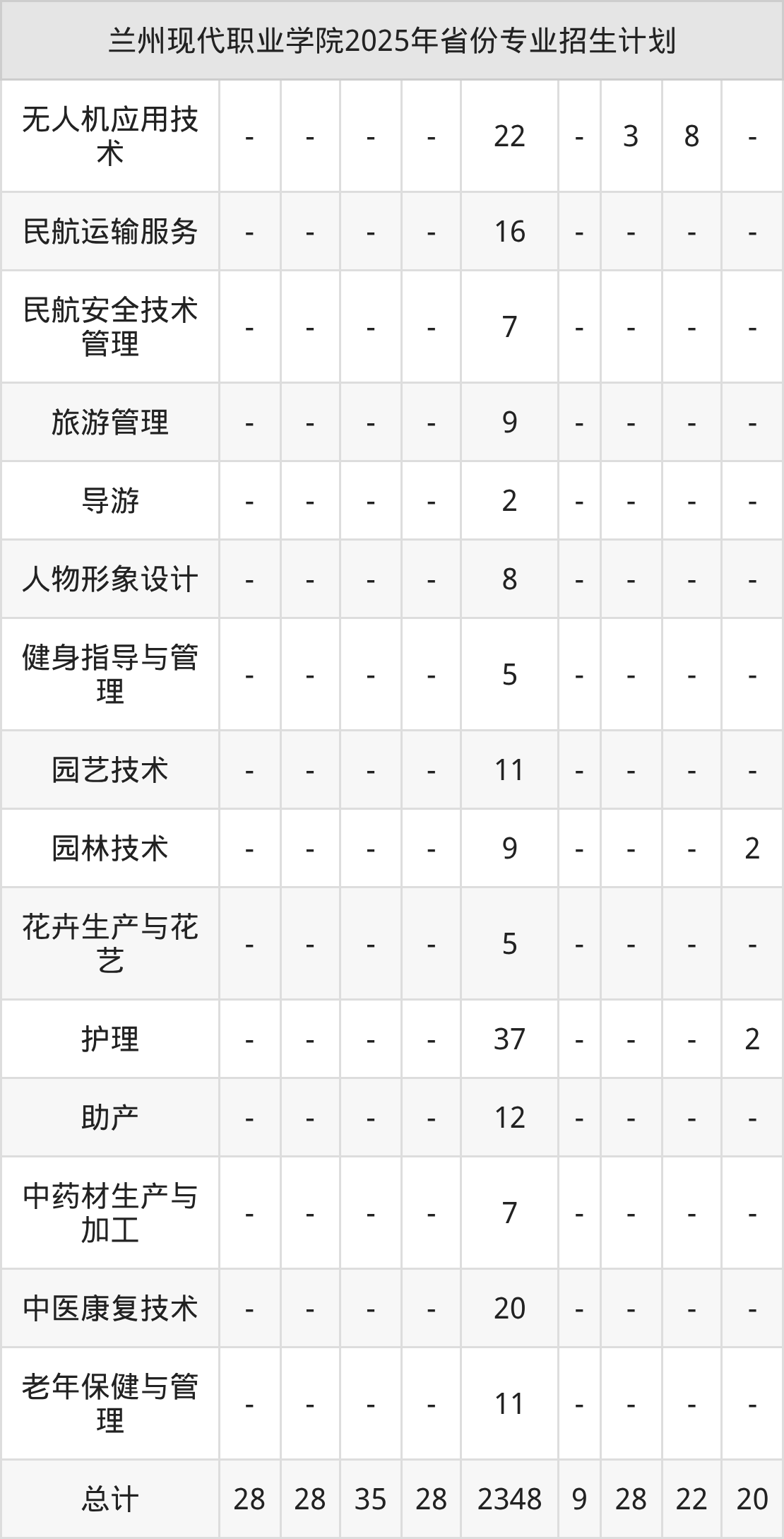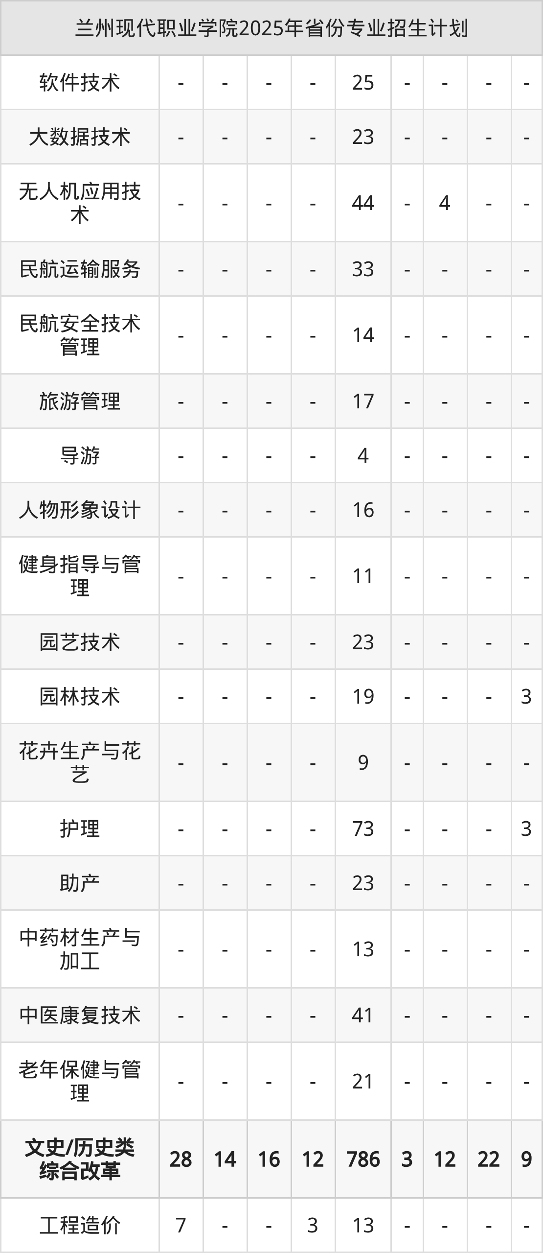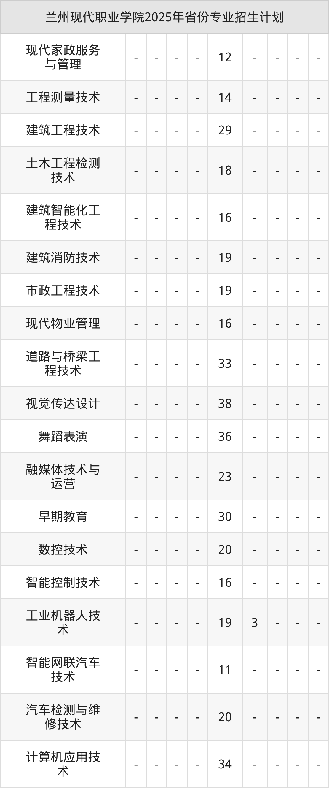 2026年兰州现代职业学院专科招生计划待公布,下面附上2025年数据,暂供参考: