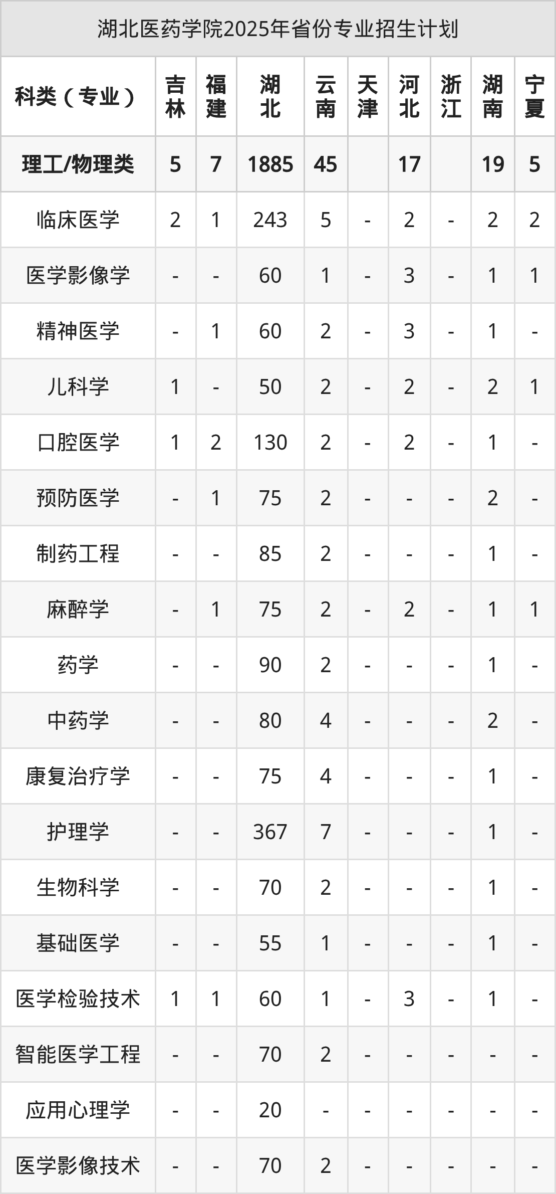 2026年湖北医药学院本科招生计划待公布,下面附上2025年数据,暂供参考: