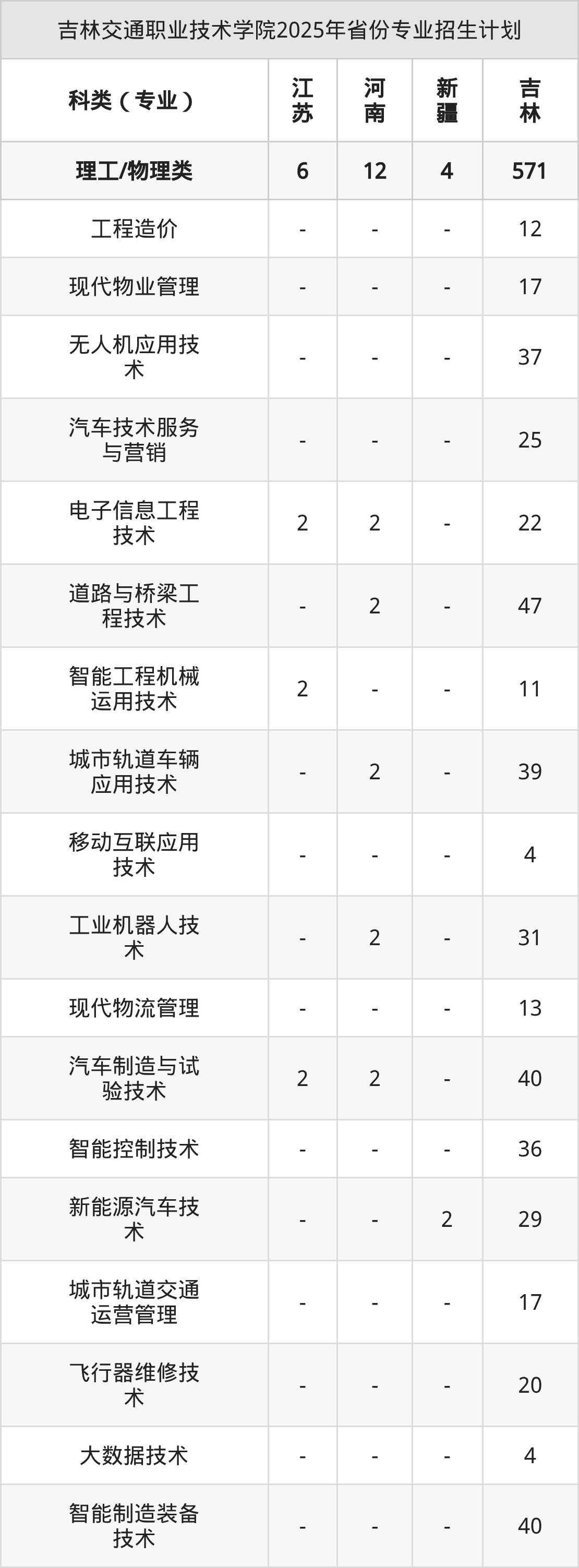 2026年吉林交通职业技术学院专科招生计划待公布,下面附上2025年数据,暂供参考: