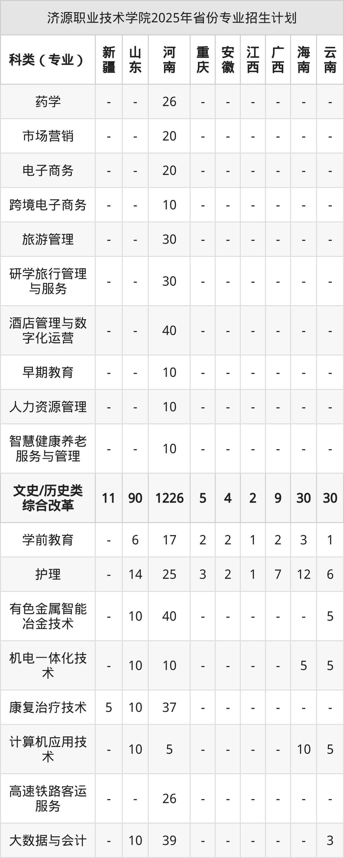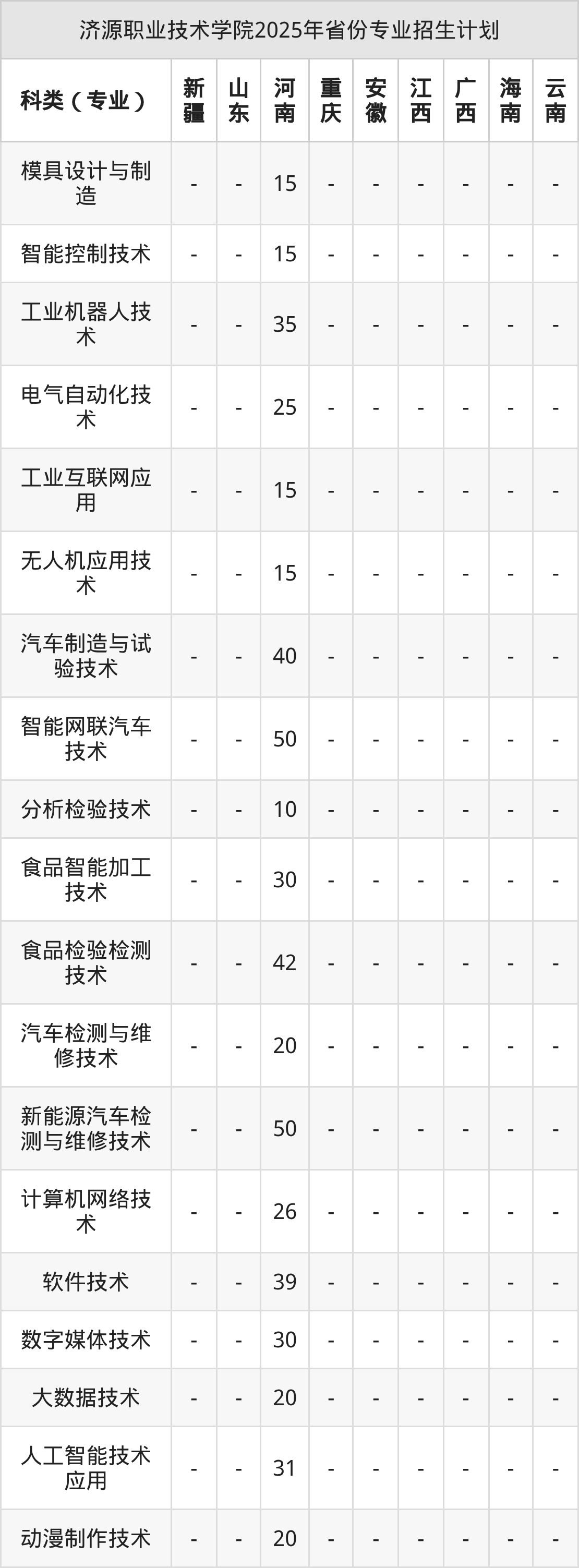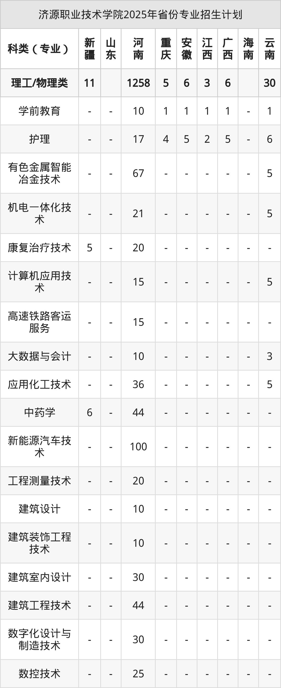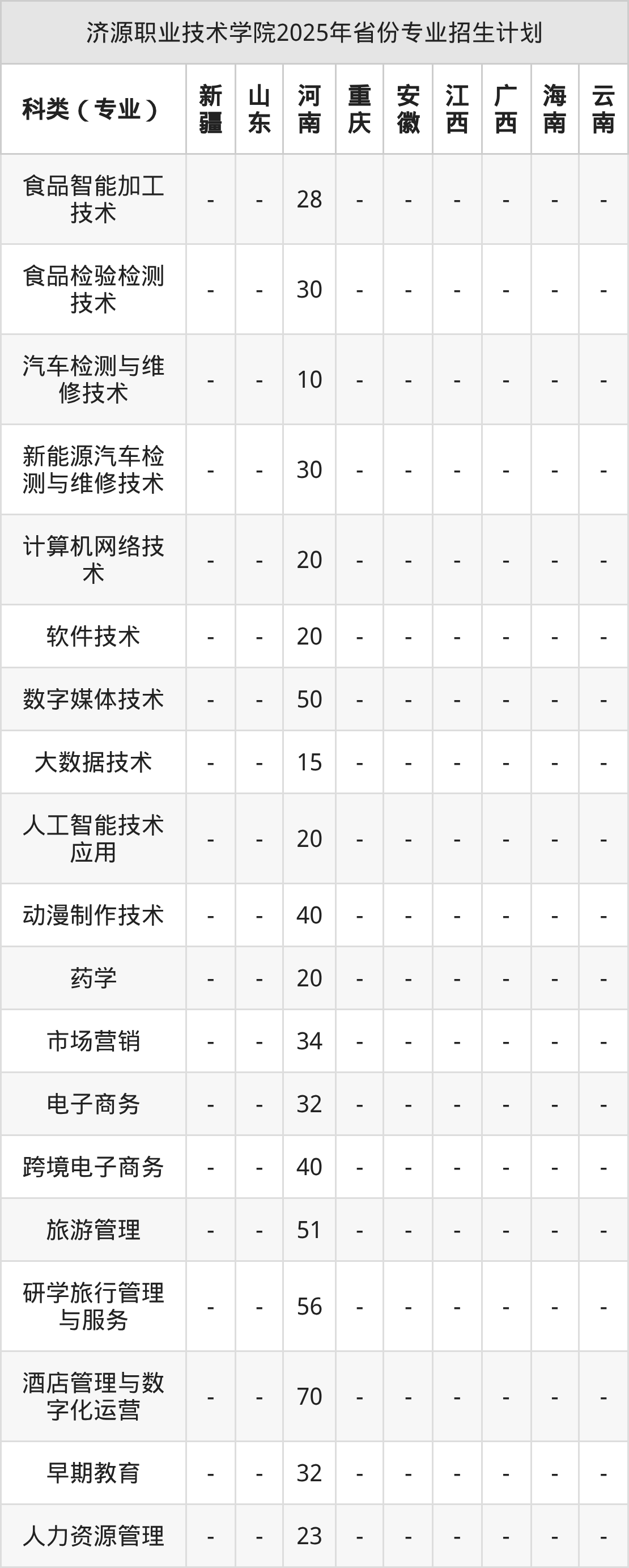 2026年济源职业技术学院专科招生计划待公布,下面附上2025年数据,暂供参考: