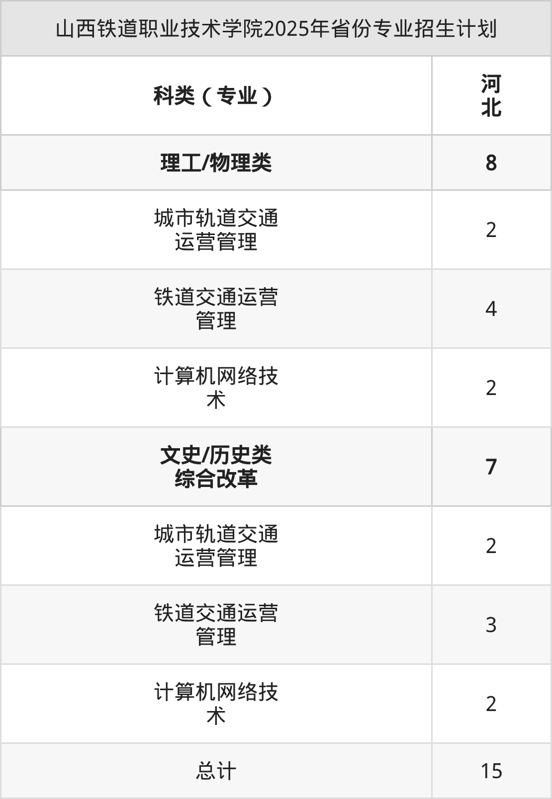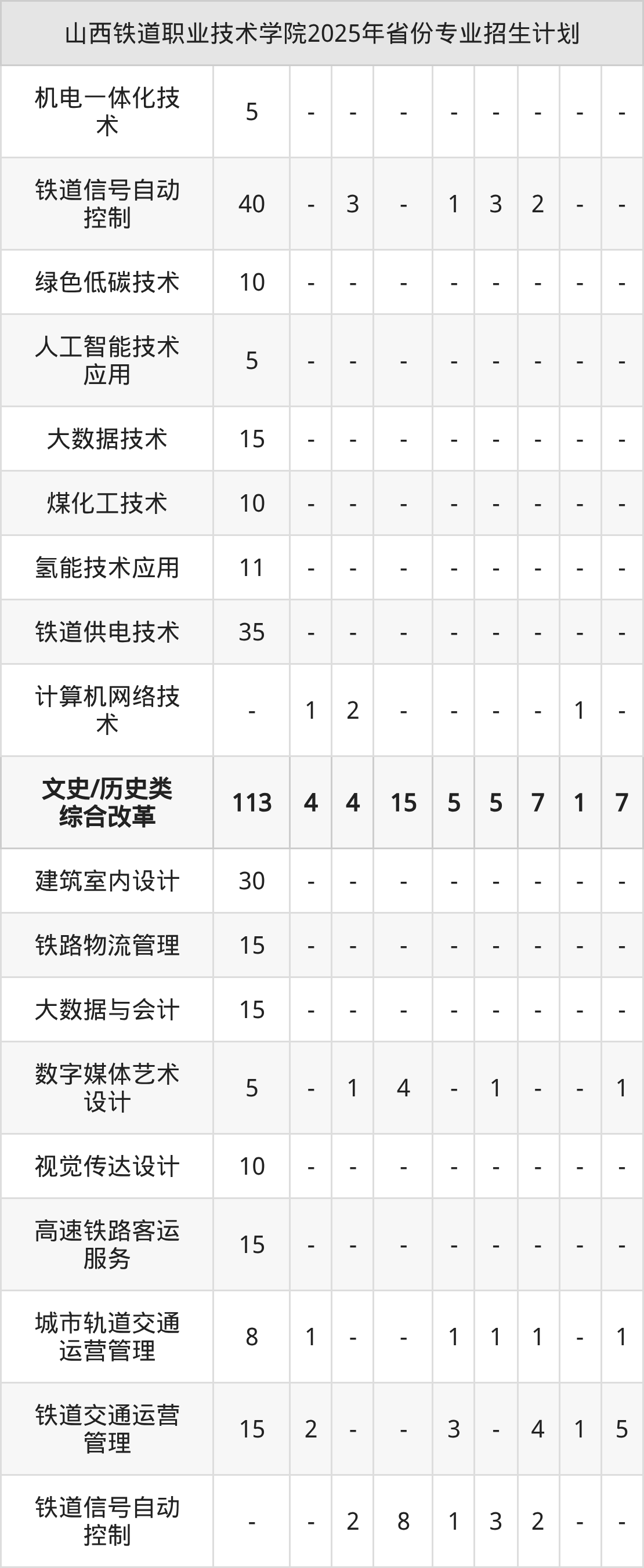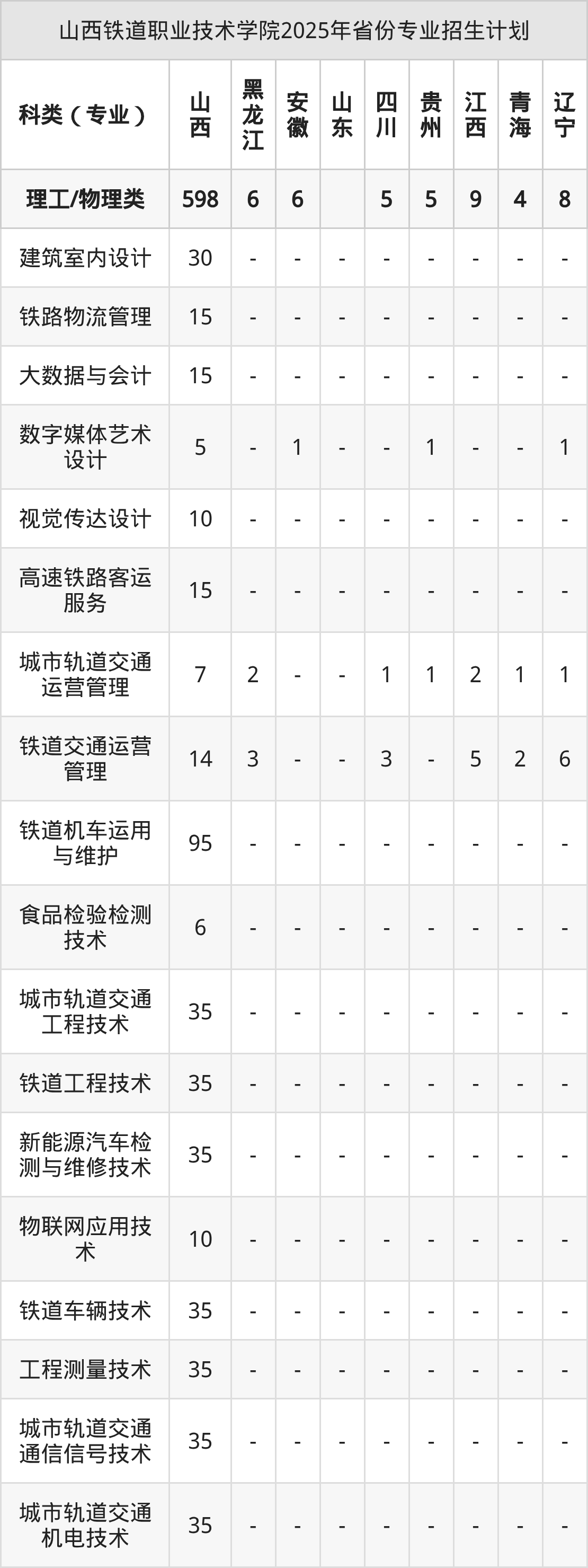 2026年山西铁道职业技术学院专科招生计划待公布,下面附上2025年数据,暂供参考: