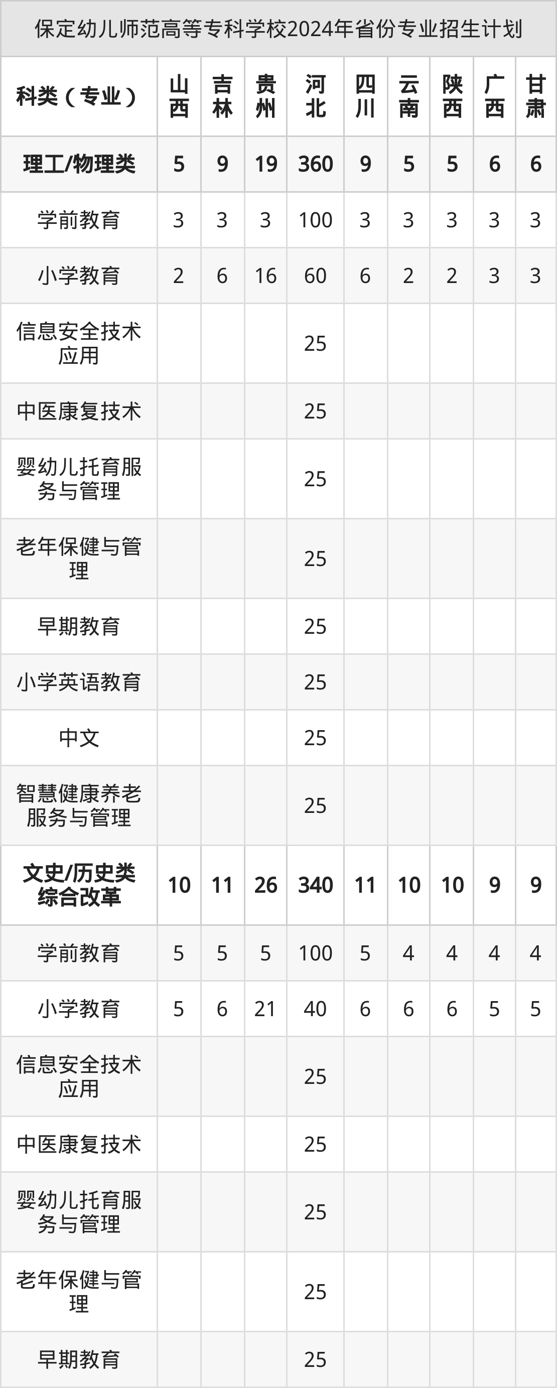 2025年保定幼儿师范高等专科学校专科招生计划待公布,下面附上2024年数据,暂供参考: