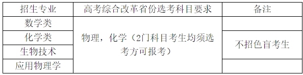 招生专业:数学类、化学类、生物技术类、应用物理学。