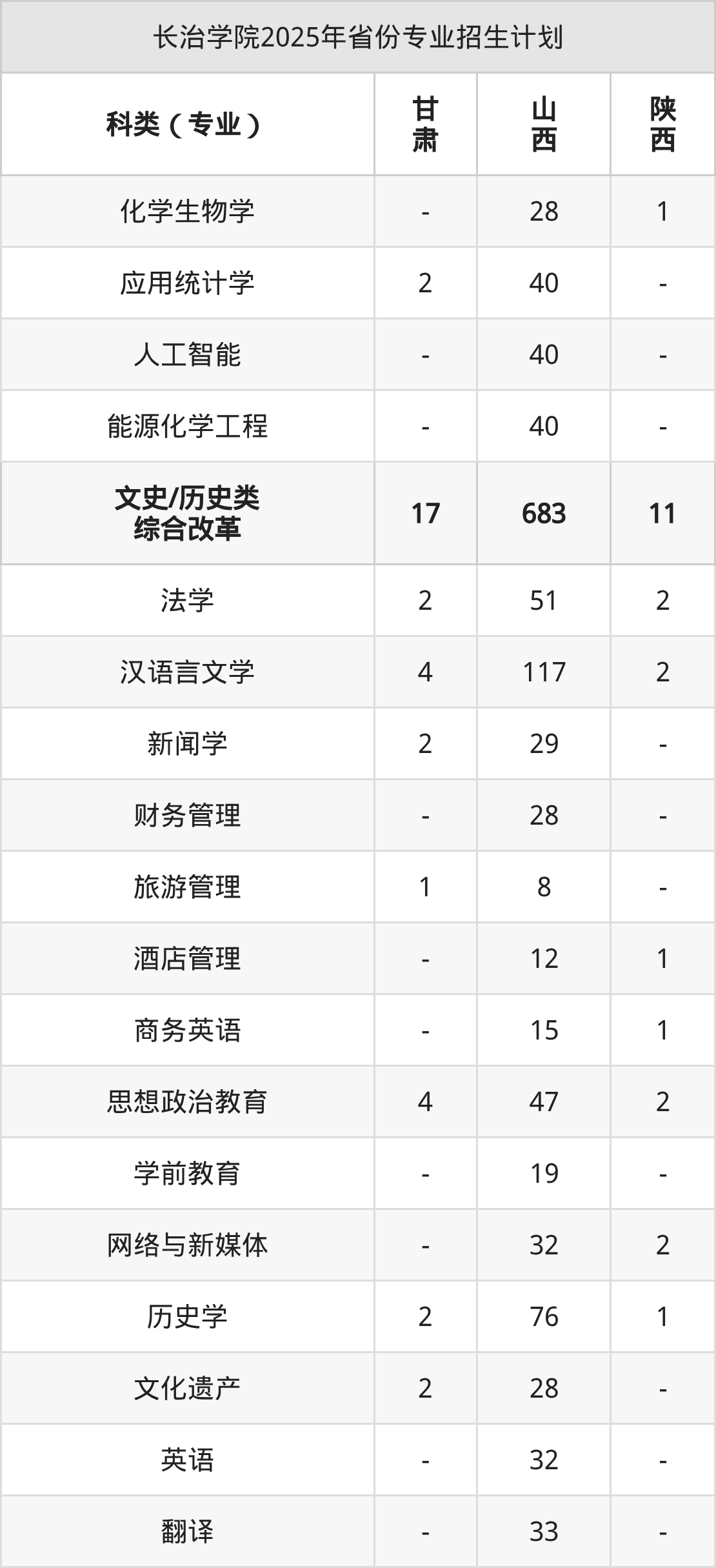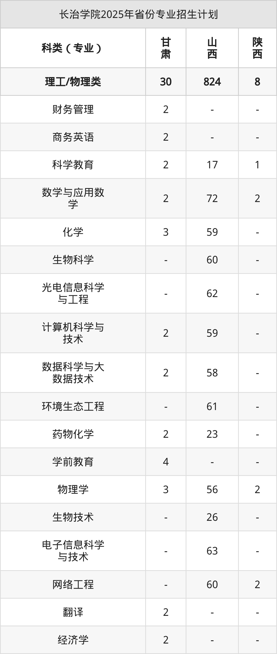 2026年长治学院本科招生计划待公布,下面附上2025年数据,暂供参考: