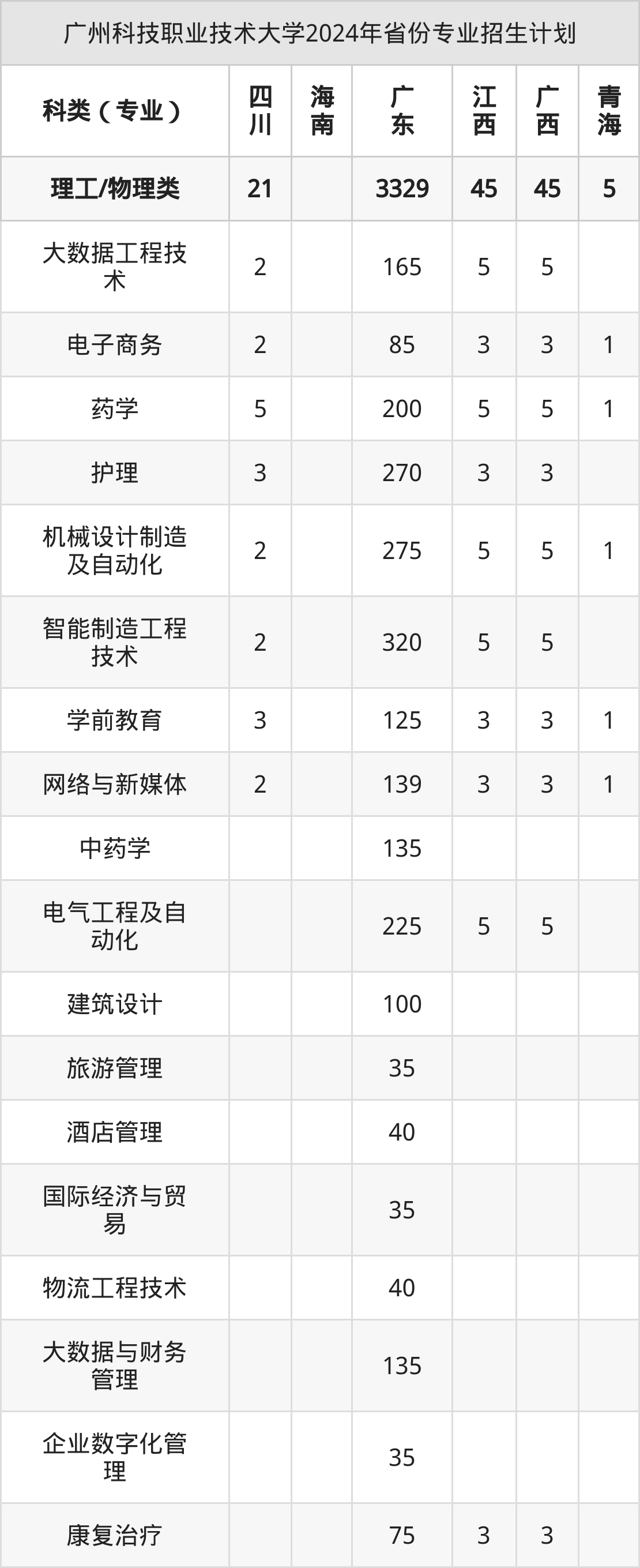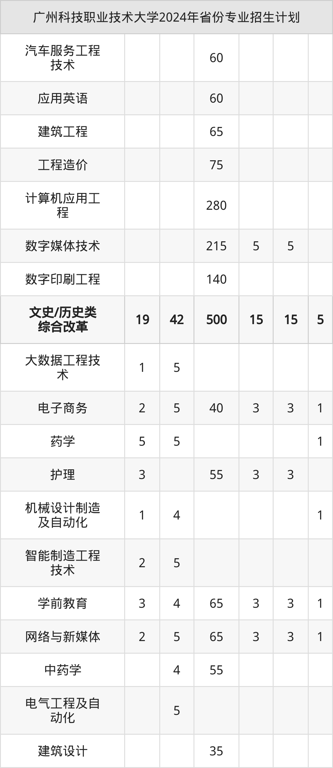 2025年广州科技职业技术大学本科招生计划待公布,下面附上2024年数据,暂供参考: