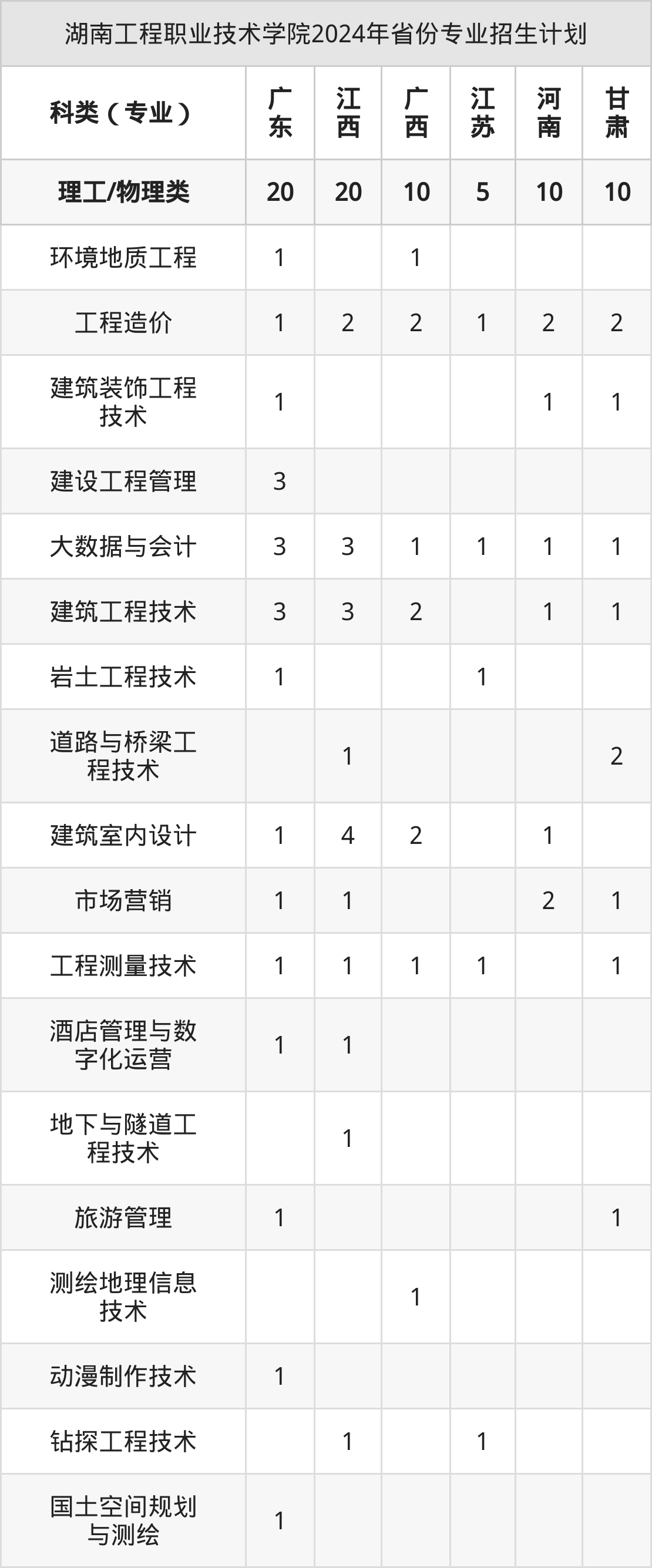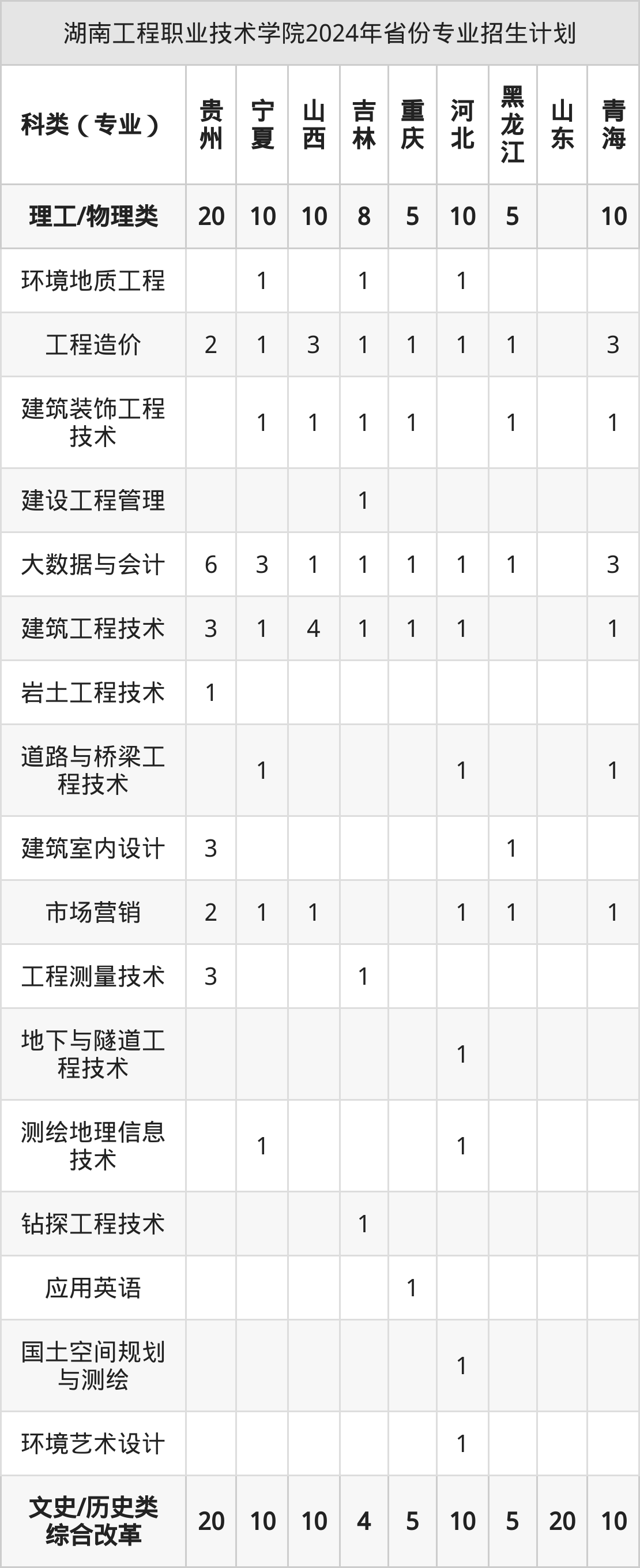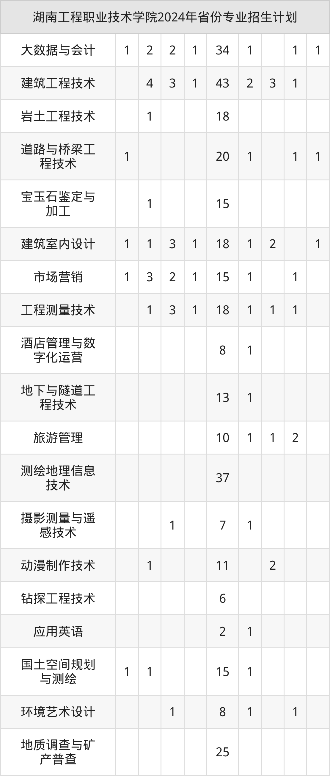 2025年湖南工程职业技术学院专科招生计划待公布,下面附上2024年数据,暂供参考: