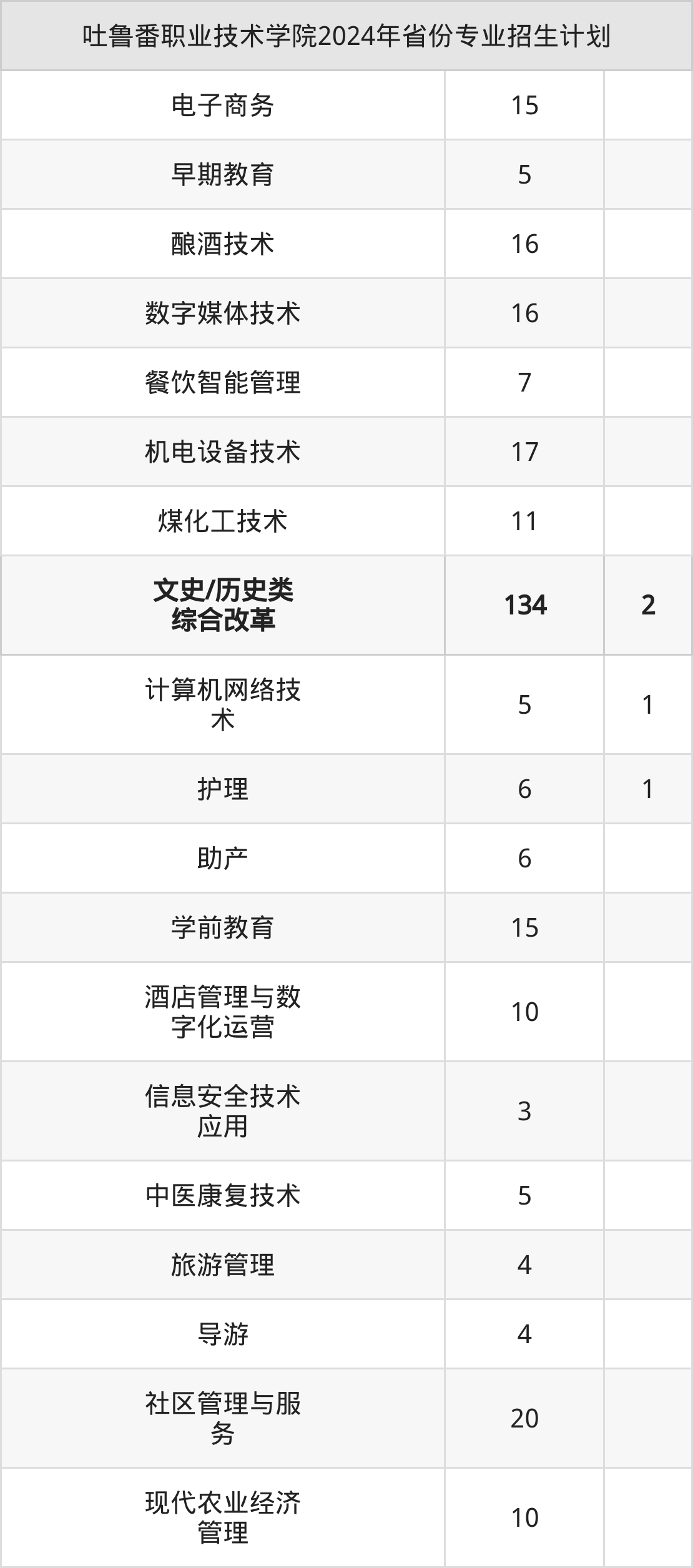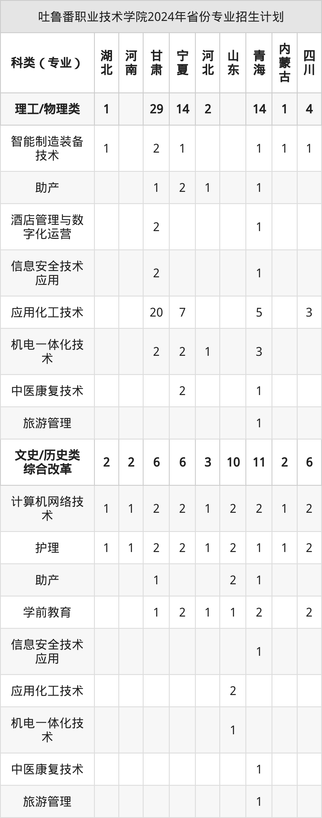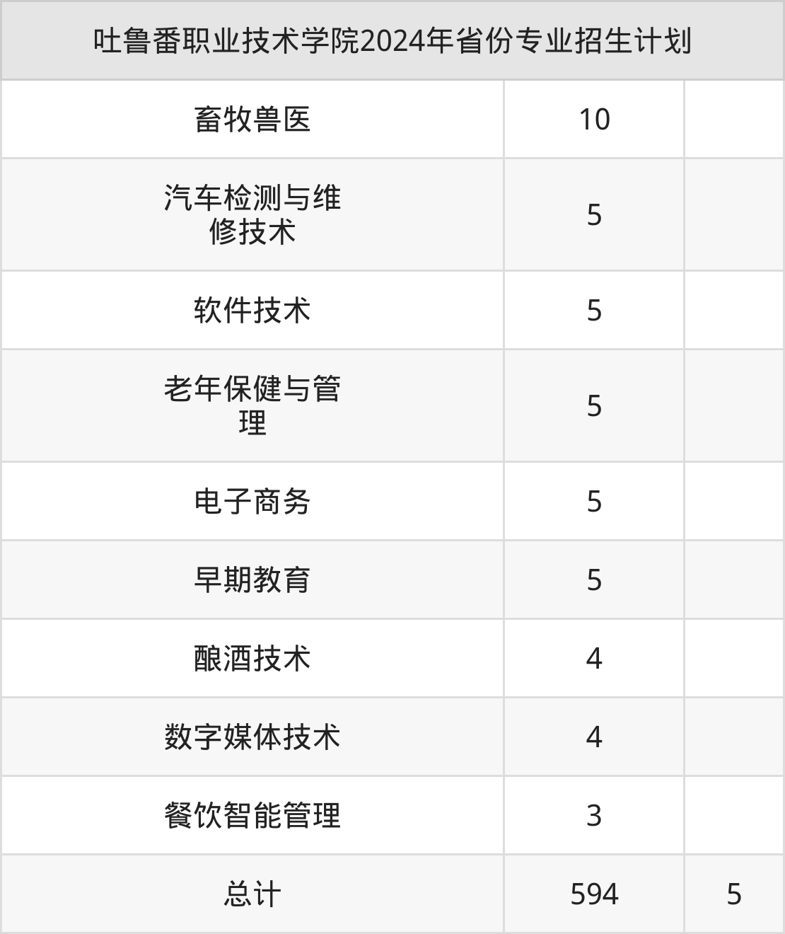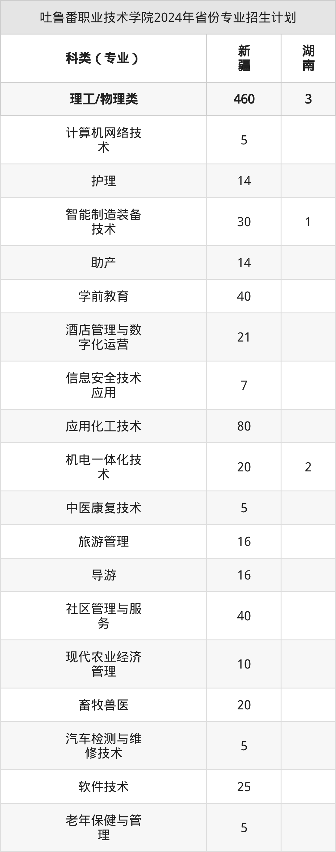 2025年吐鲁番职业技术学院专科招生计划待公布,下面附上2024年数据,暂供参考: