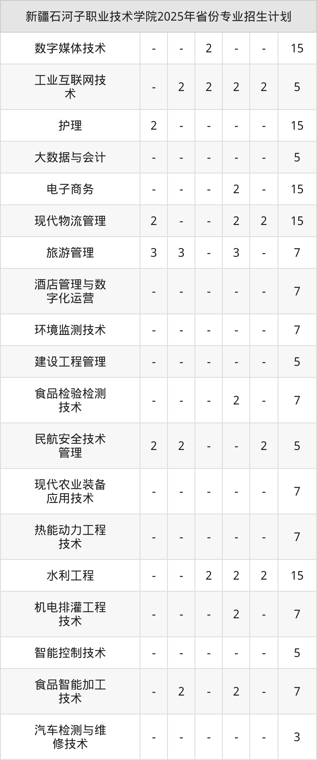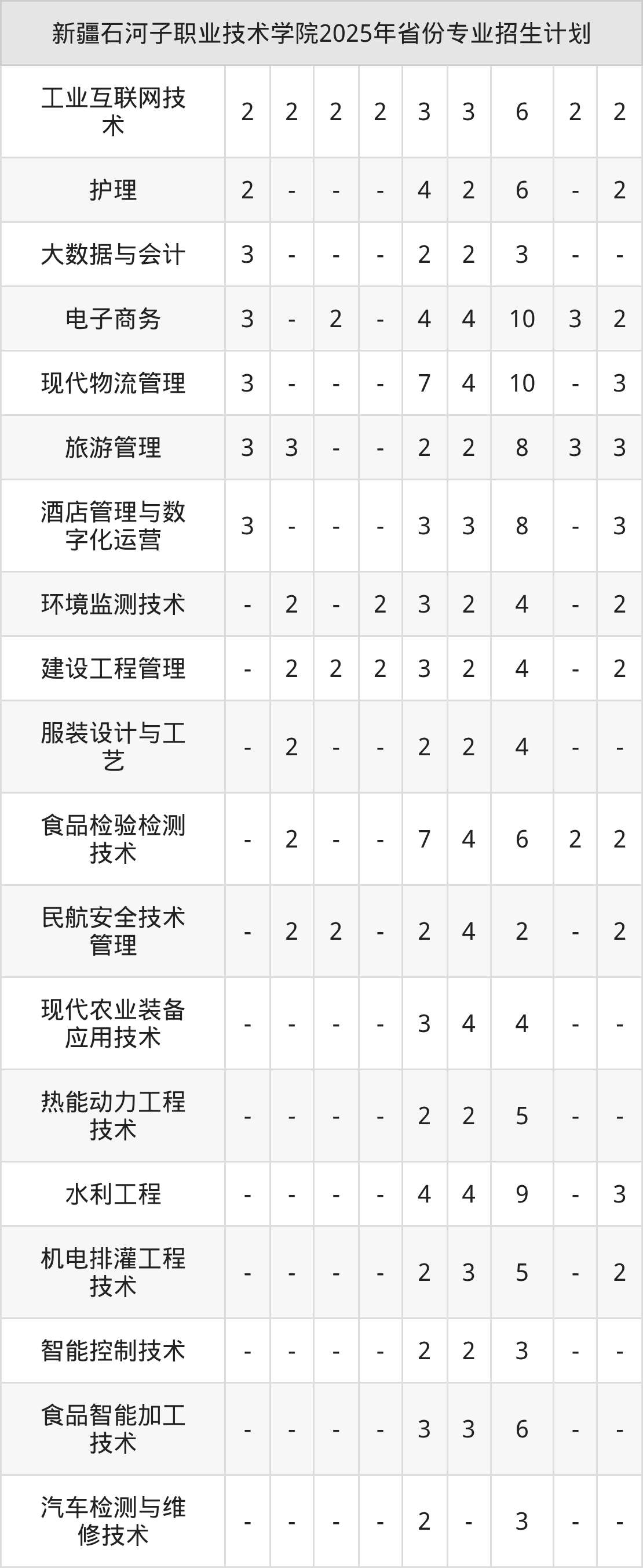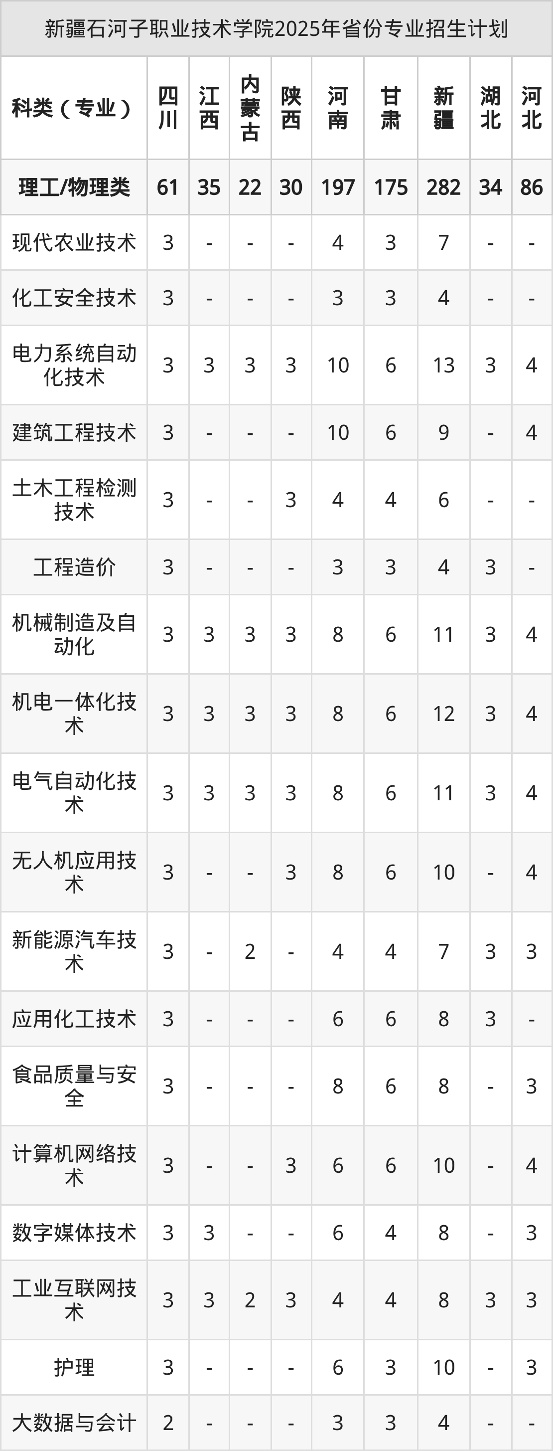 2026年新疆石河子职业技术学院专科招生计划待公布,下面附上2025年数据,暂供参考: