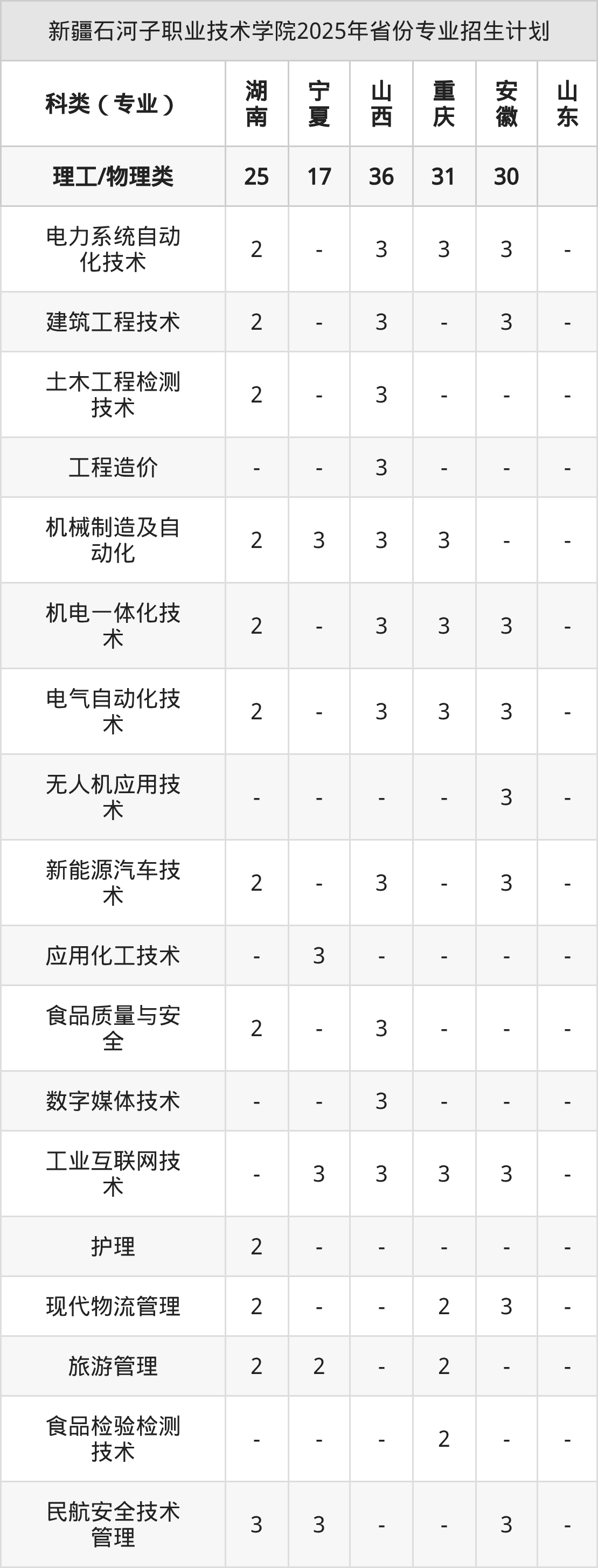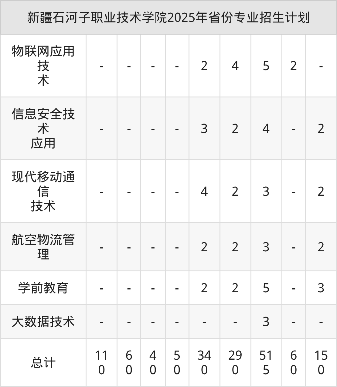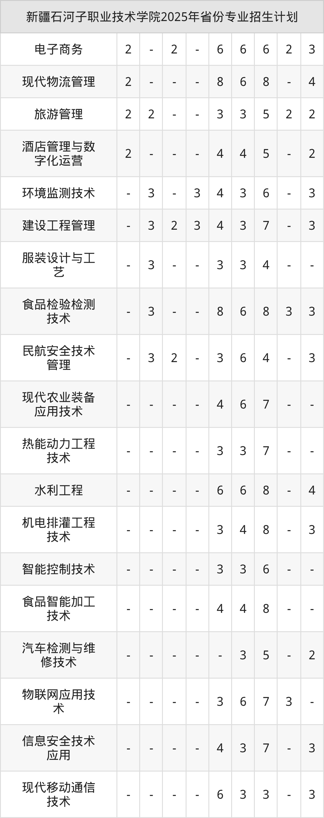 2026年新疆石河子职业技术学院专科招生计划待公布,下面附上2025年数据,暂供参考: