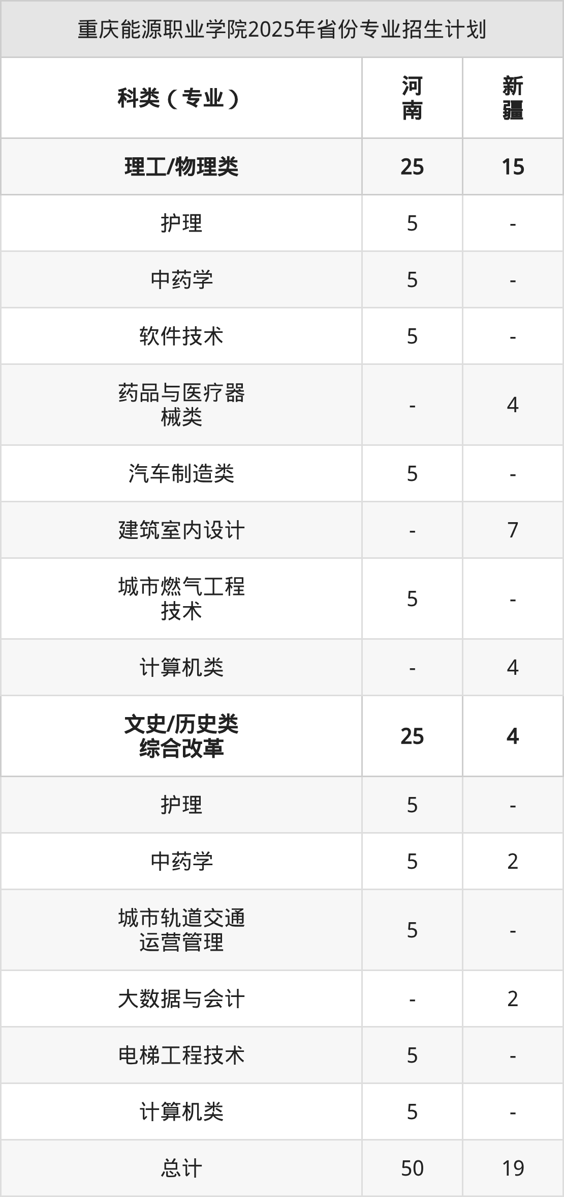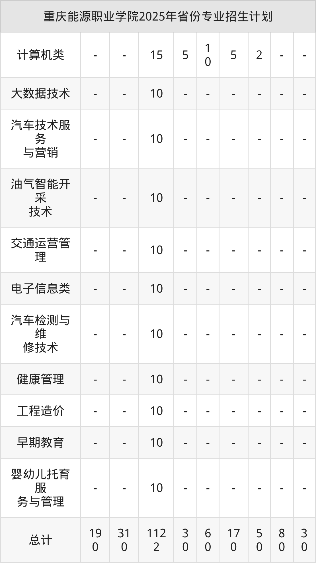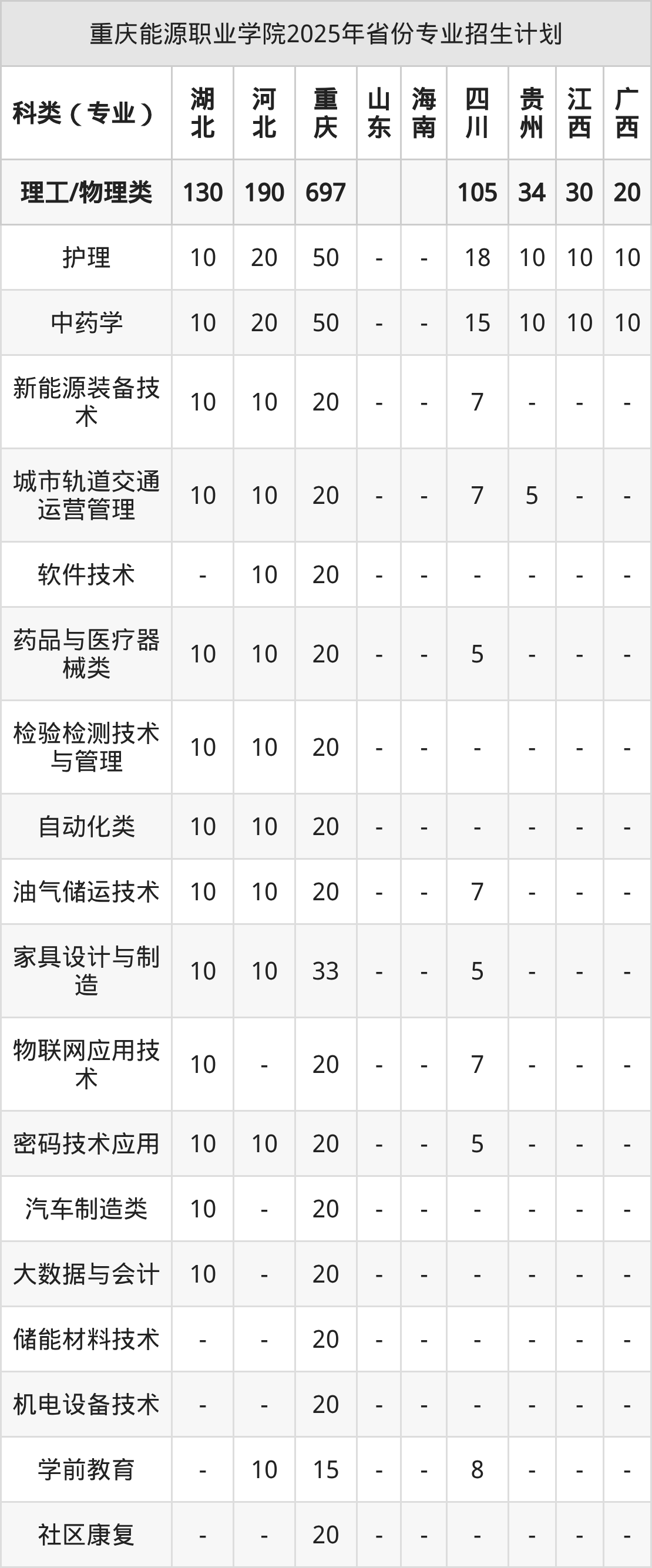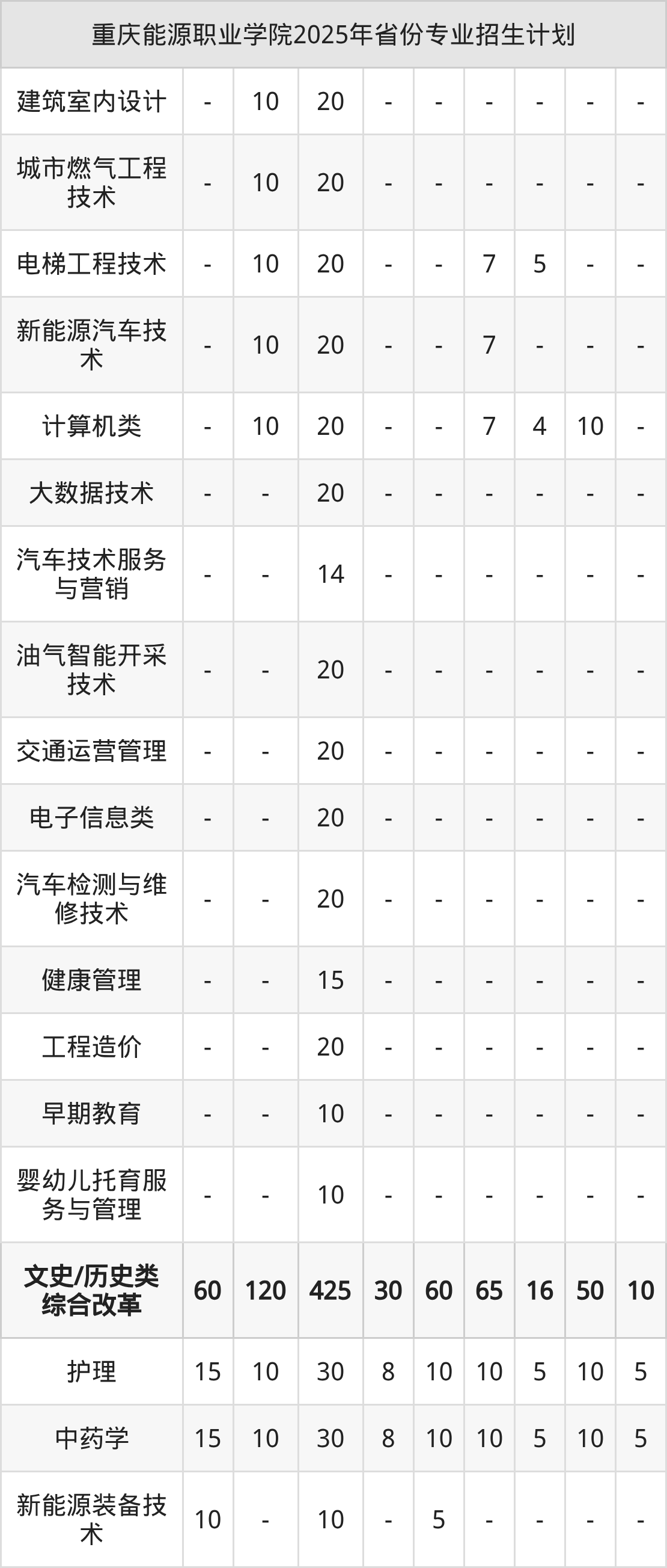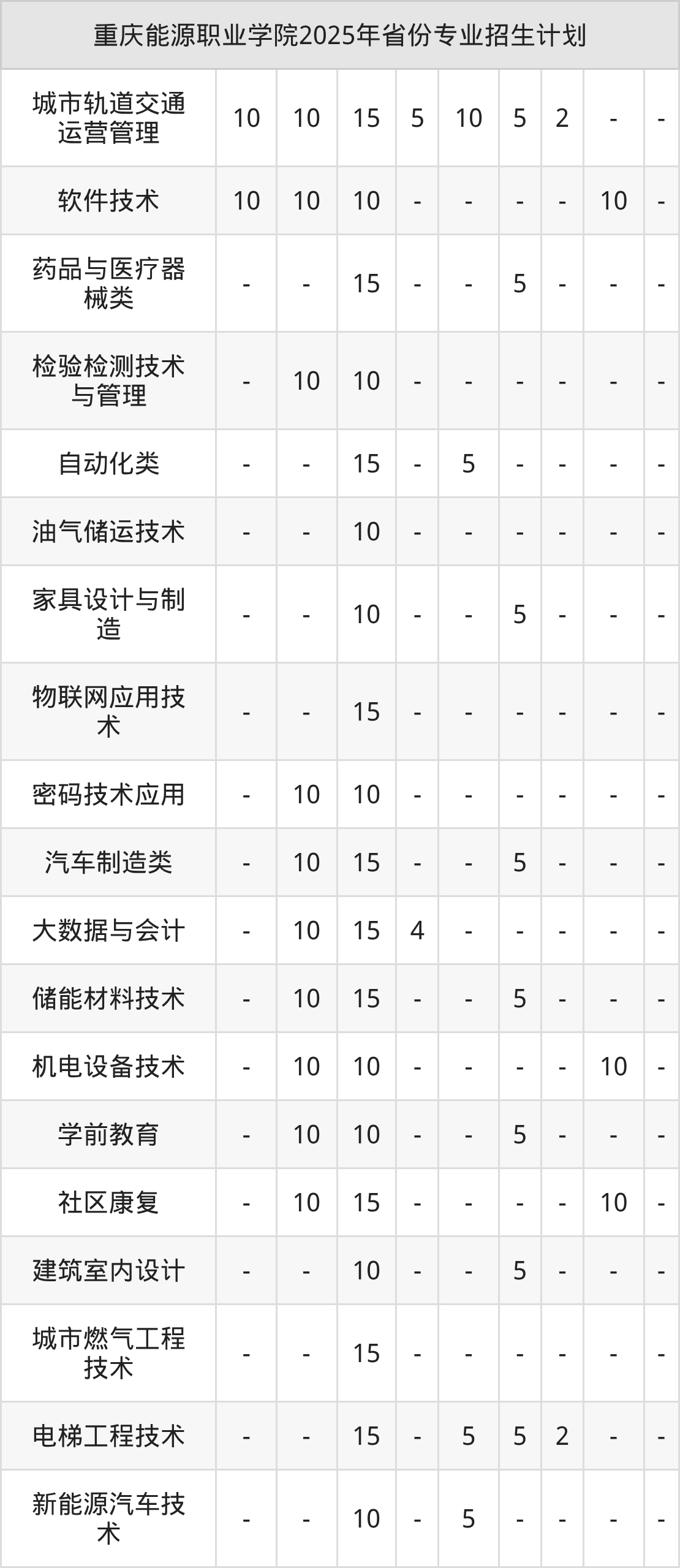 2026年重庆能源职业学院专科招生计划待公布,下面附上2025年数据,暂供参考: