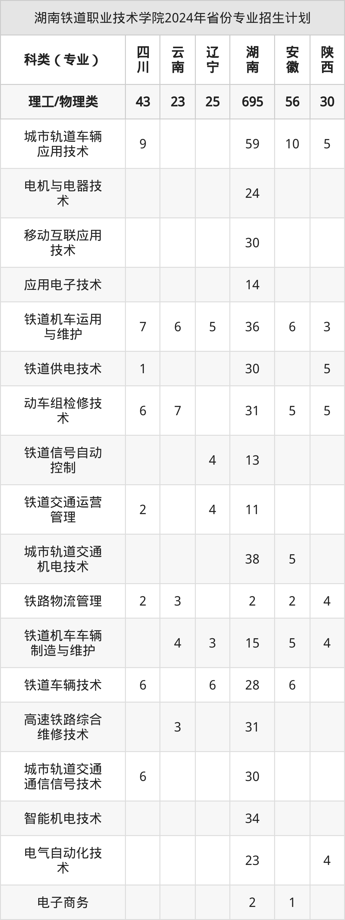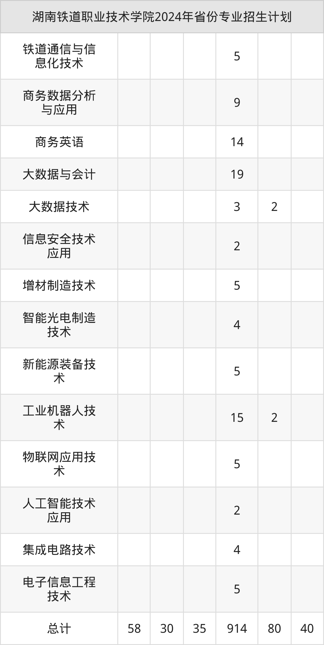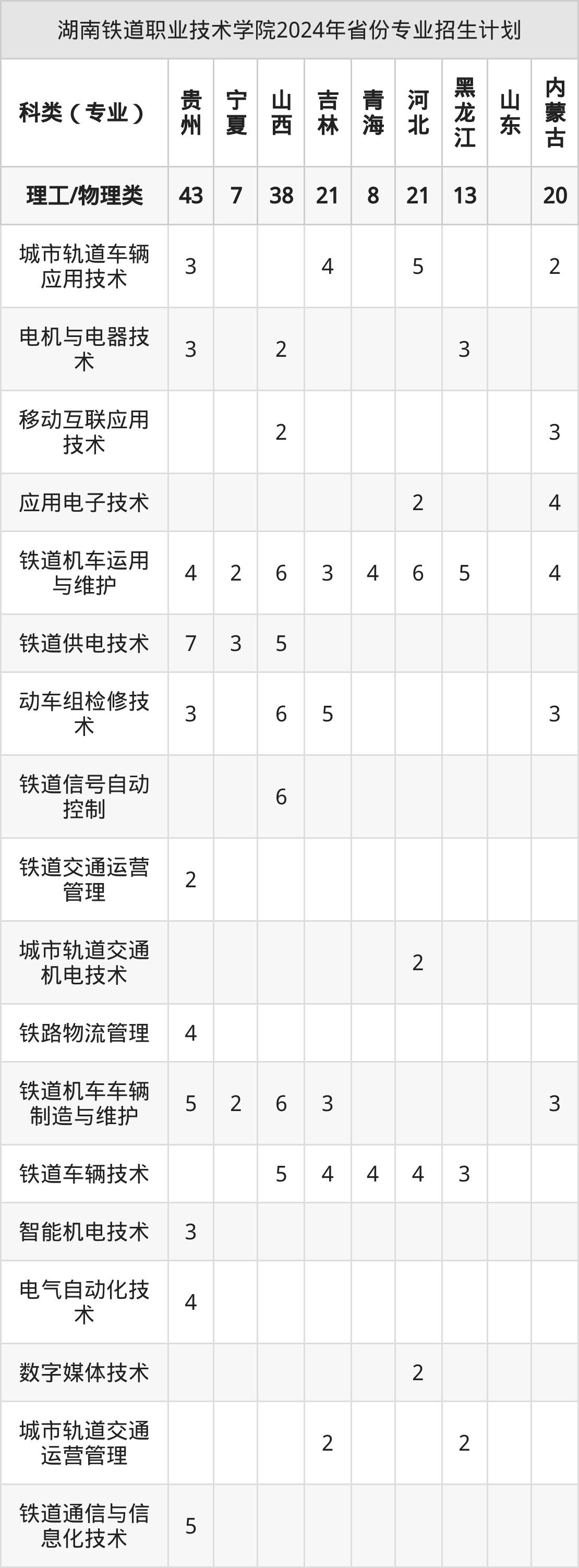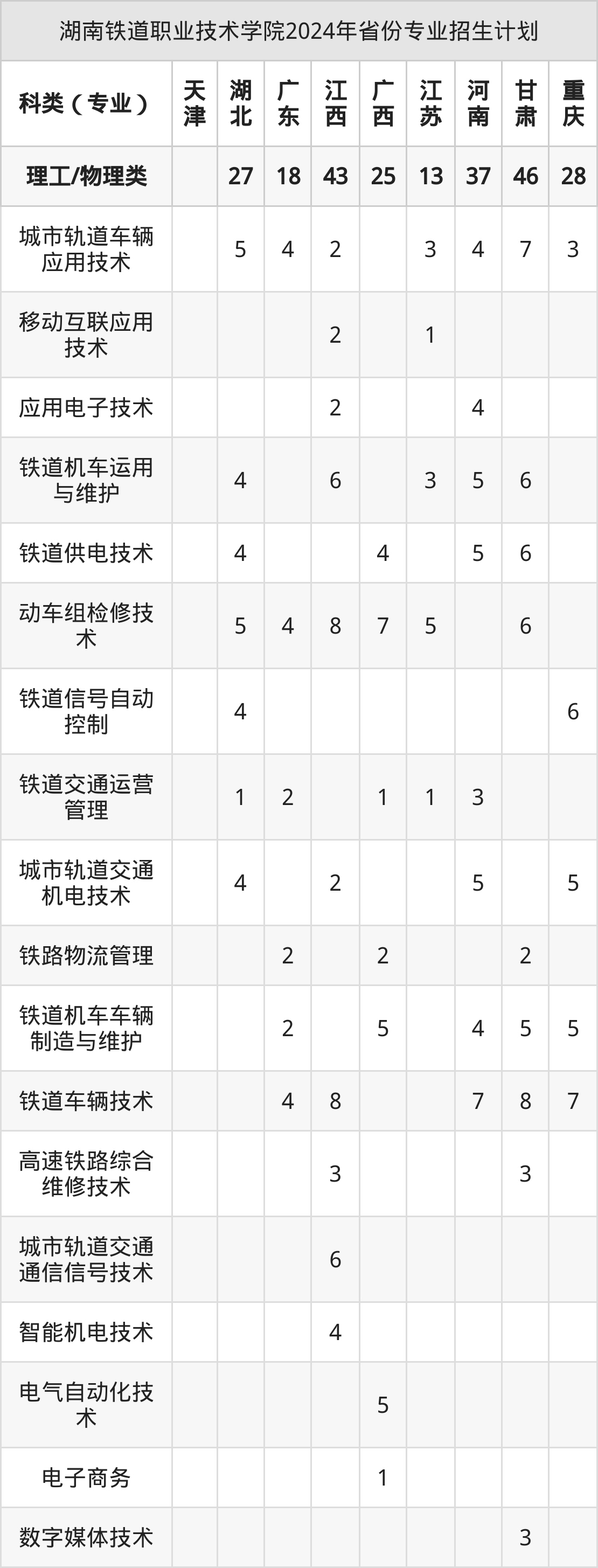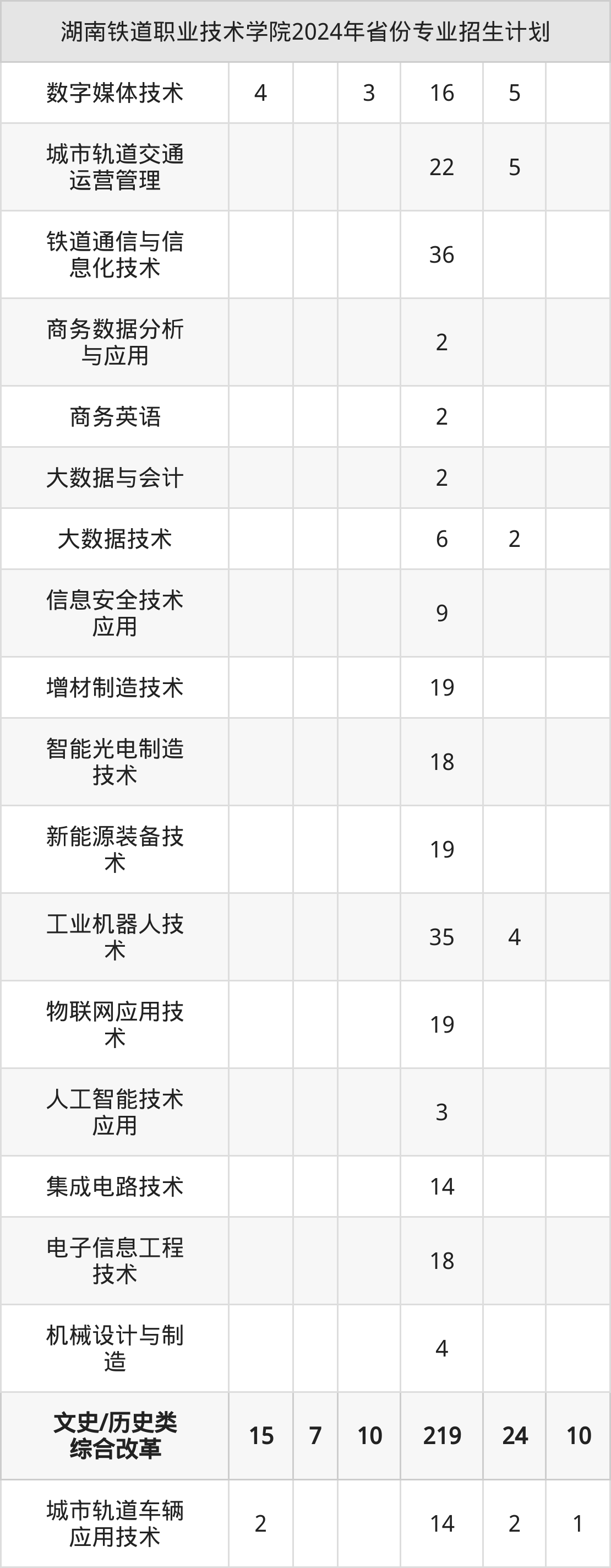 2025年湖南铁道职业技术学院专科招生计划待公布,下面附上2024年数据,暂供参考: