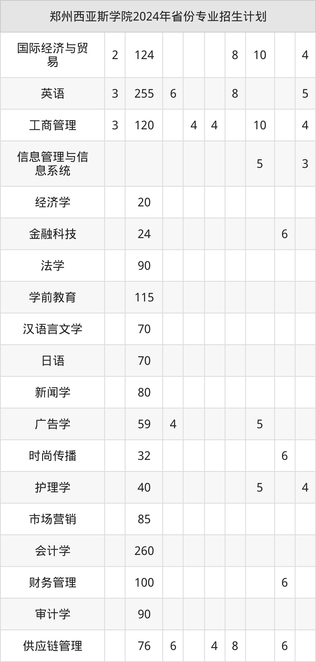 2025年郑州西亚斯学院本科招生计划待公布,下面附上2024年数据,暂供参考: