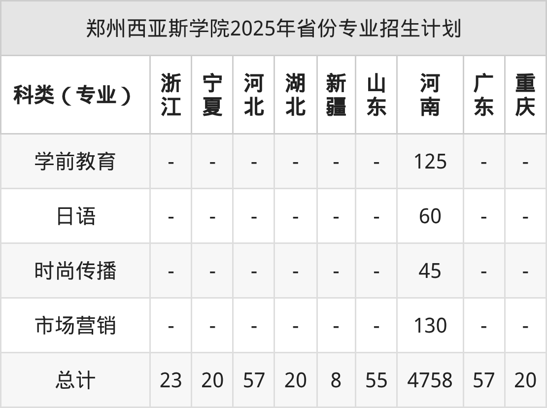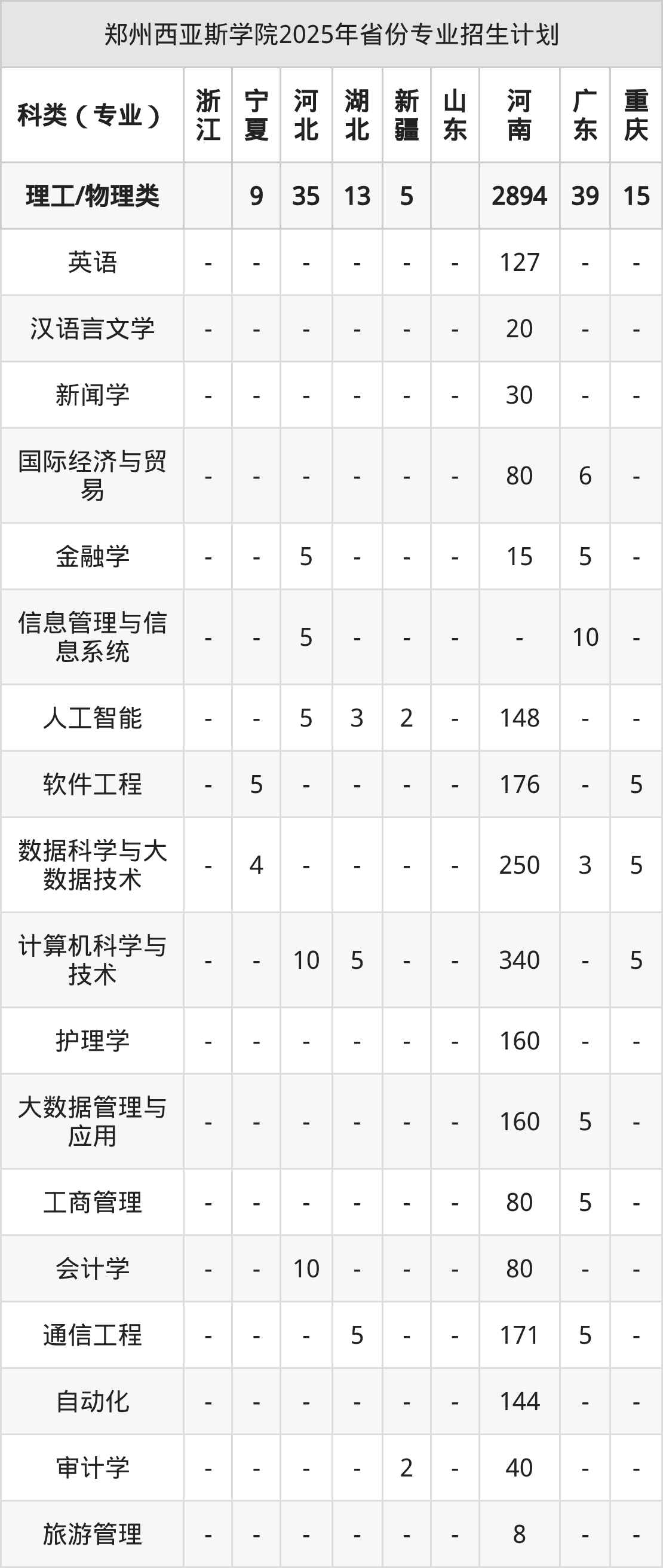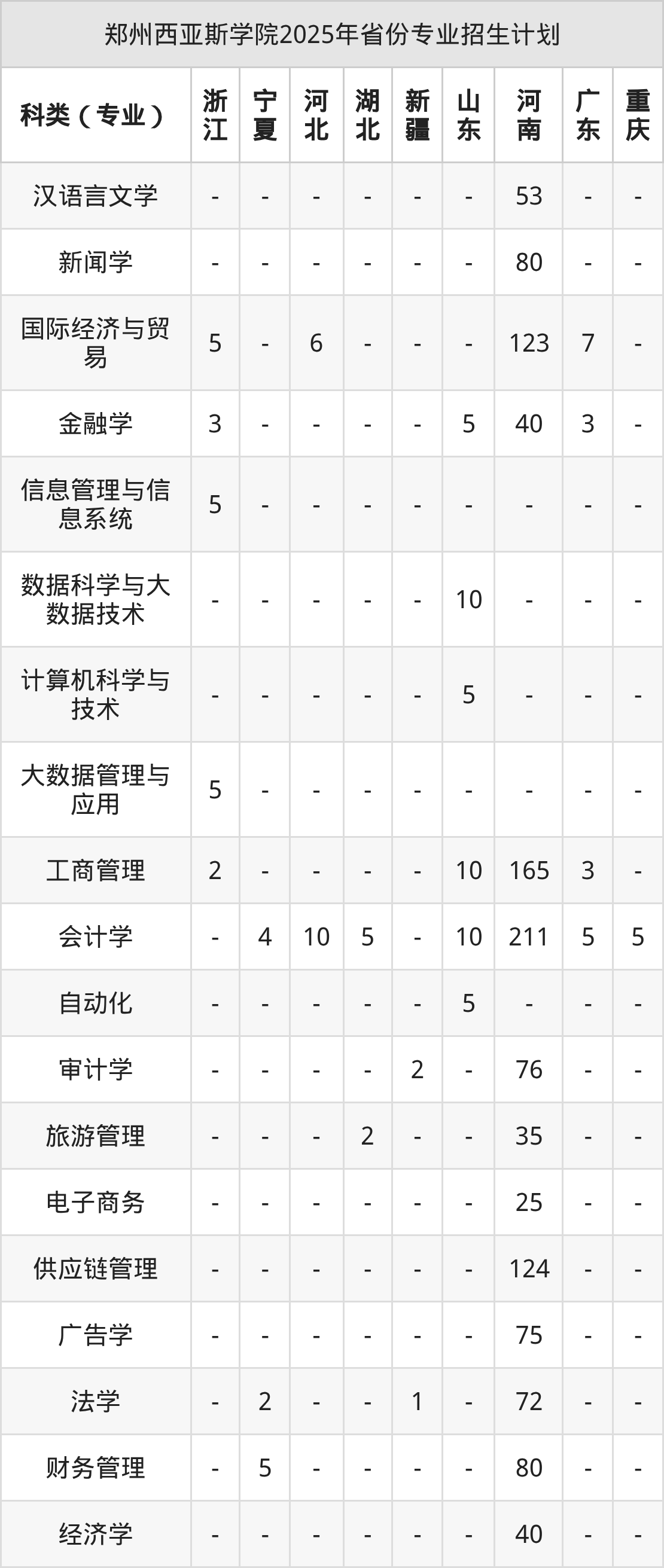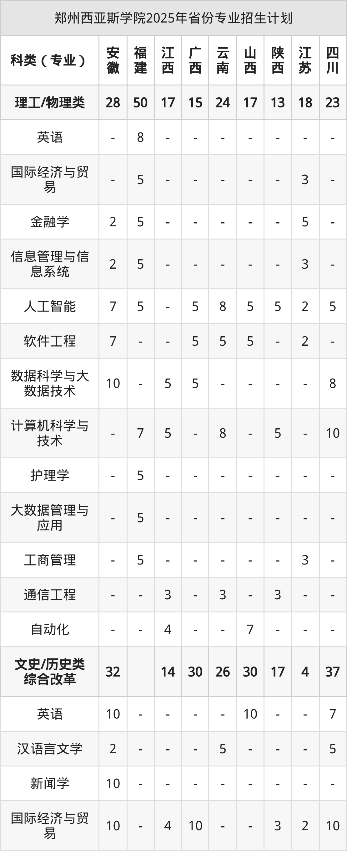 2026年郑州西亚斯学院本科招生计划待公布,下面附上2025年数据,暂供参考: