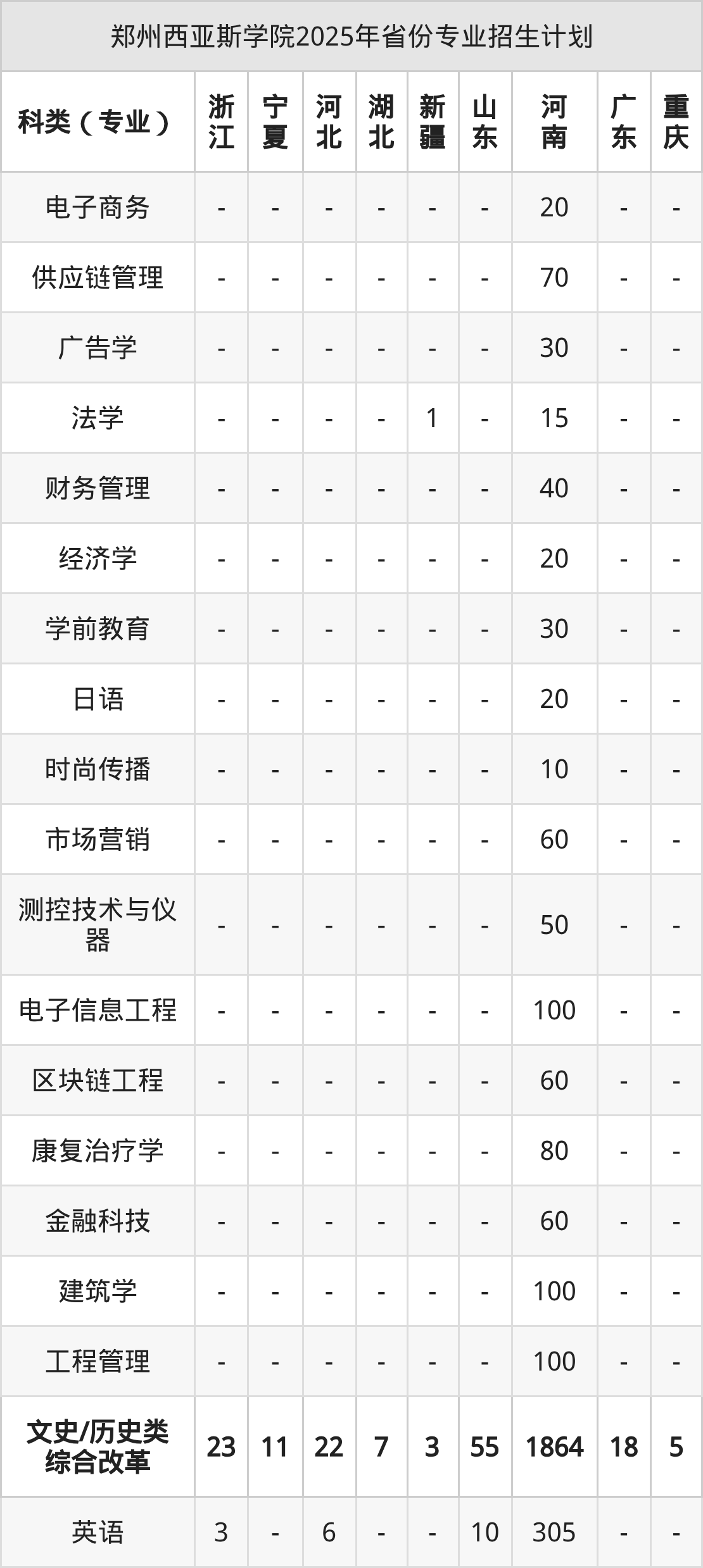 | 郑州西亚斯学院2025年本科最低分汇总 | ||||