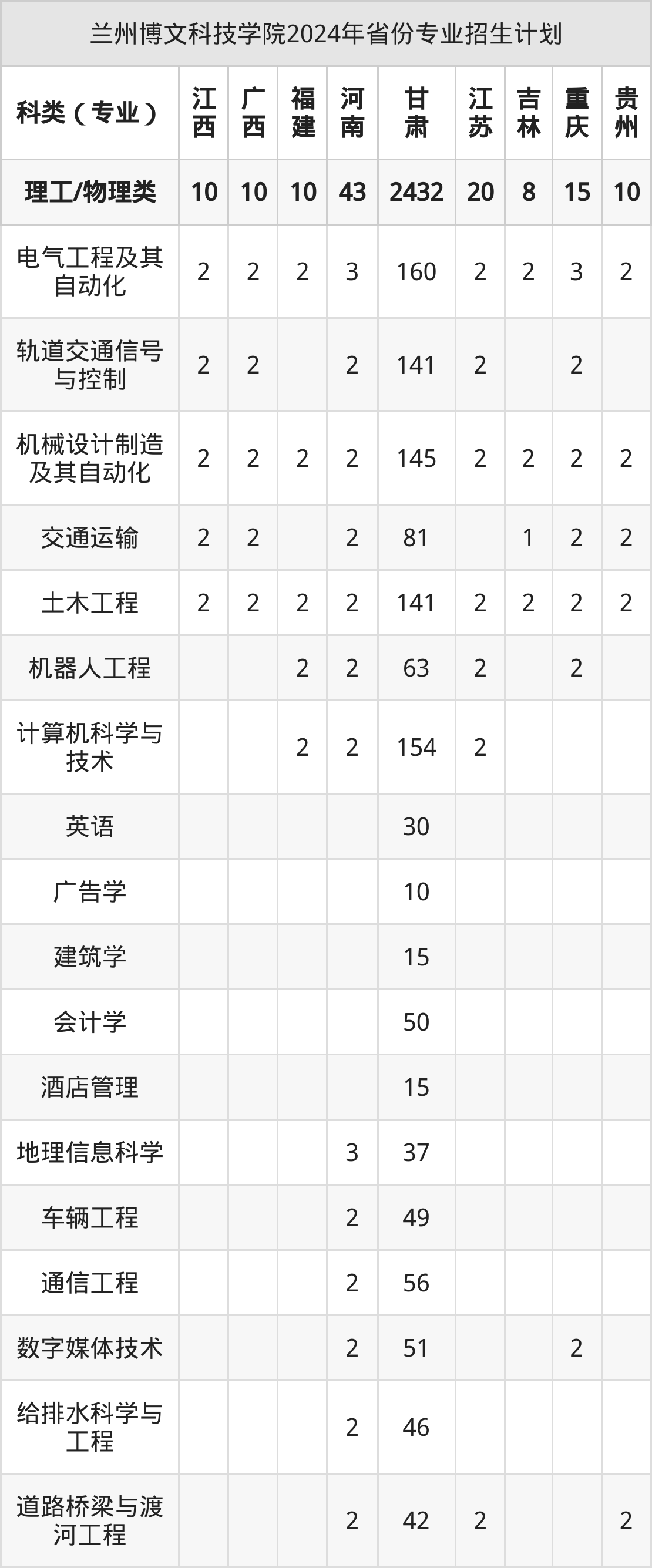 2025年兰州博文科技学院本科招生计划待公布,下面附上2024年数据,暂供参考: