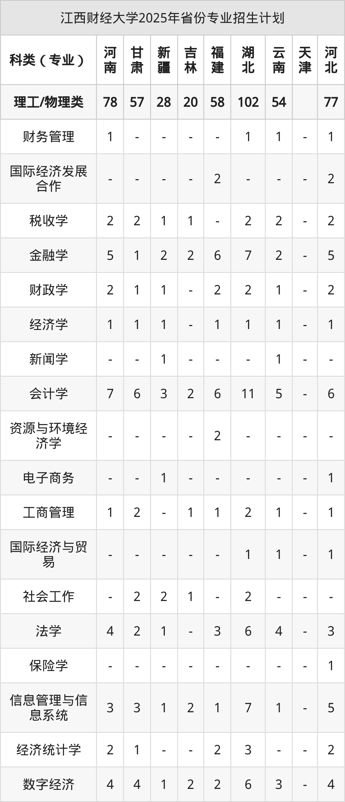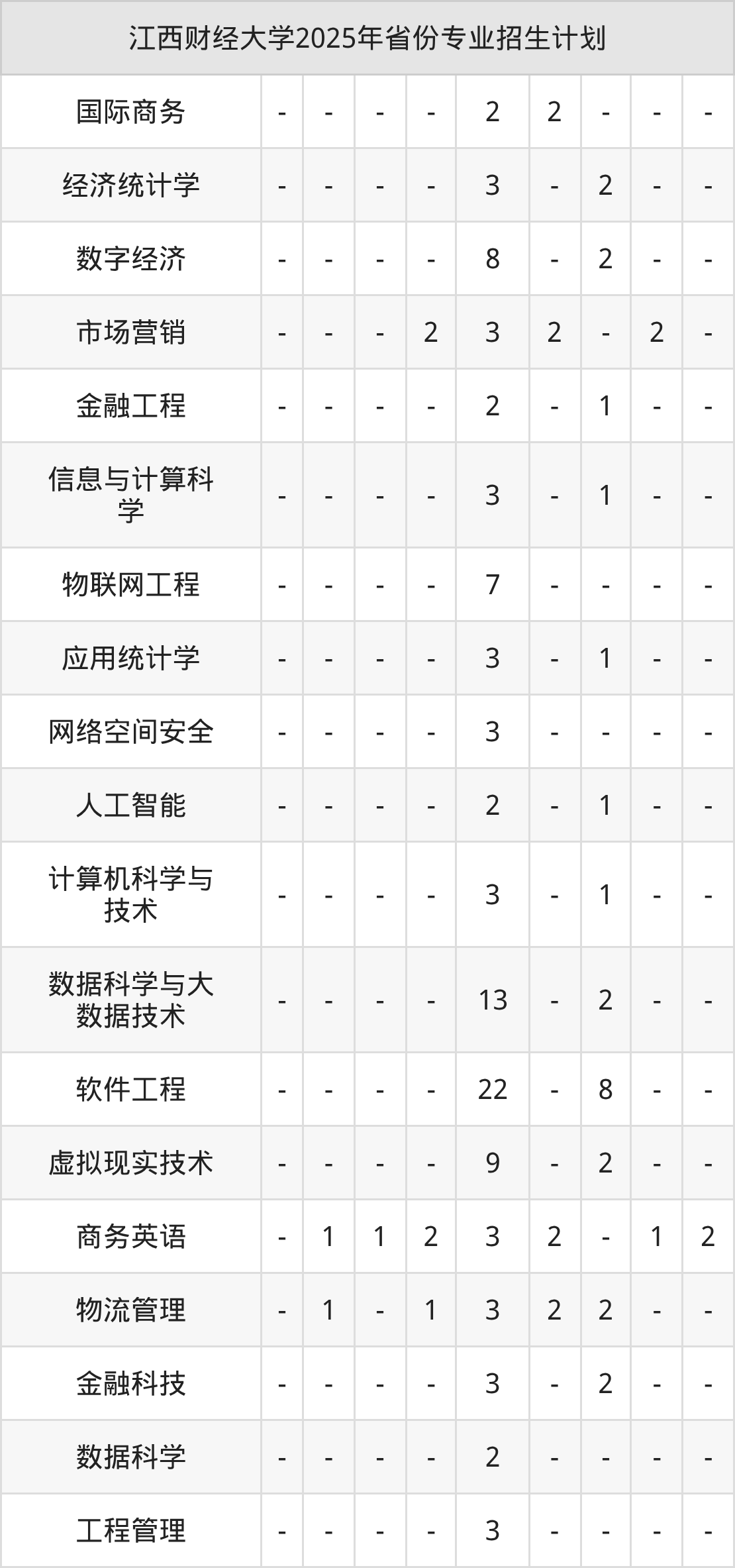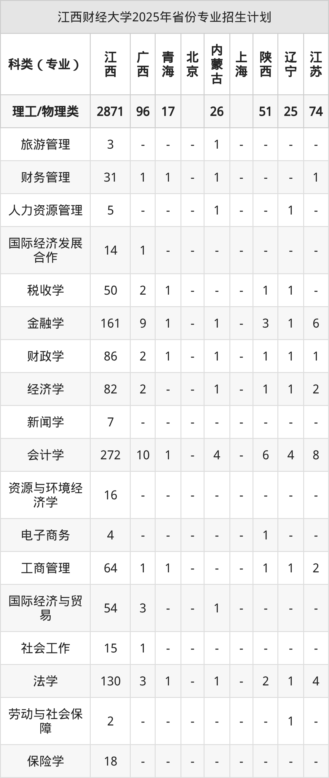 2026年江西财经大学本科招生计划待公布,下面附上2025年数据,暂供参考: