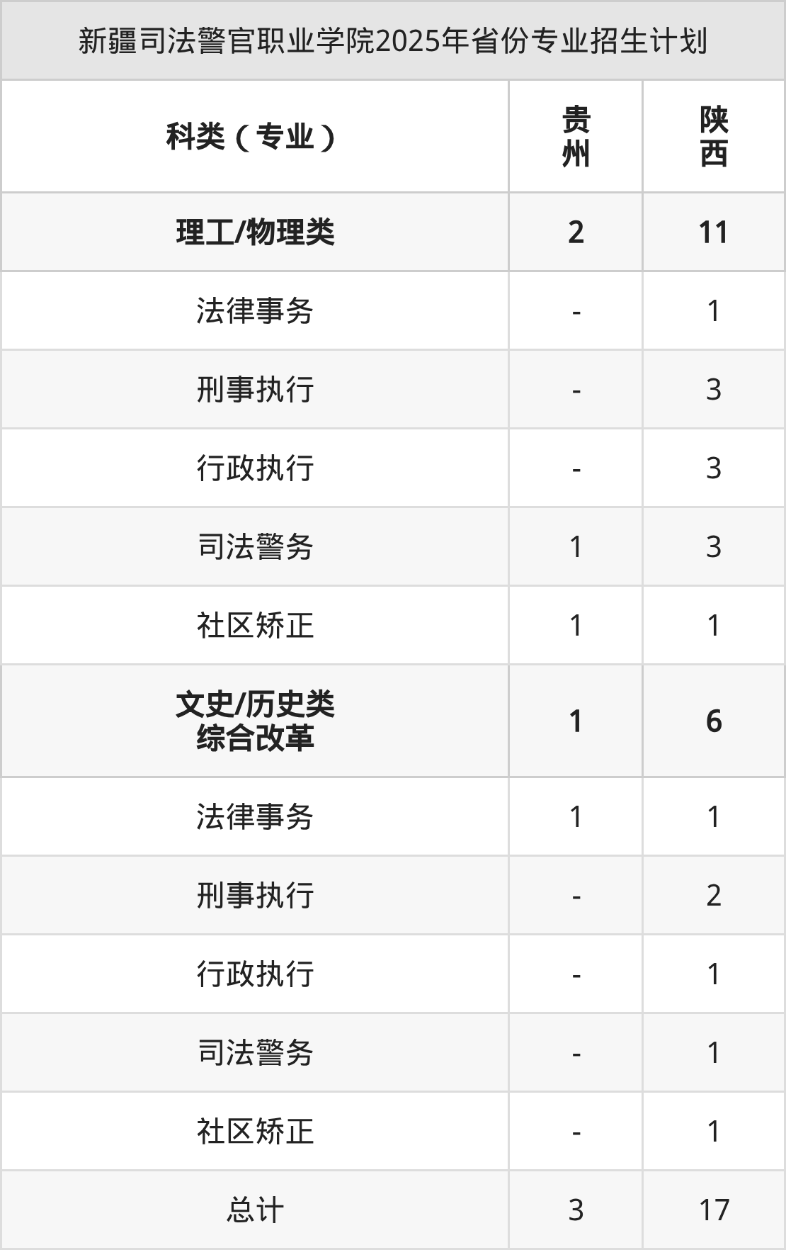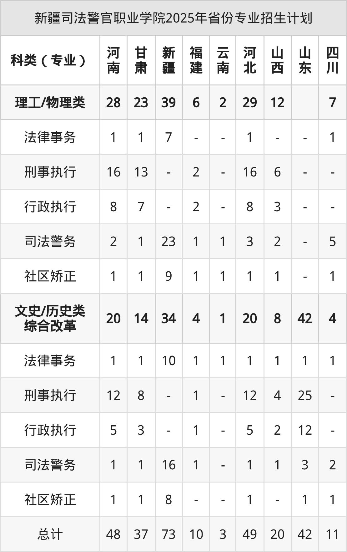 2026年新疆司法警官职业学院专科招生计划待公布,下面附上2025年数据,暂供参考: