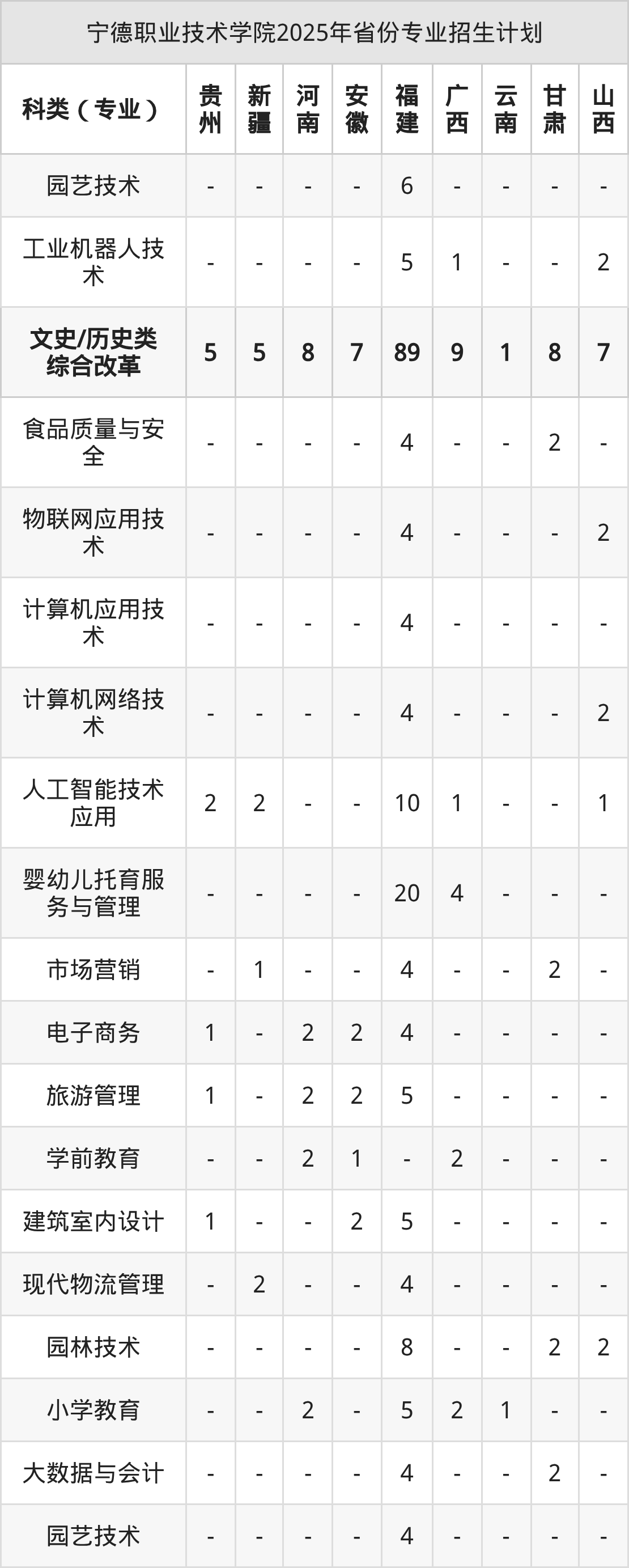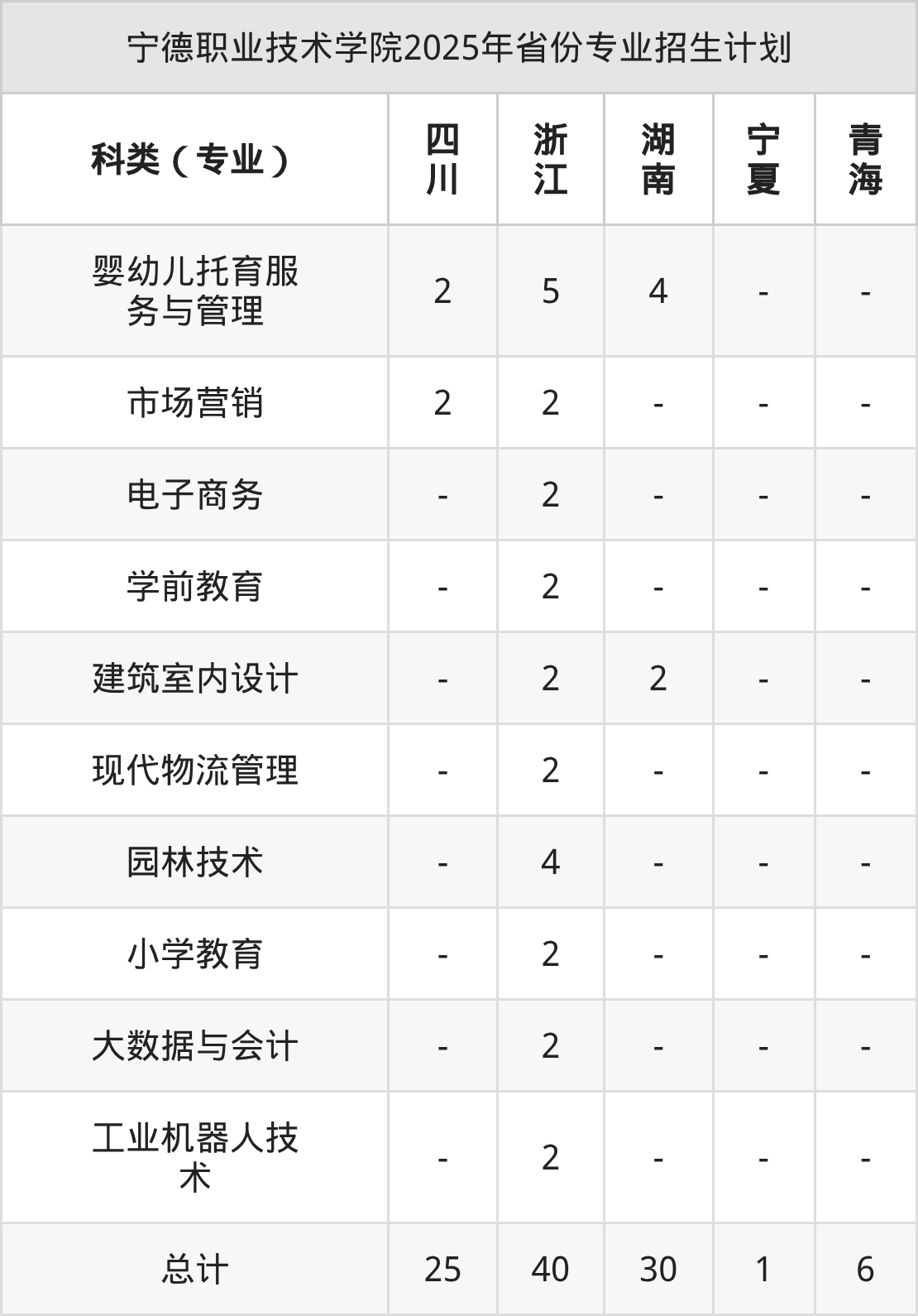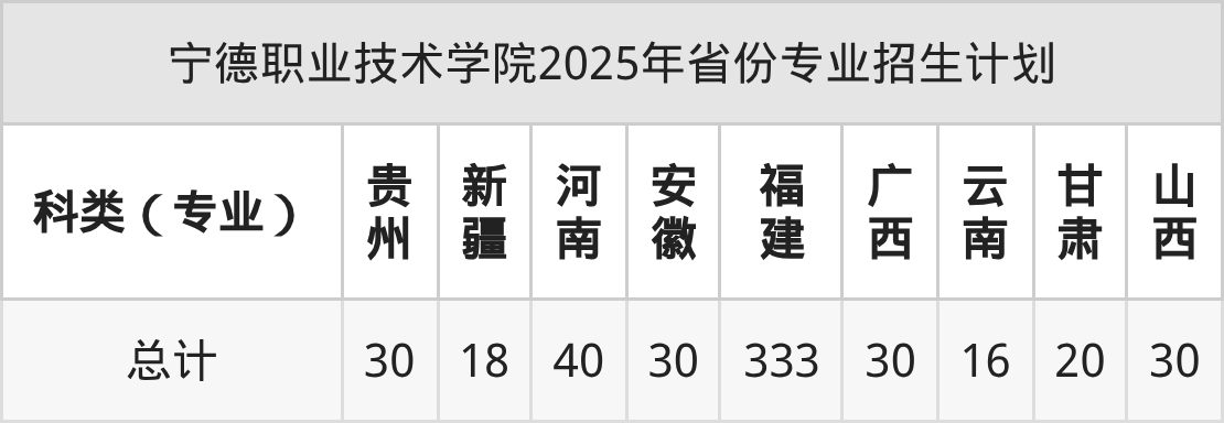 2026年宁德职业技术学院专科招生计划待公布,下面附上2025年数据,暂供参考: